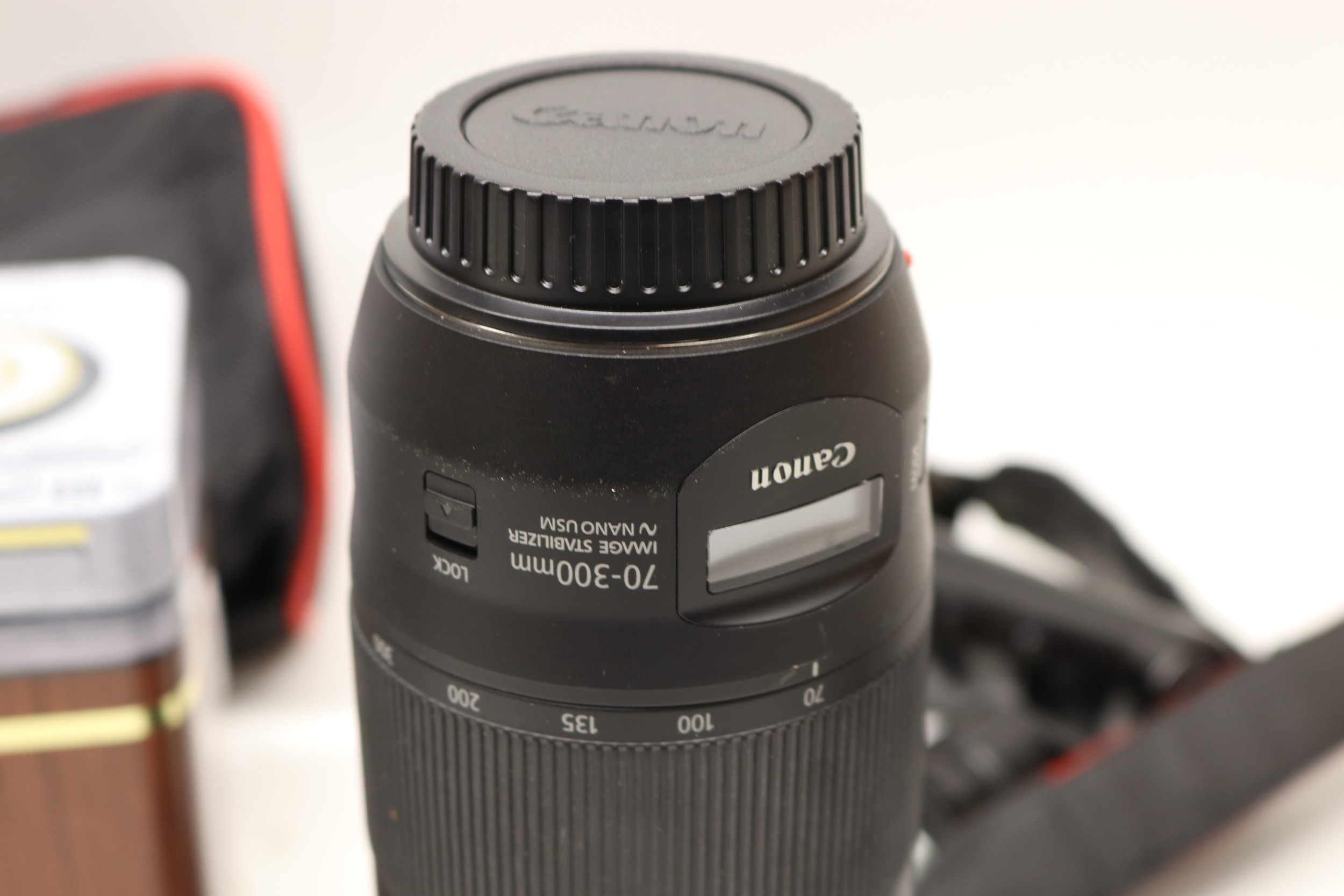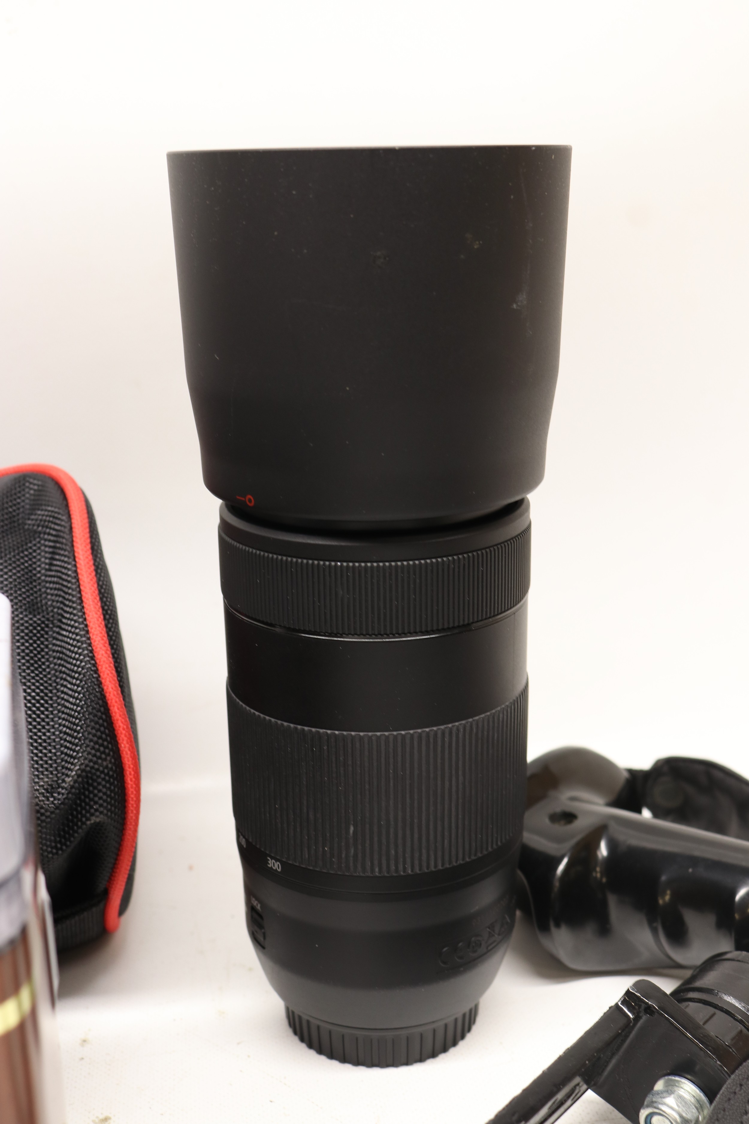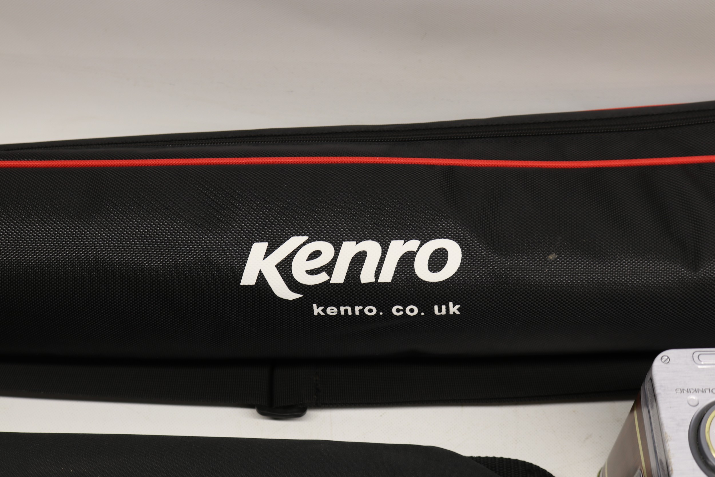 Canon EOS 800D digital camera (lacking battery) with EW-63C lens, Canon ET-74B lens, Manfrotto tripod with carry bag, Kenro tripod with carry bag, Sekonic light meter, camera accesories including lens cap, camera manual, cookie camera tin etc