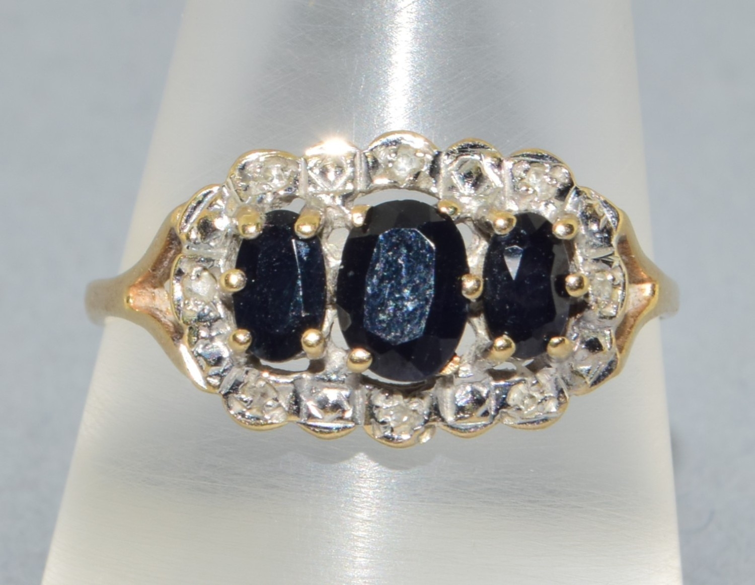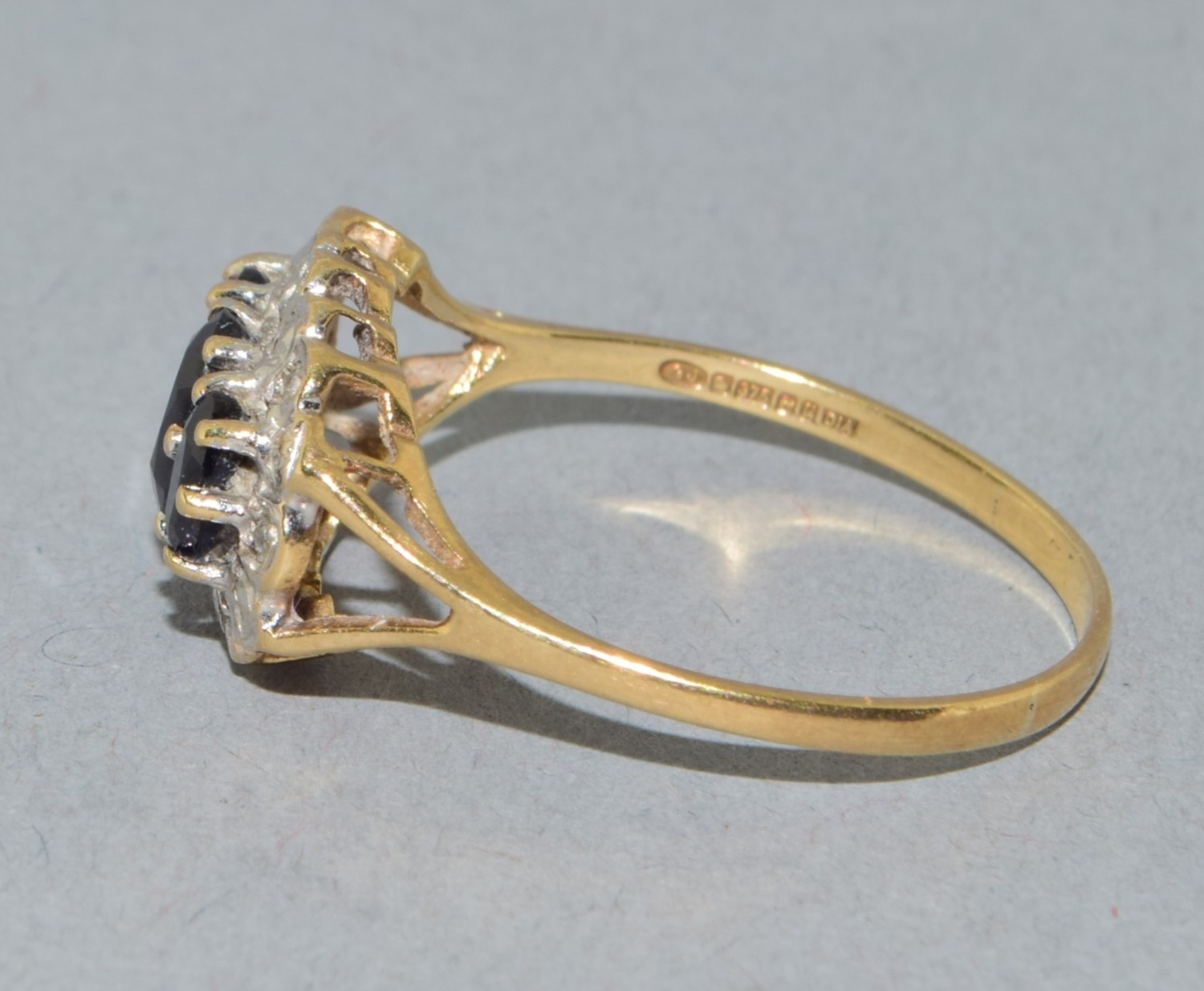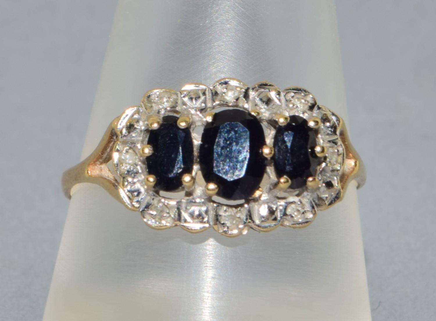 9ct gold vintage Sapphire and Diamond classic design dress ring and marked as diamond in the ring size T. 2.4grams