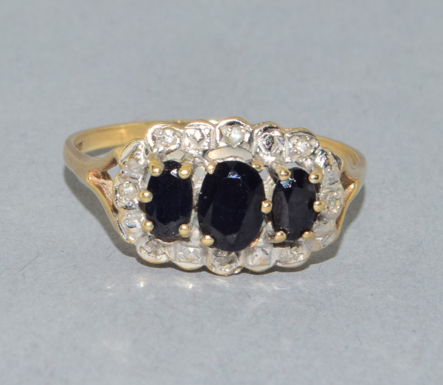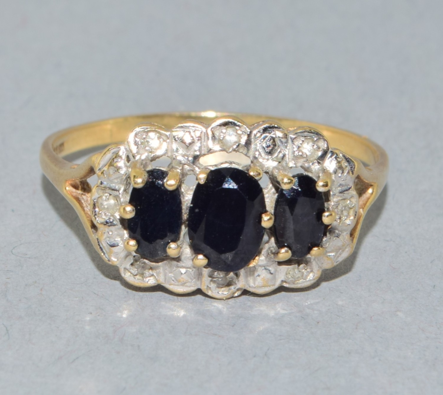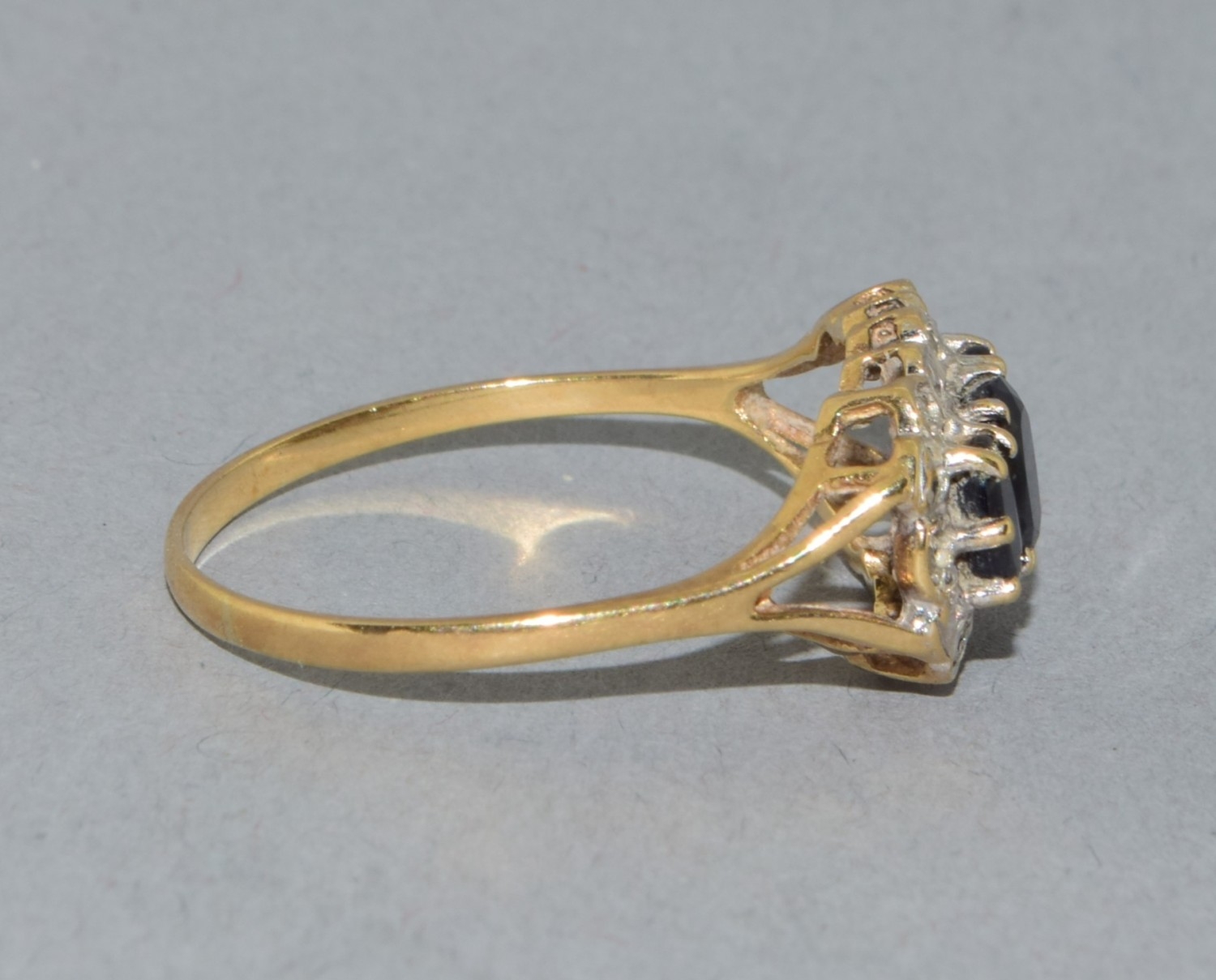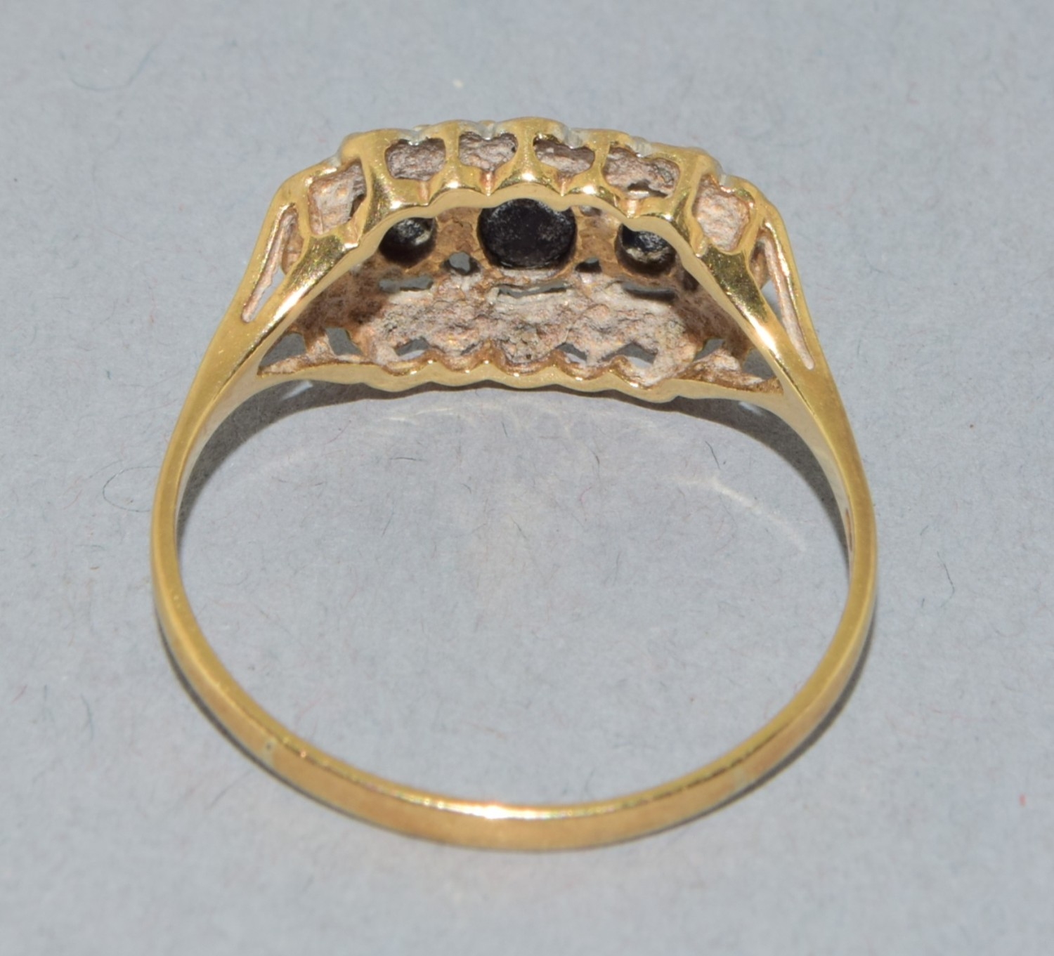 9ct gold vintage Sapphire and Diamond classic design dress ring and marked as diamond in the ring size T. 2.4grams