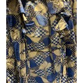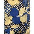 Jean Muir (1928 - 1995) was an influential British fashion design. Garments in a similar yet more brightly coloured version of this pattern featured on the cover of British Vogue in February 1972.