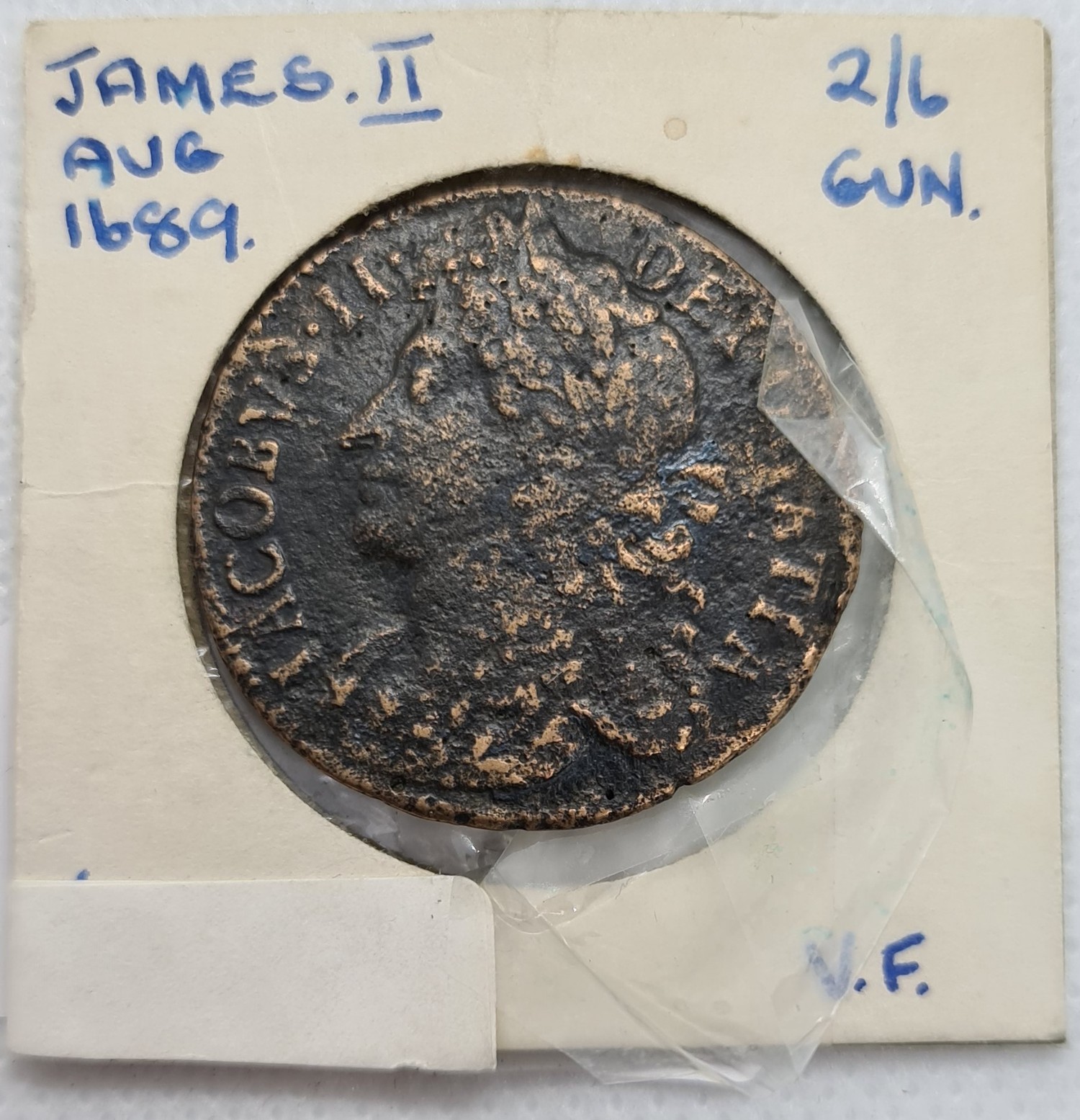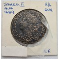 James 2nd 1689 August Gun Money. 2/6 Large coin. In very fine Condition.