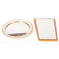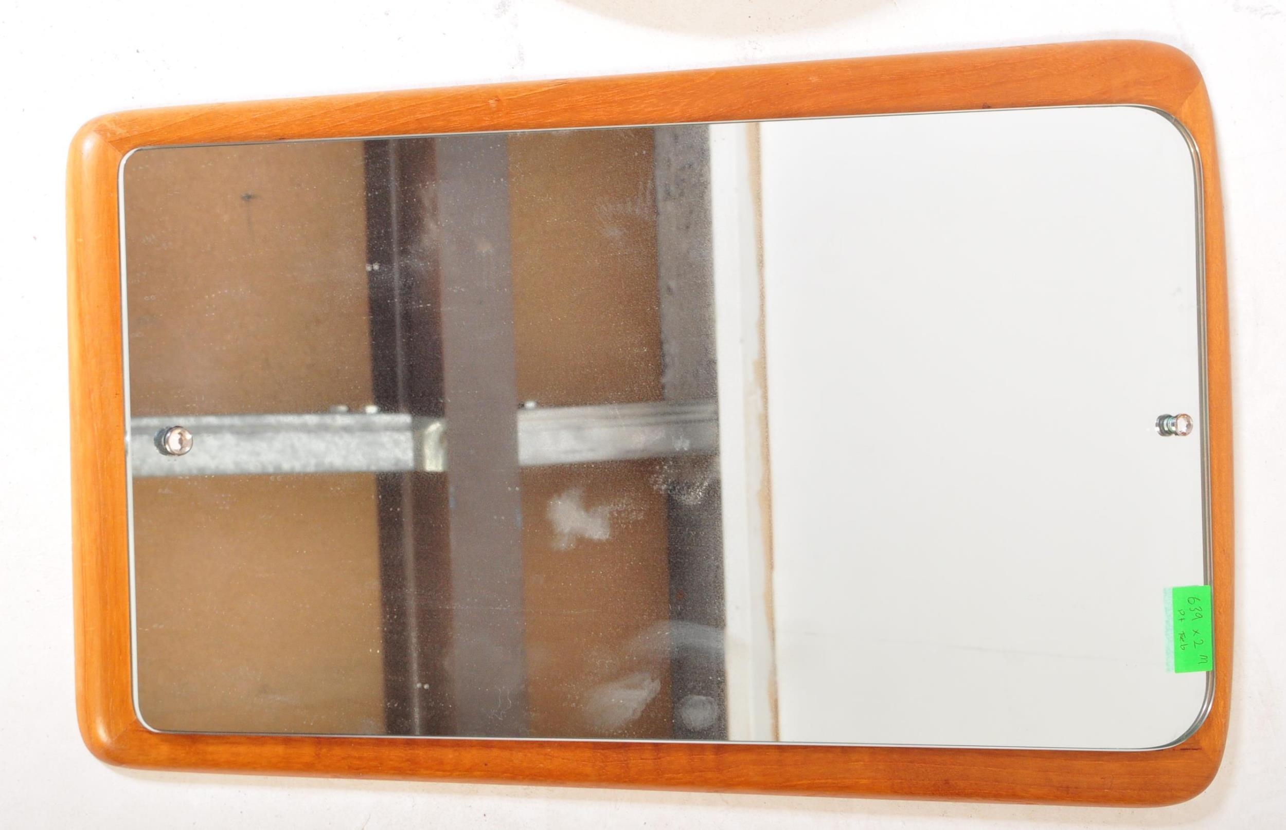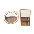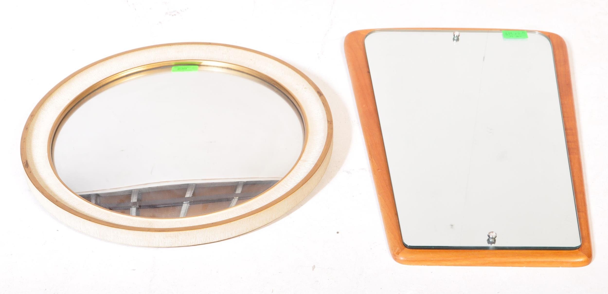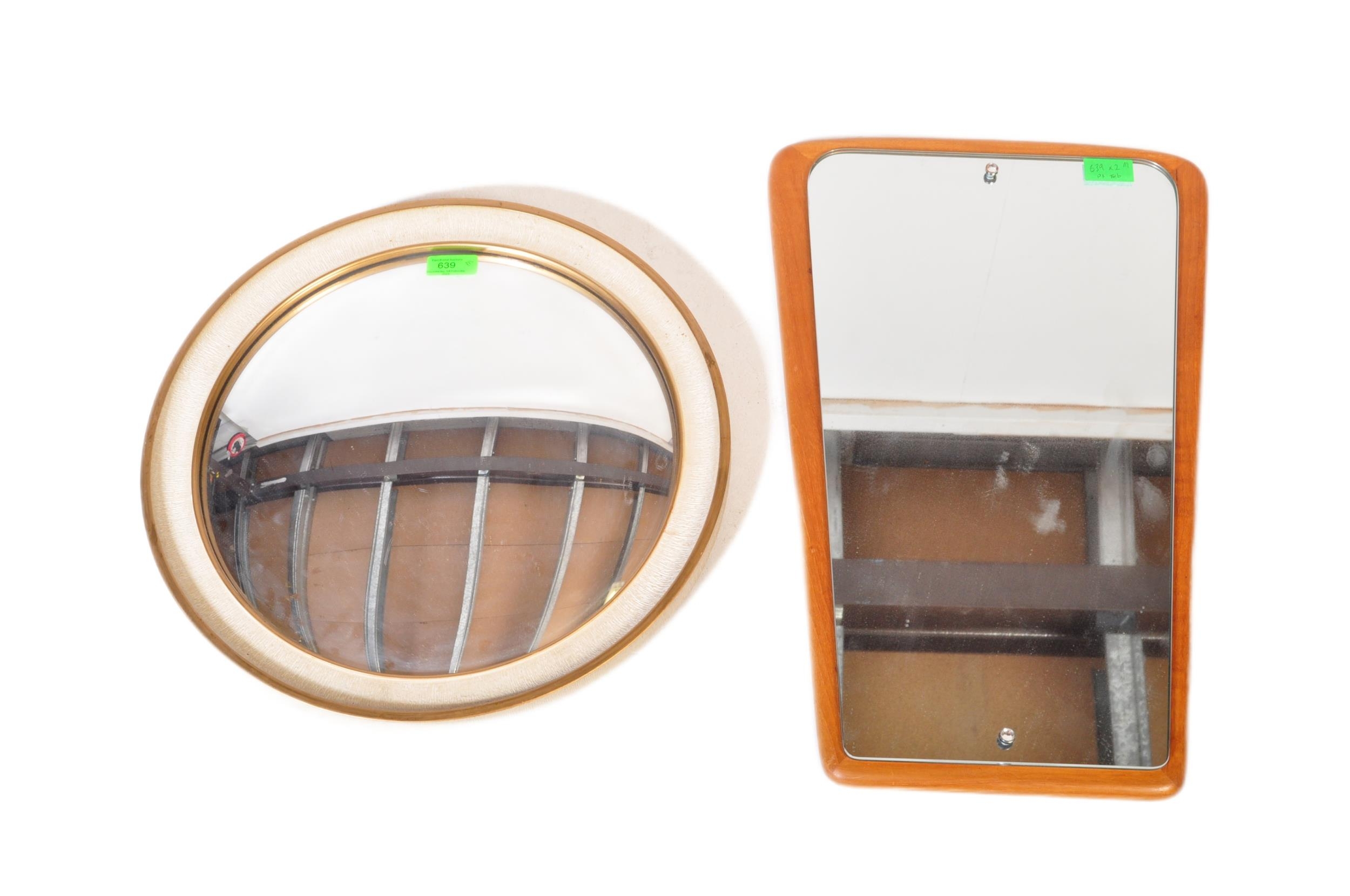 Mid 20th Century teak wood atomic sputnik style wall mirror of ovoid shape together with a circa 1950s fish eye convex mirror. Measures approx. 55cm x 35cm & 42cm dia.