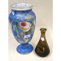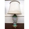 19th Century Paris porcelain gilt metal mounted lamp base handpainted with various flowers and insects, with original silk shade (at fault), 62cm high