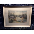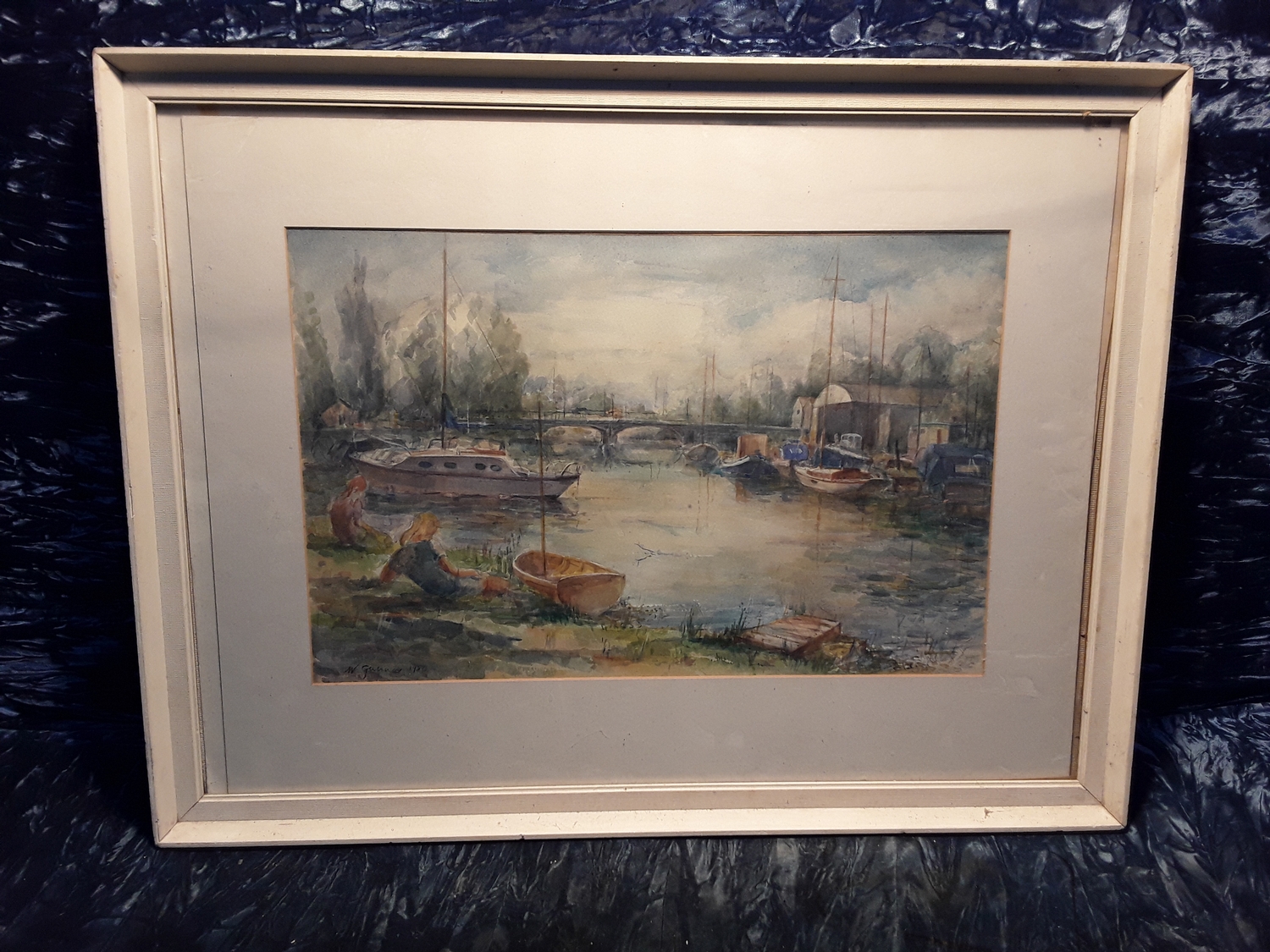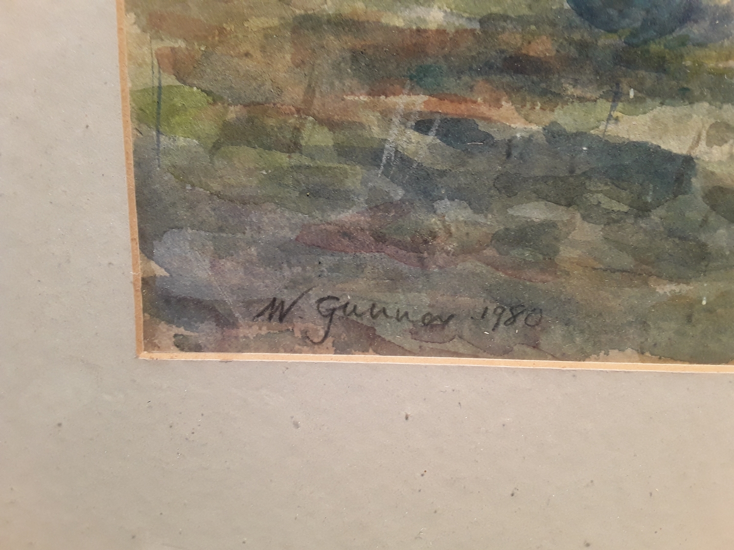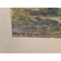 Signed watercolour of a river bank by W Gunner. Poole pottery artist