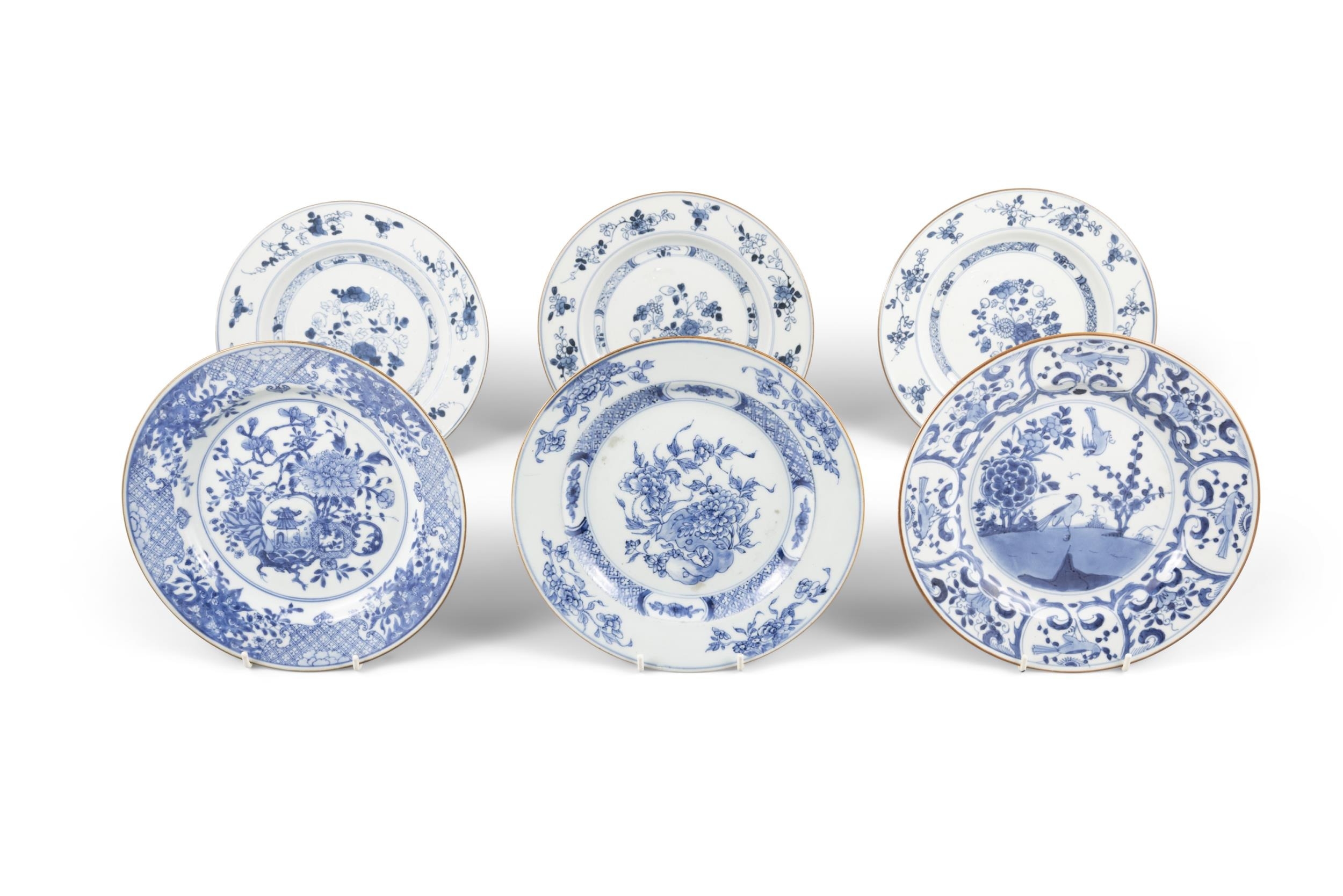 SIX BLUE AND WHITE DISHES WITH FLOWERS AND BIRDS ??? ???????? China, 18th century D: 22.8cm (6)
