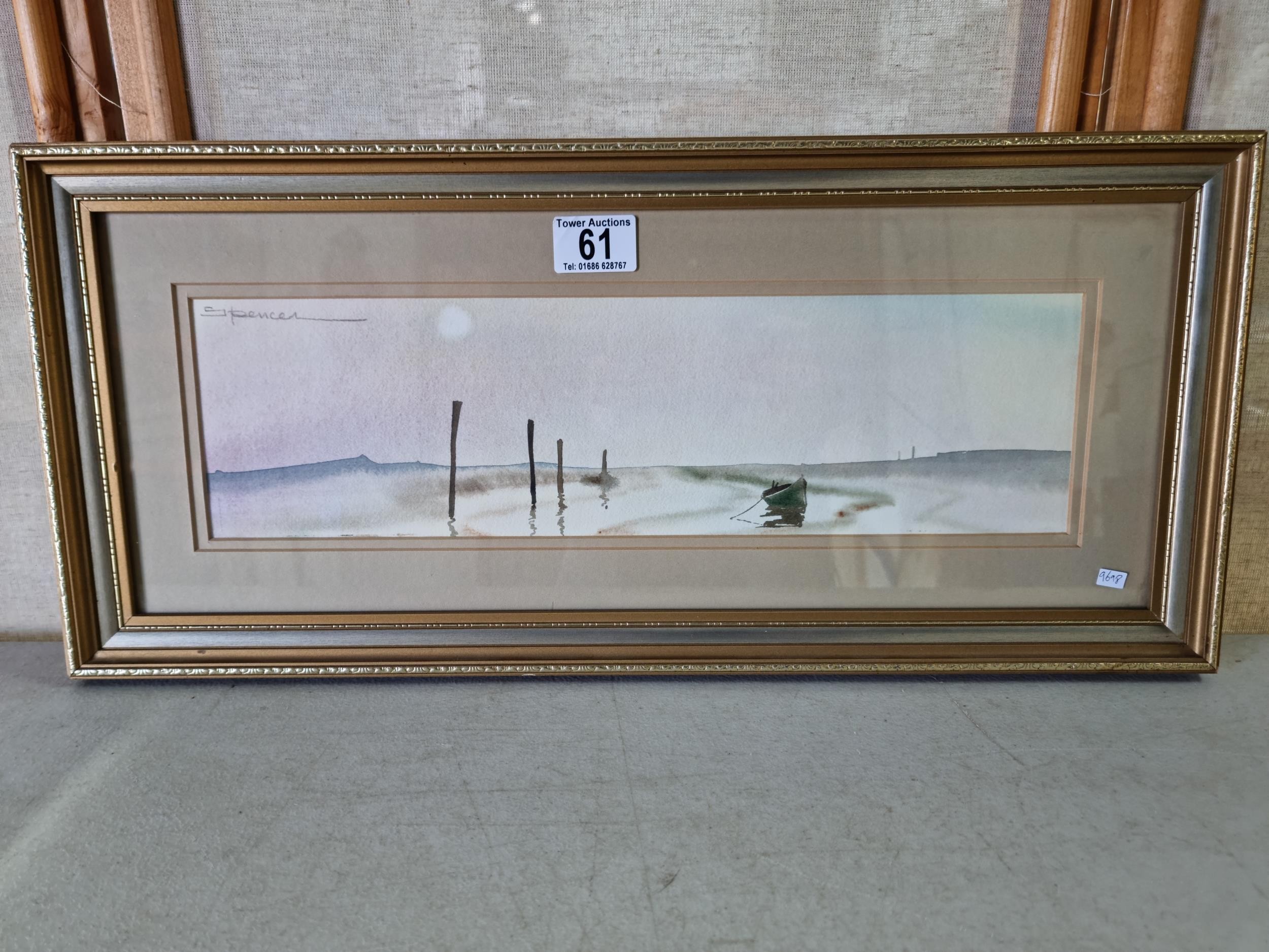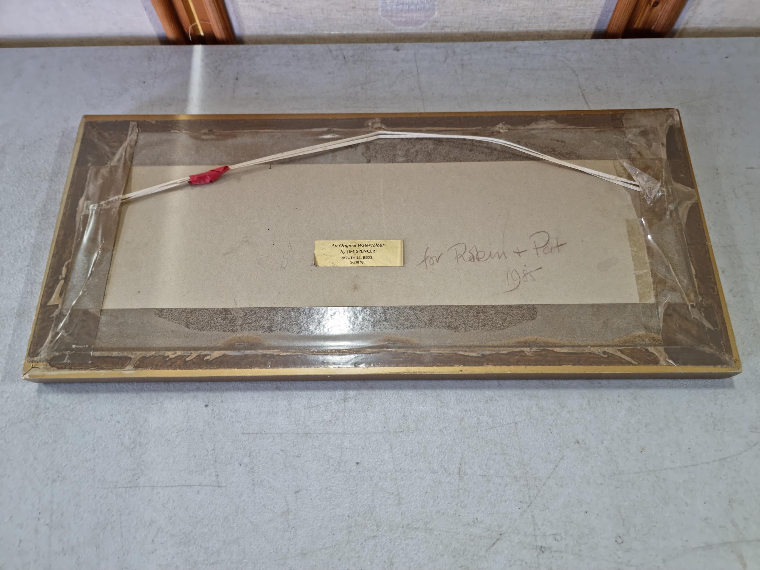 Good quality framed and glazed original watercolour of a coastal scene, well executed signed to the upper left Jim Spencer, measures 25cm high by 56cm long