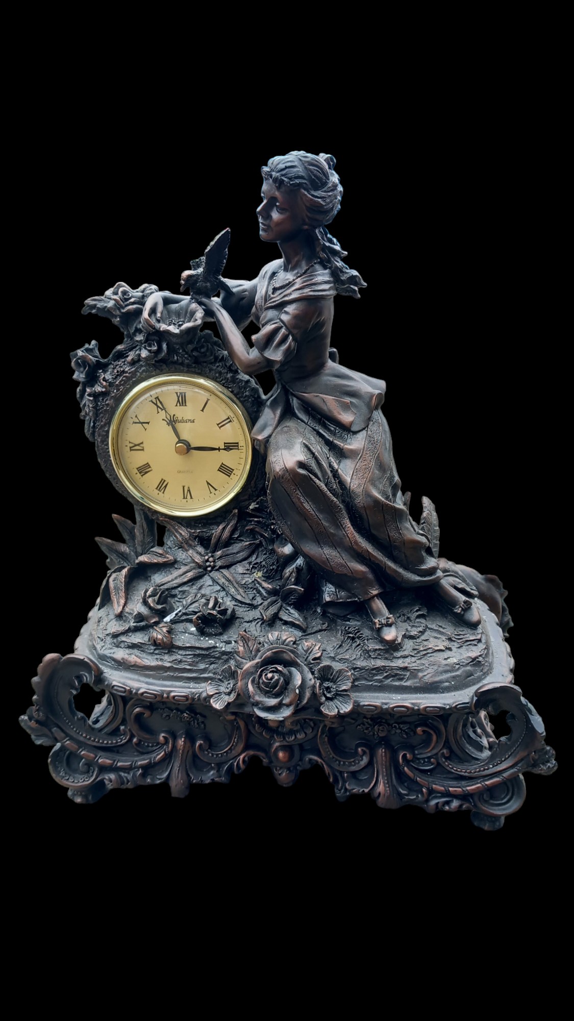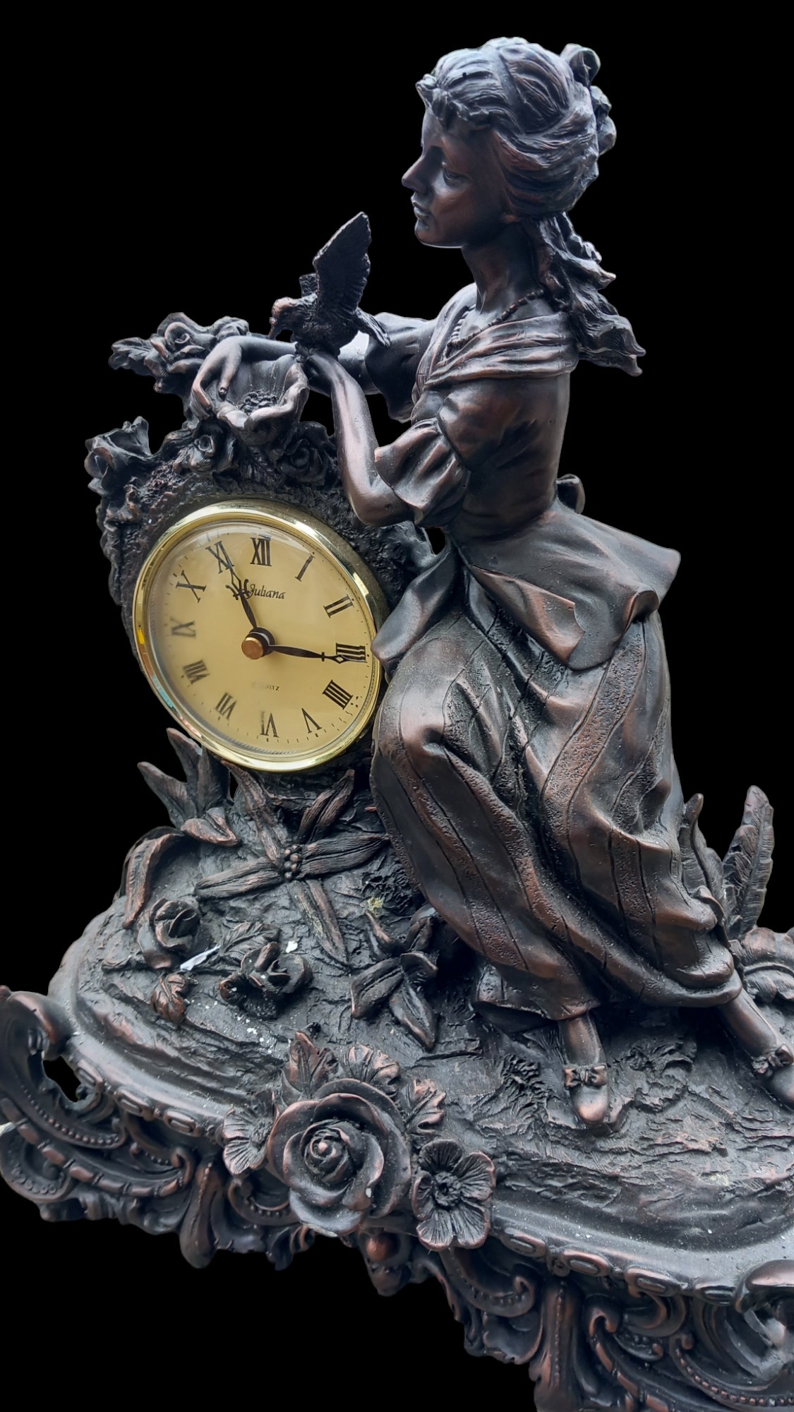 A BRONZED FINISHED FIGURED CLOCK 15X12"