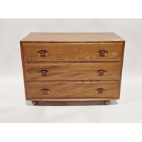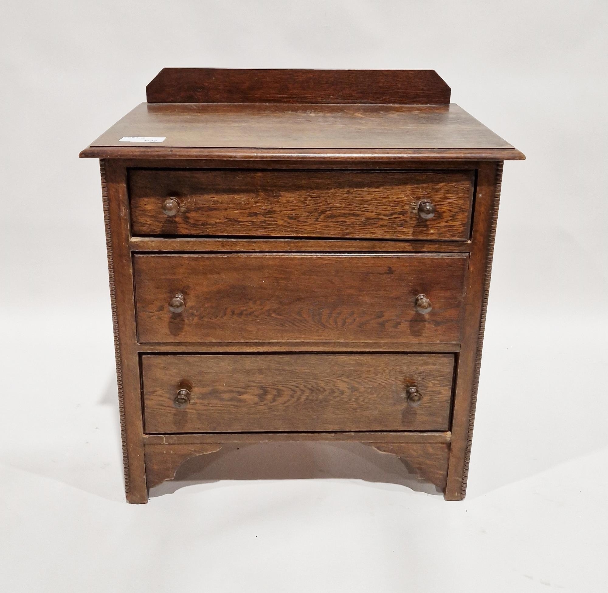 Early to mid 20th century oak chest of three long drawers, each with turned handles
