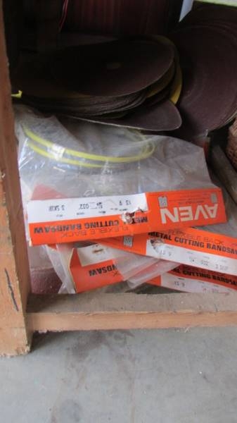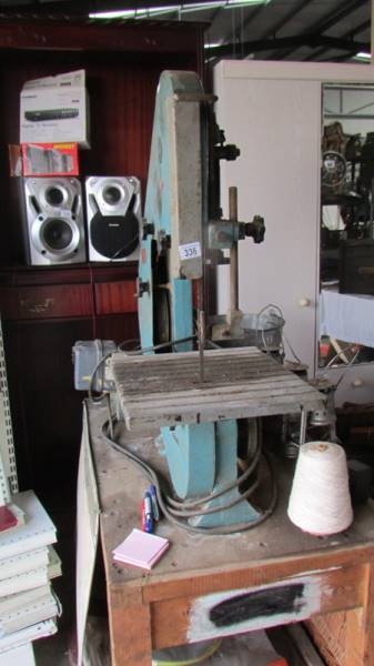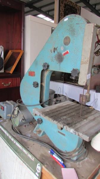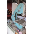 A bench bandsaw on bench with spare bands etc., (Collect only)