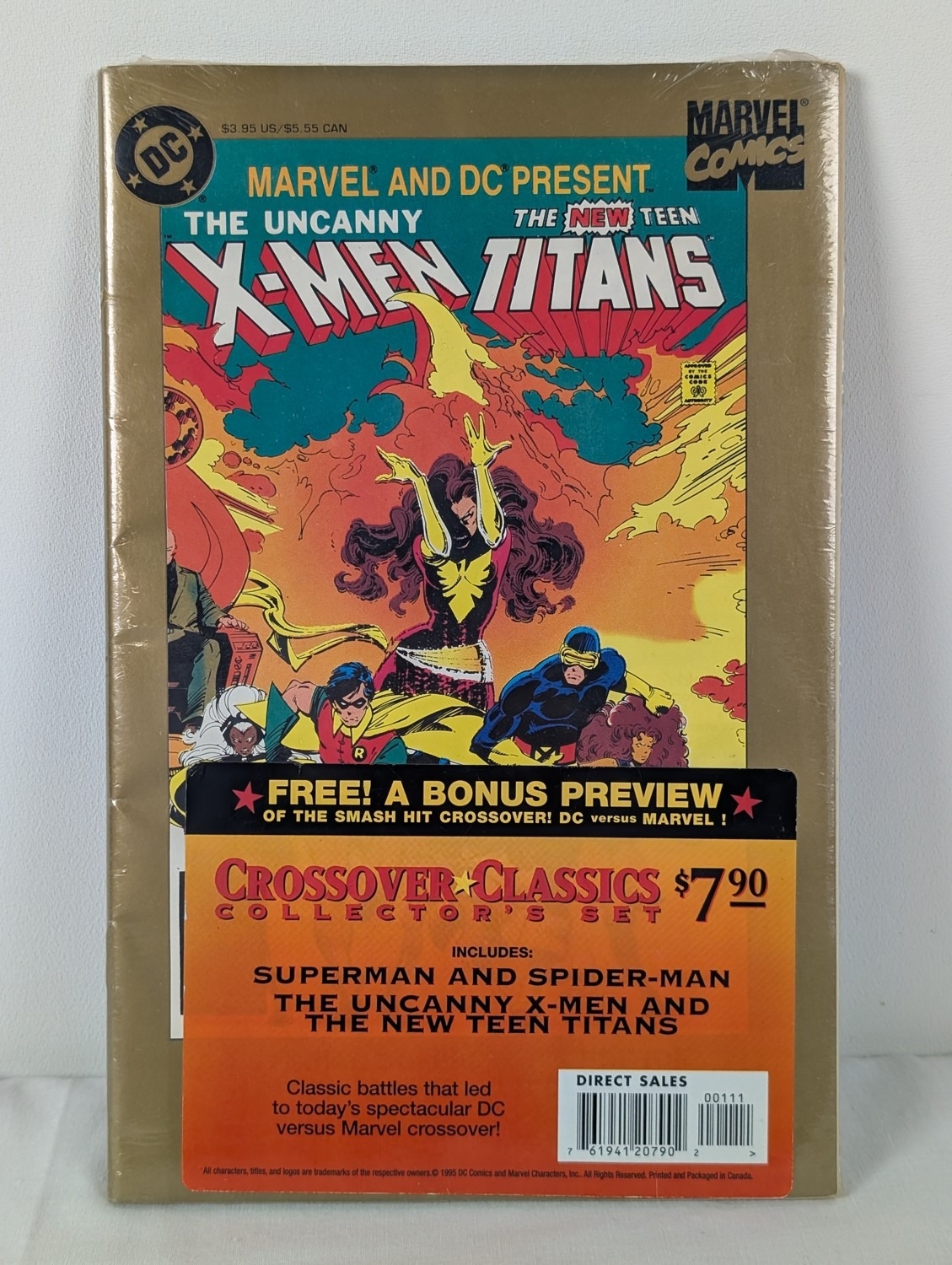 Crossover Classics Collectors Set of 2 sealed comic book reprints: Superman & Spider-Man, and Uncanny X-Men & The New Teen Titans by DC and Marvel Comics.