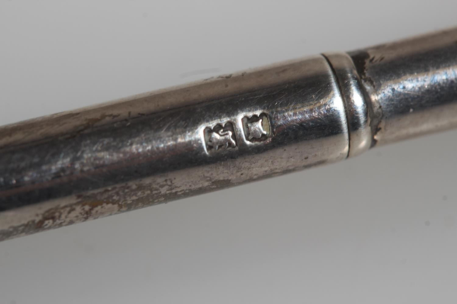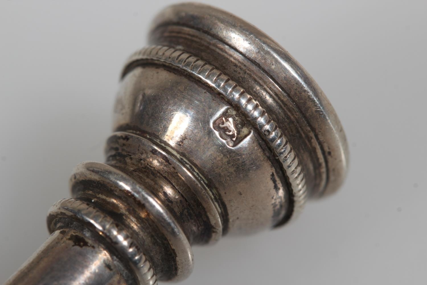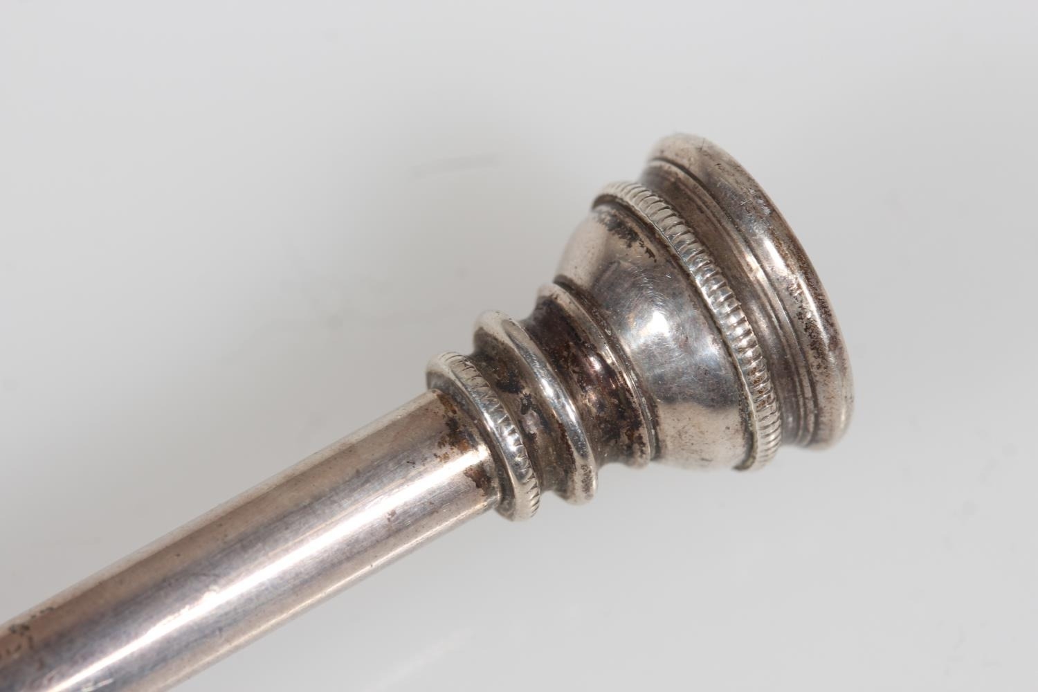 Silver candle snuffer modelled as a hunting horn, Sampson Mordan & Co, London, 47g, 30cm.