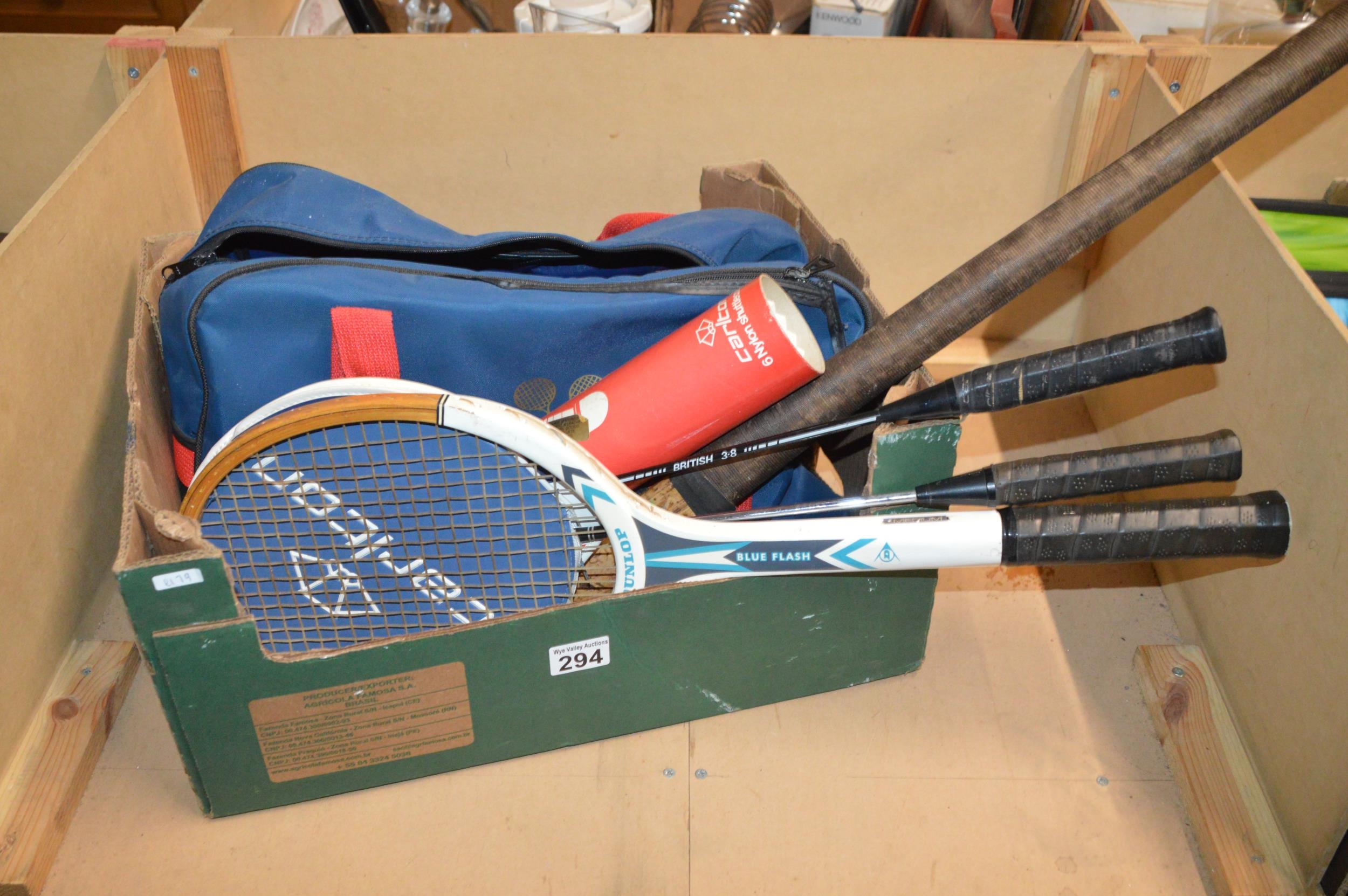box of sports rackets etc.