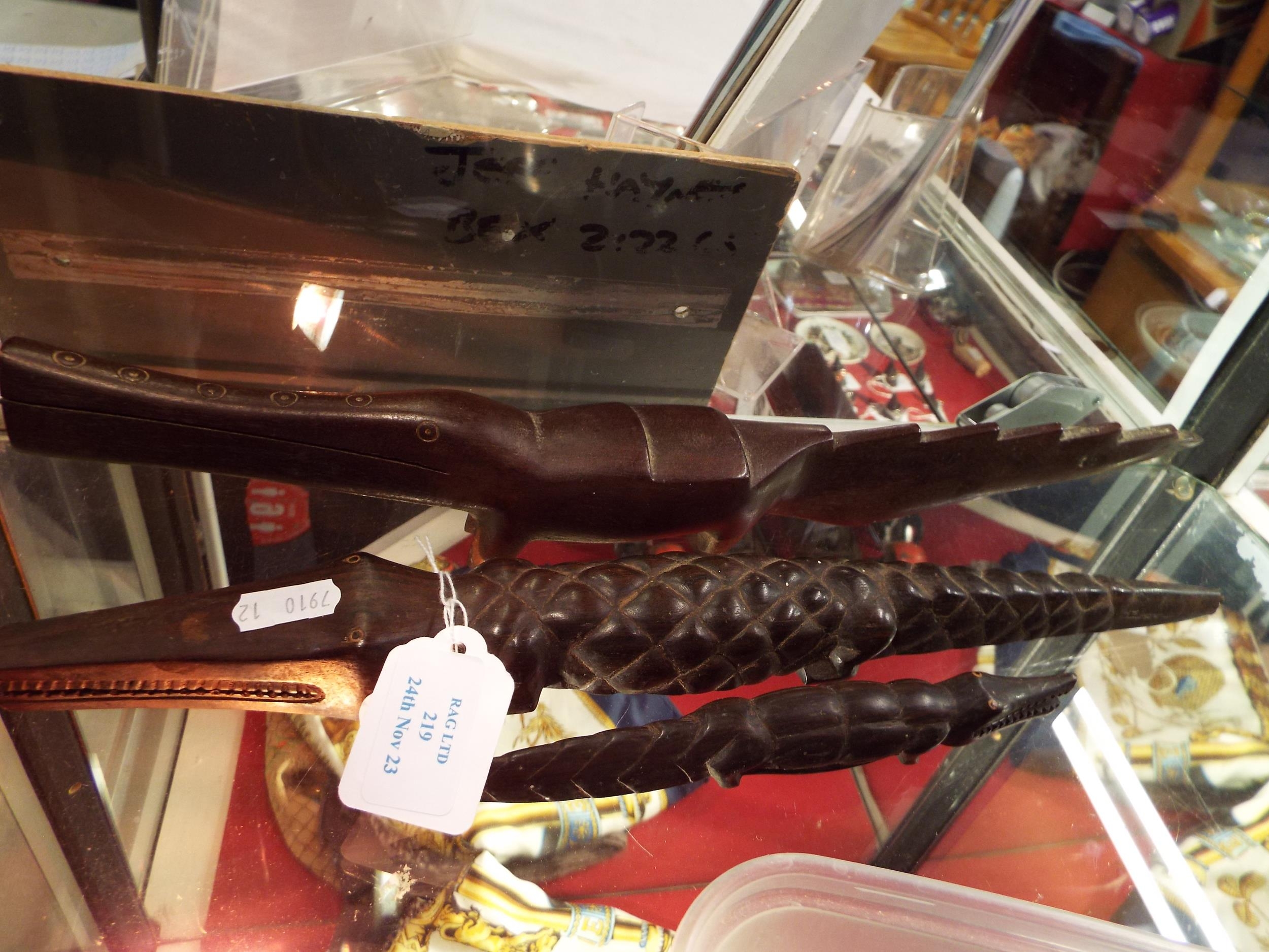 Three early carved hardwood crocodiles