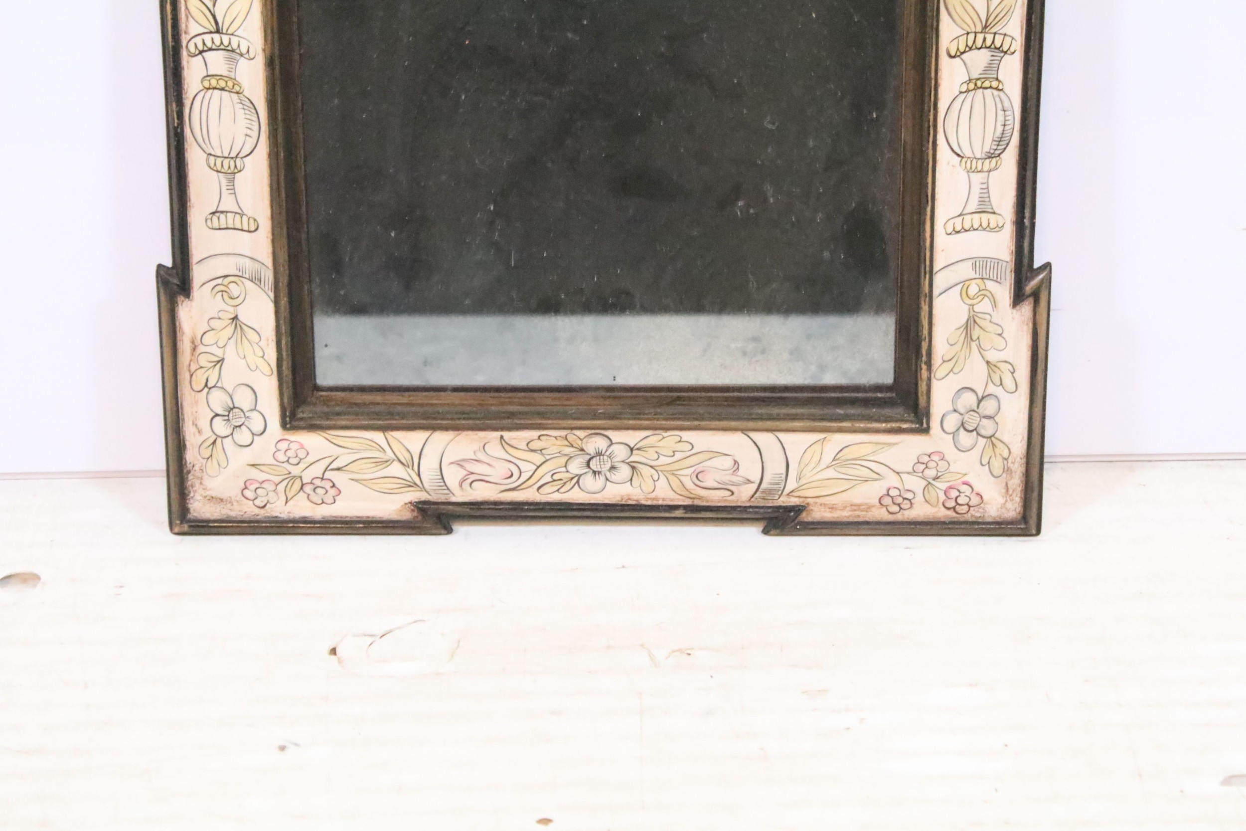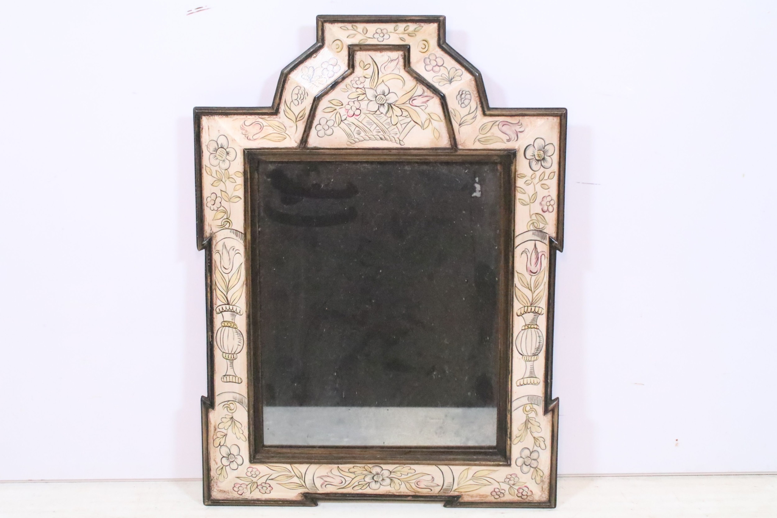 Thomas Messel design mirror, having rectangular plate within painted floral border, 30cm x 41cm