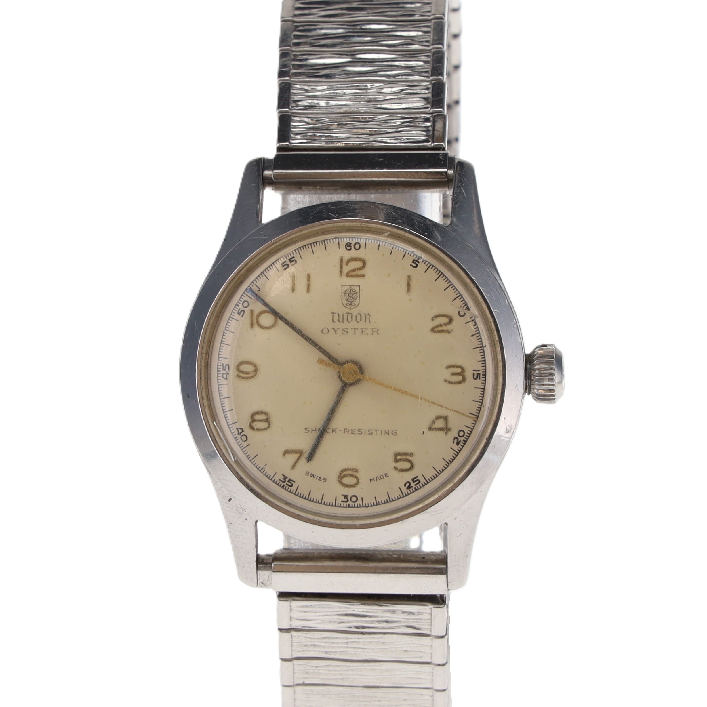 Tudor - Oyster Watch. Tudor Signed Movement Hand-wind movement. Stainless Steel case and Stainless Steel bracelet. Acrylic crystal has some scratches present. Watch is running at the time of listing offered without original box or papers.