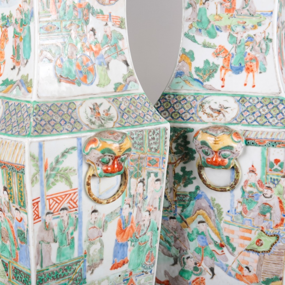 A PAIR OF CHINESE FAMILLE VERTE PORCELAIN VASES