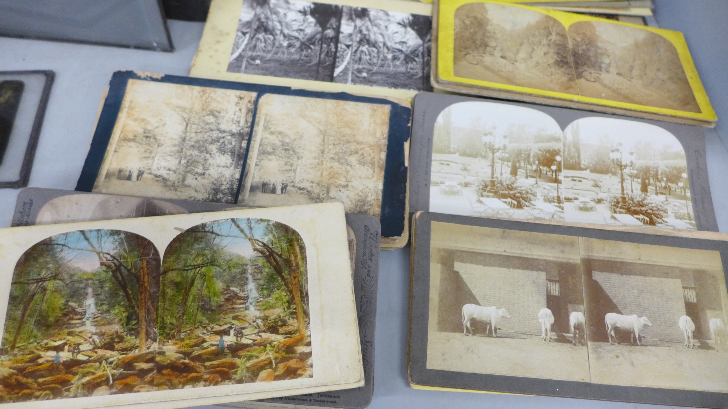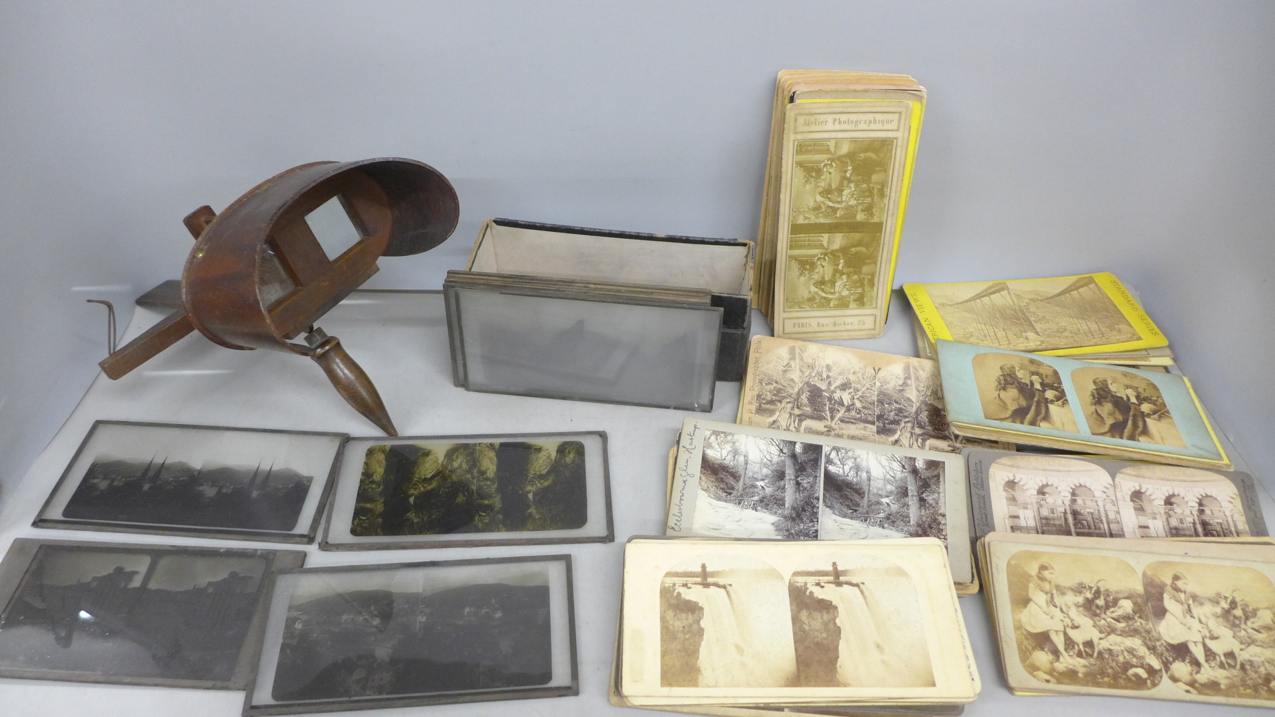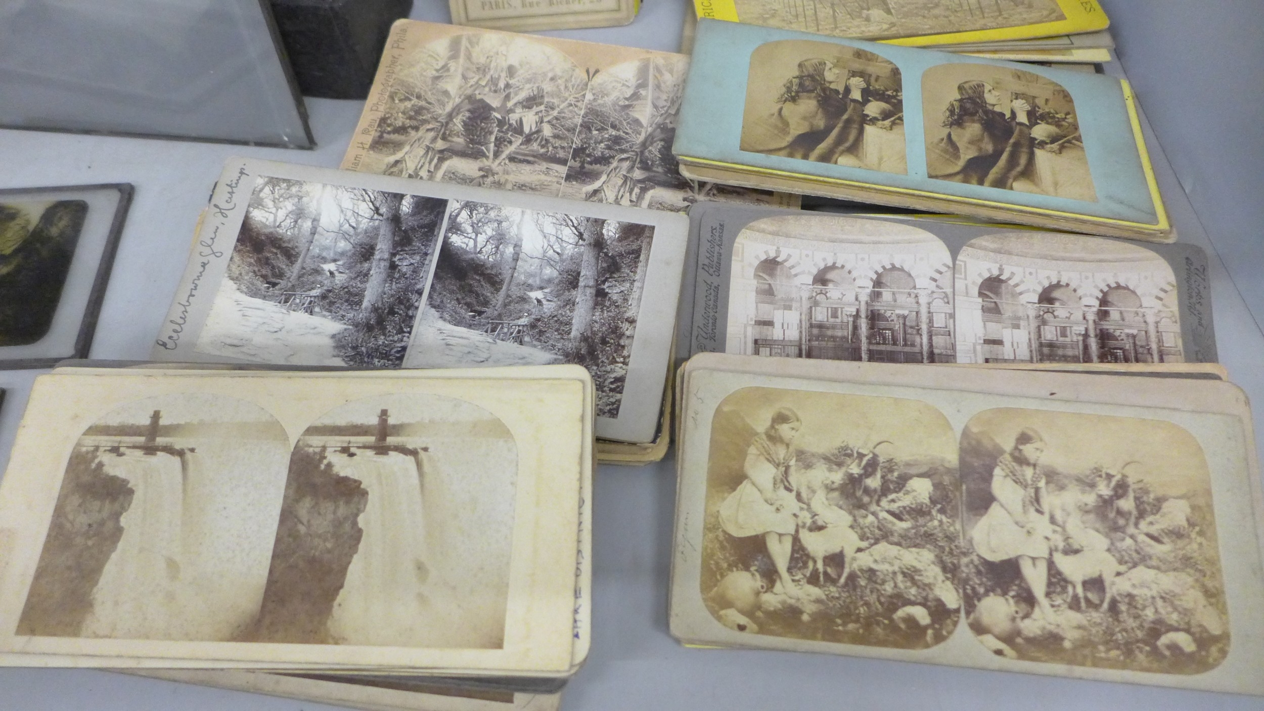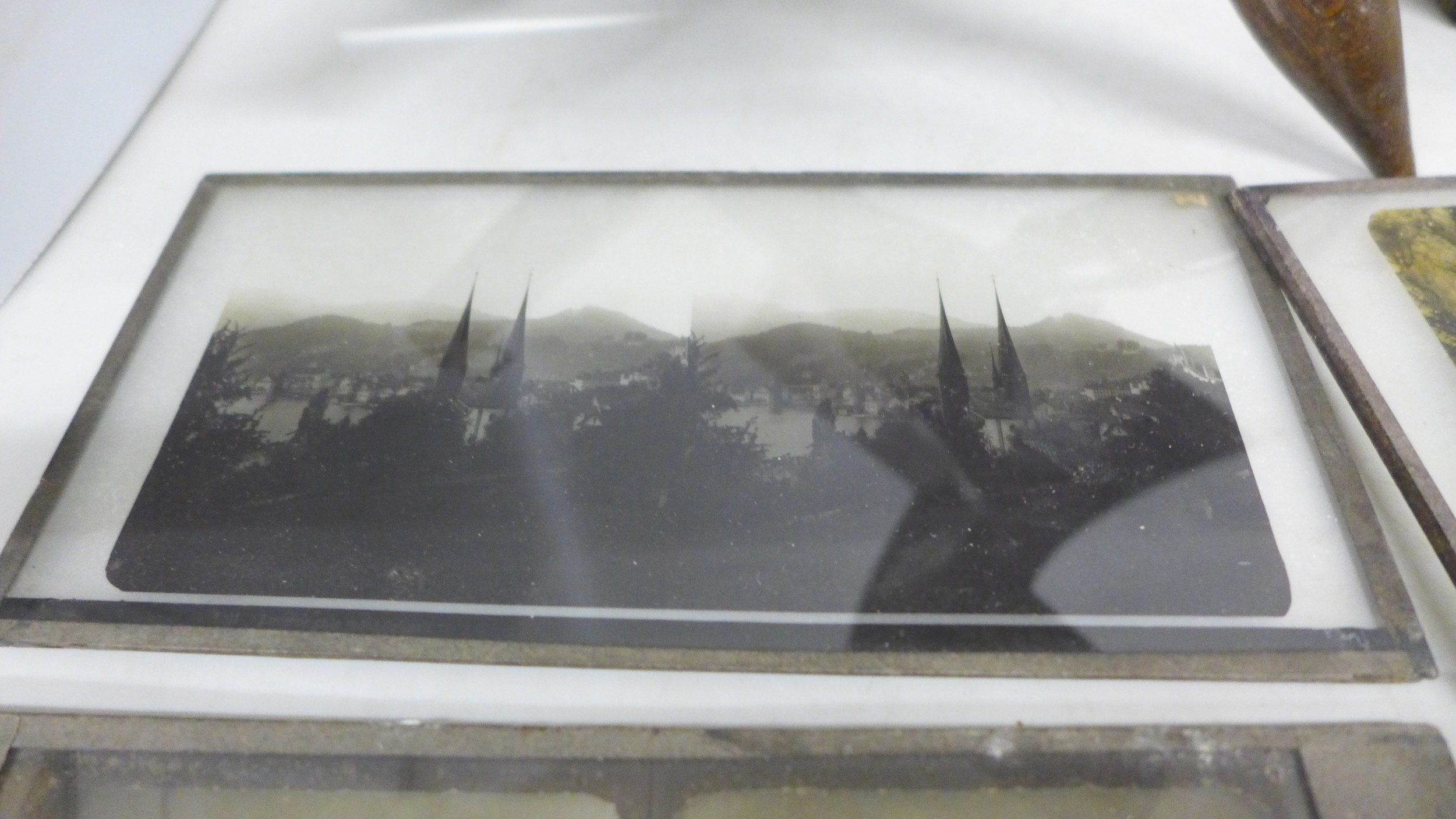 A stereoscopic viewer with 65 cards including some Niagara Falls, and ten glass