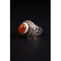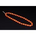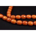 AN ISLAMIC BUTTERSCOTCH AMBER 33 BEAD NECKLACE. -