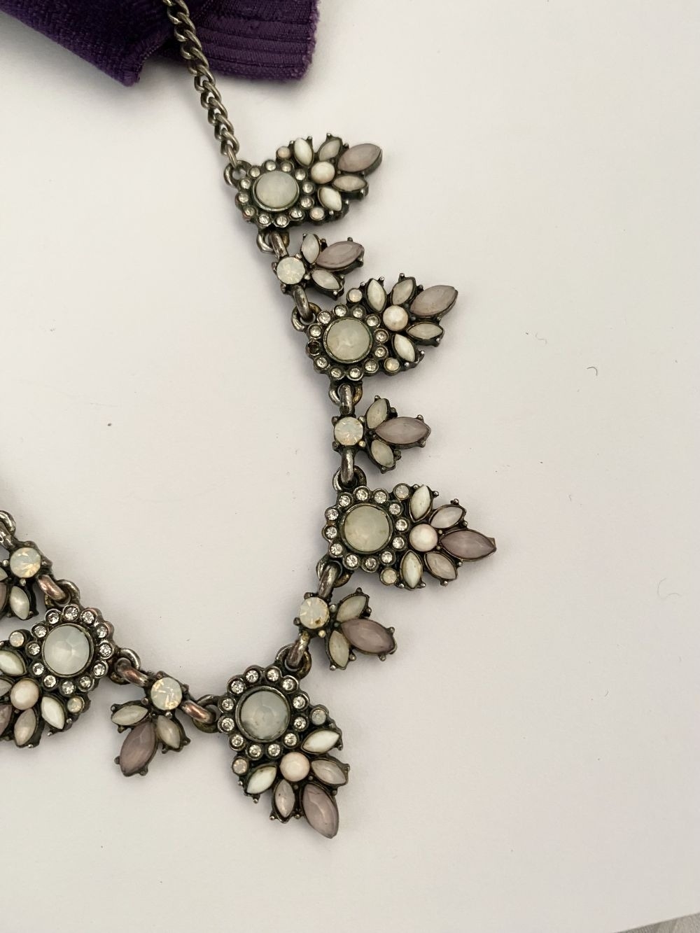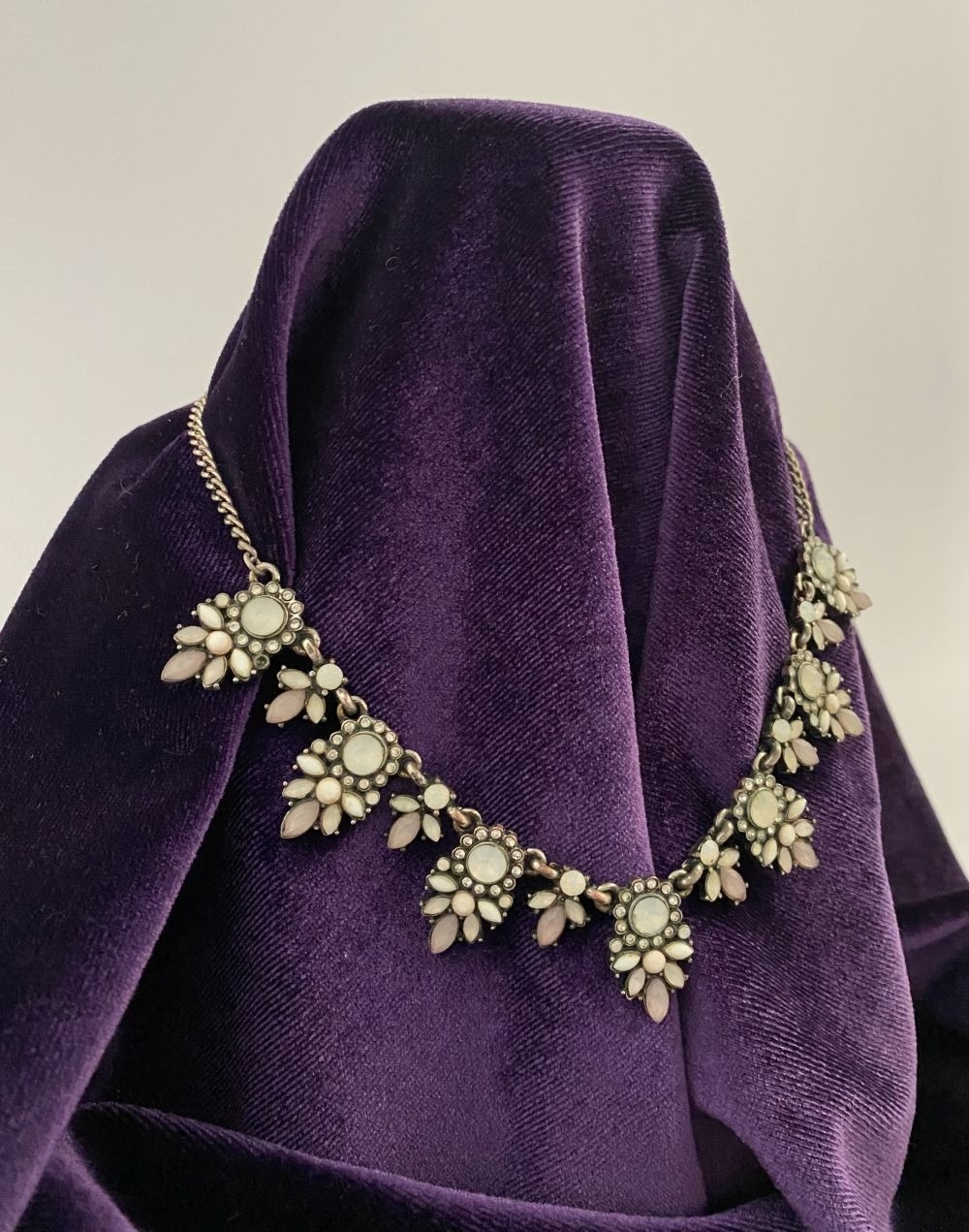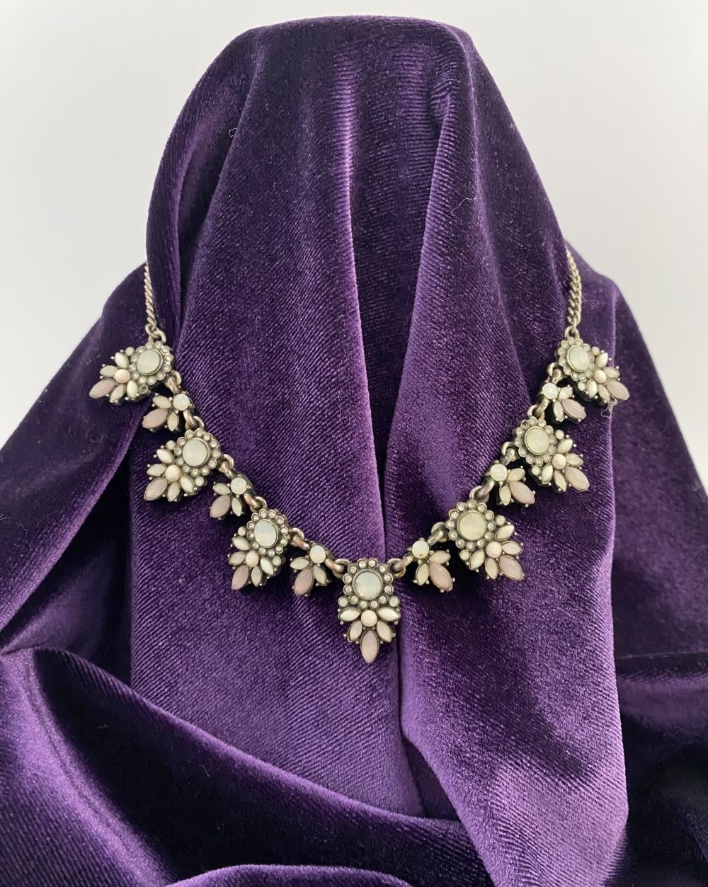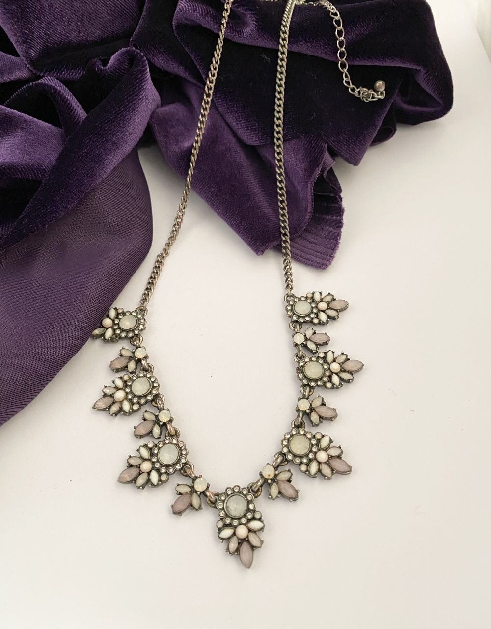 A PRETTY SILVER TONE GEMSET NECKLACE & PAIR OF DROP EARRINGS...