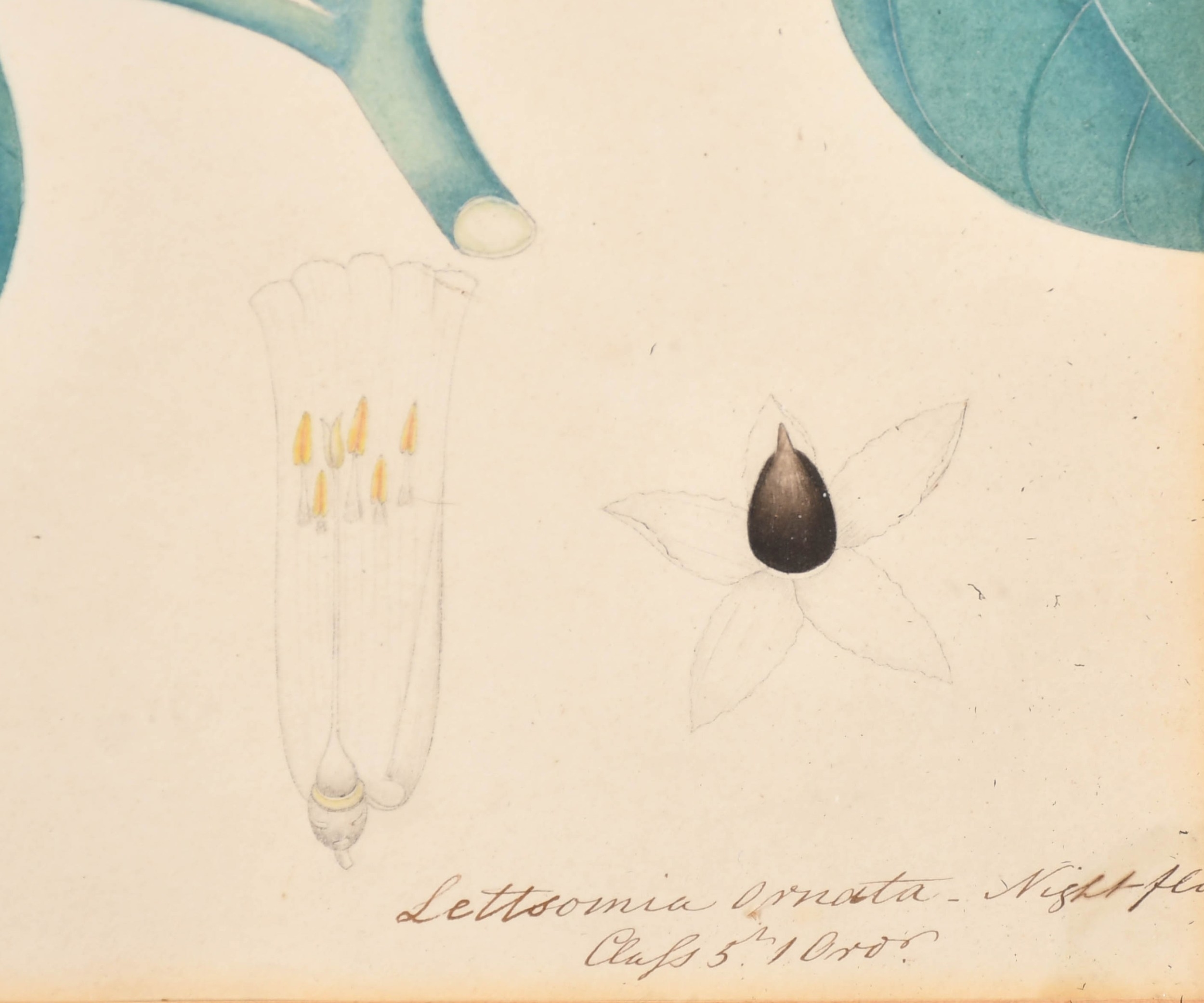 19th Century Calcutta (Indian) School. "Lettsomia, Ornata Night Flower", Watercolour and pencil, Inscribed, 14.5" x 11" (36.8 x 27.9cm)