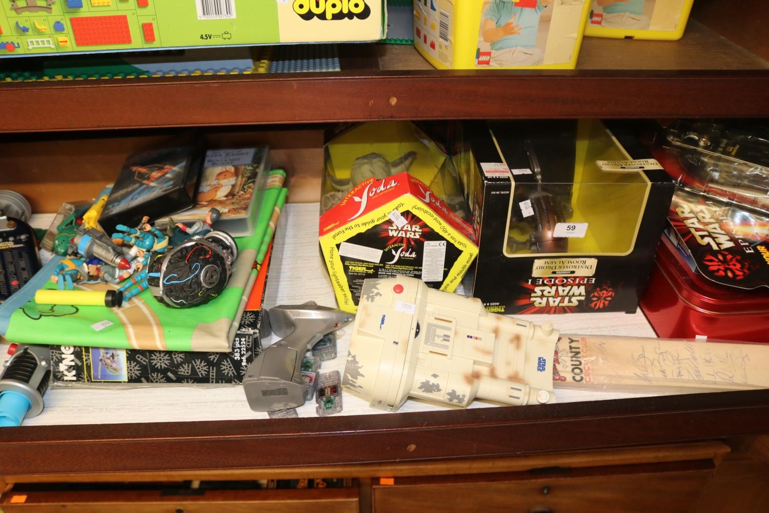 Star Wars Interactive Yoda together with other Star Wars Items, toy light sabres, loose Thunderbird figures and other toys