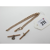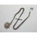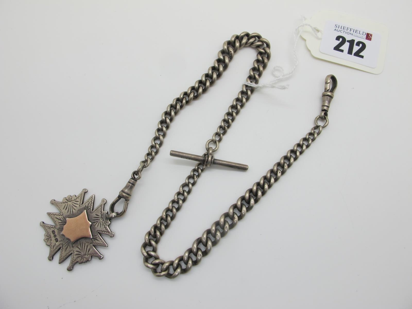 A Curb Link Double Albert Chain, suspending T-bar and hallmarked silver medallion pendant.