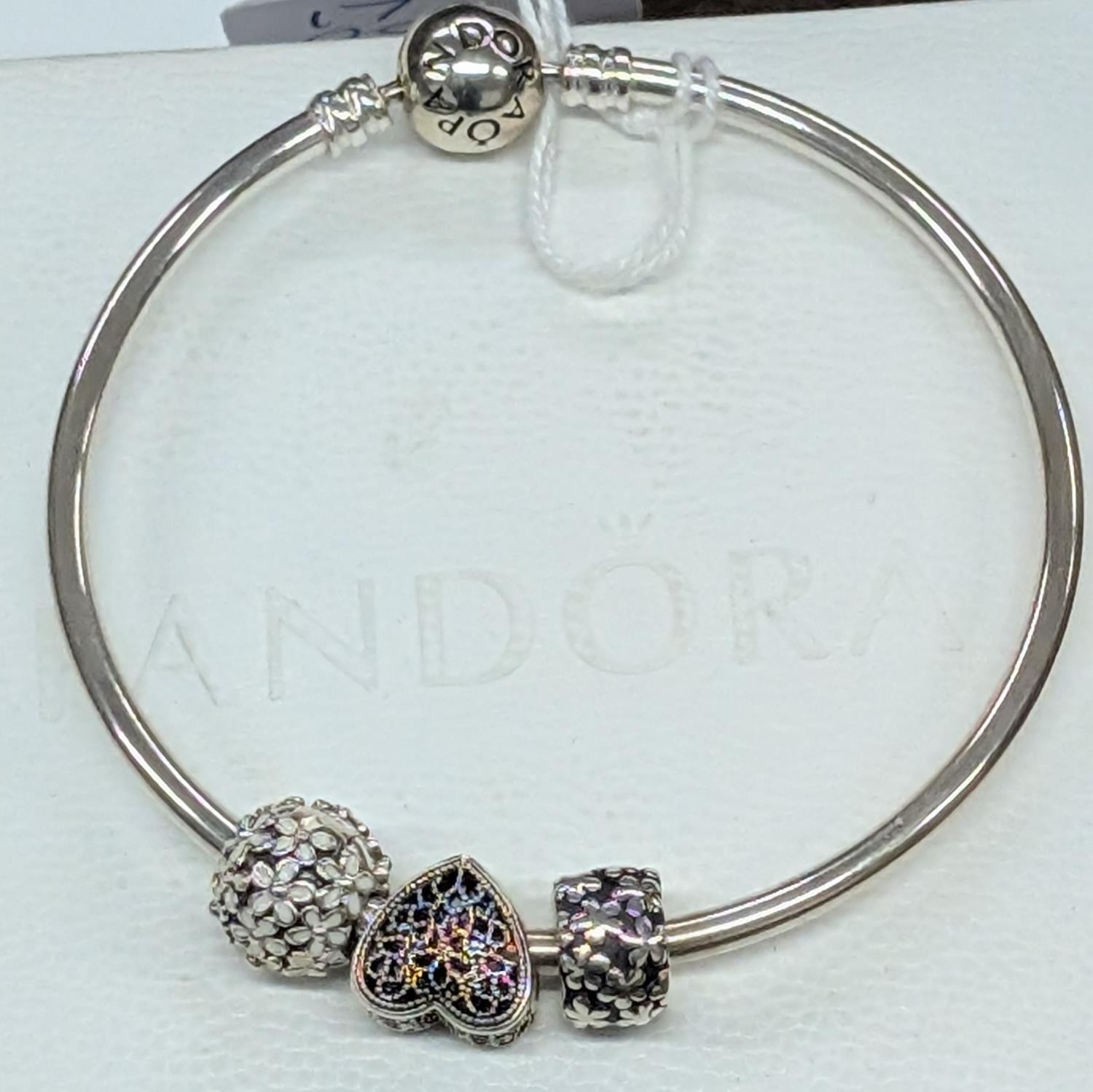 Pandora 925 Silver Charm Bangle Bracelet with Three Charms