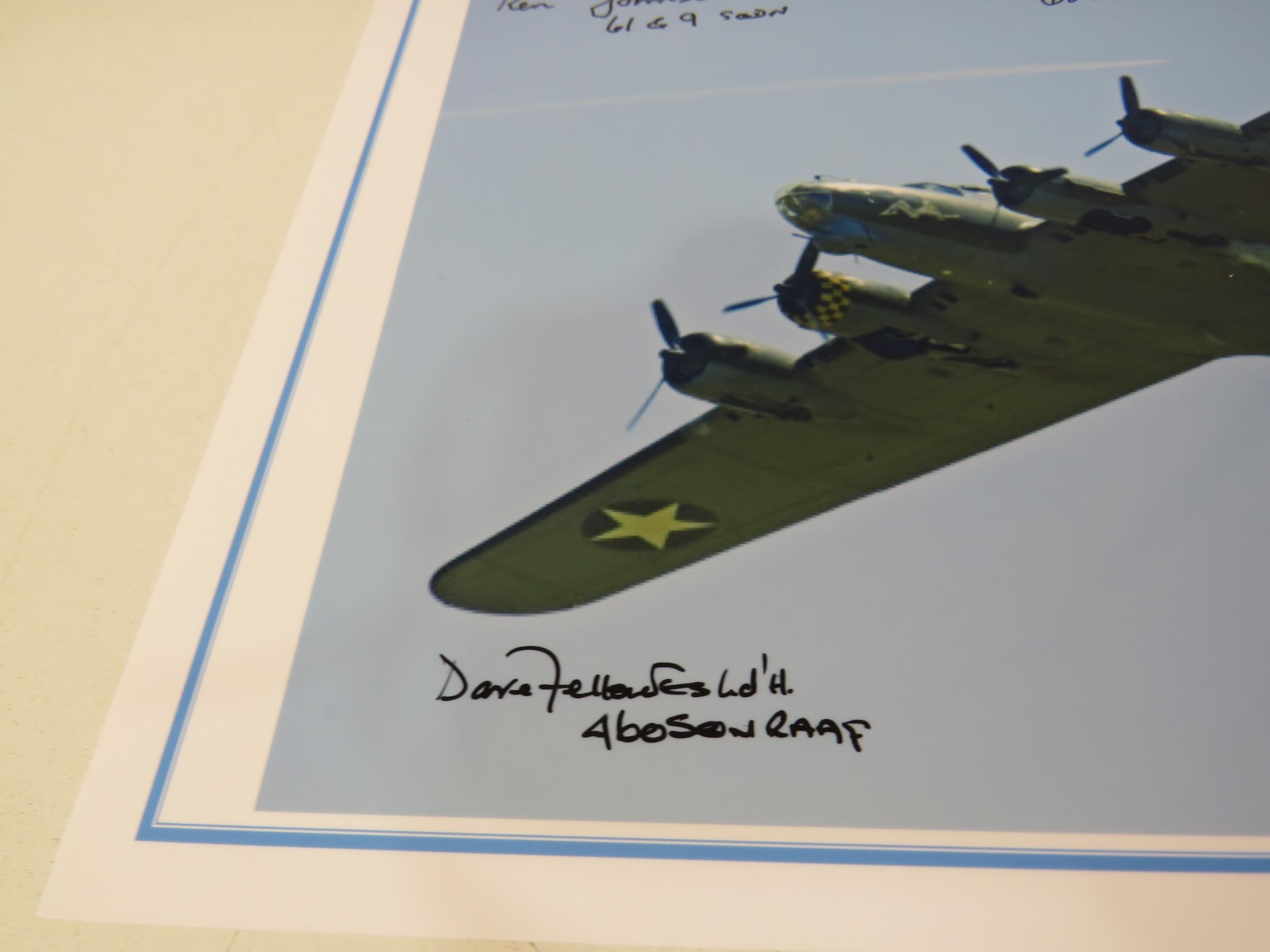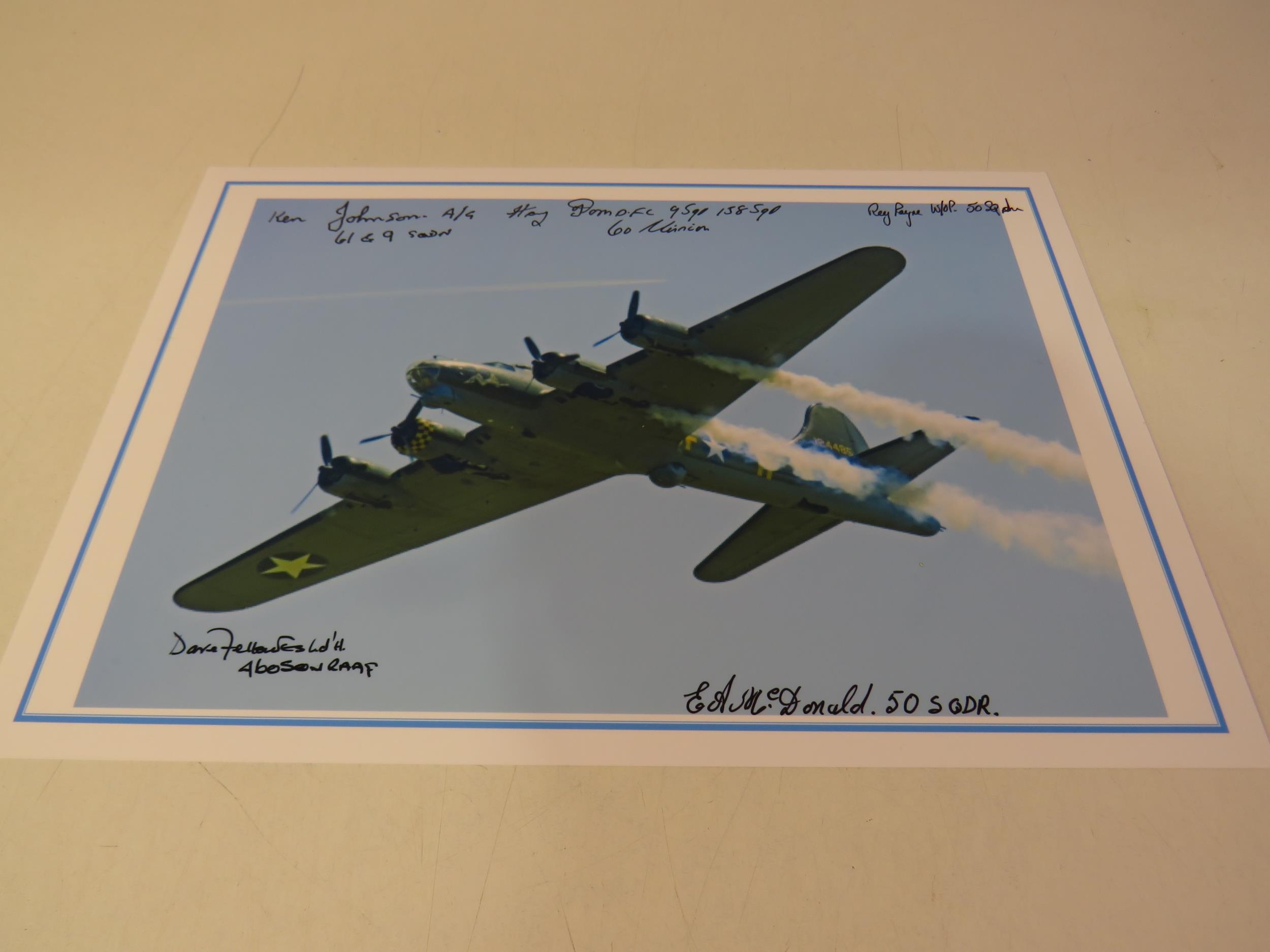 A4 photo B17 bomber signed by five WWII veterans