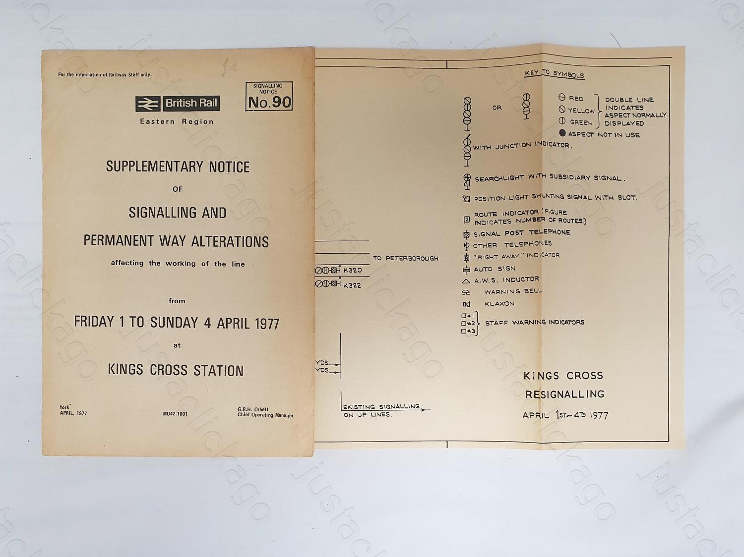 Railway. A B.R. Eastern Region Supplementary Notice of Signalling and Permanent Way Alterations ar King's Cross Station. April 1977. With good sized associated fold out signalling diagram.
