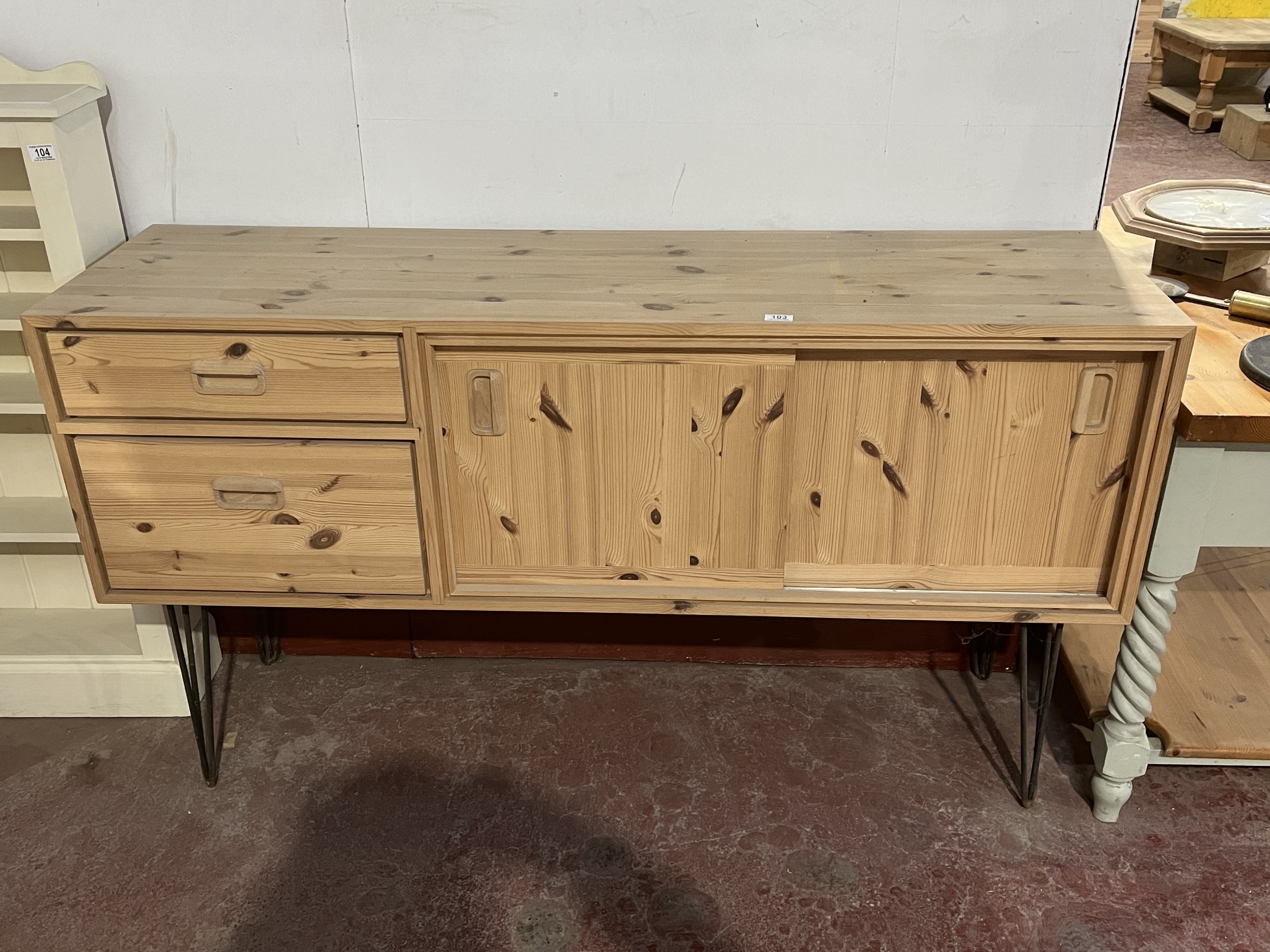 SOLID PINE SIDEBOARD WITH HAIR PIN LEGS 63" WIDE 18" DEEP 35" TALL