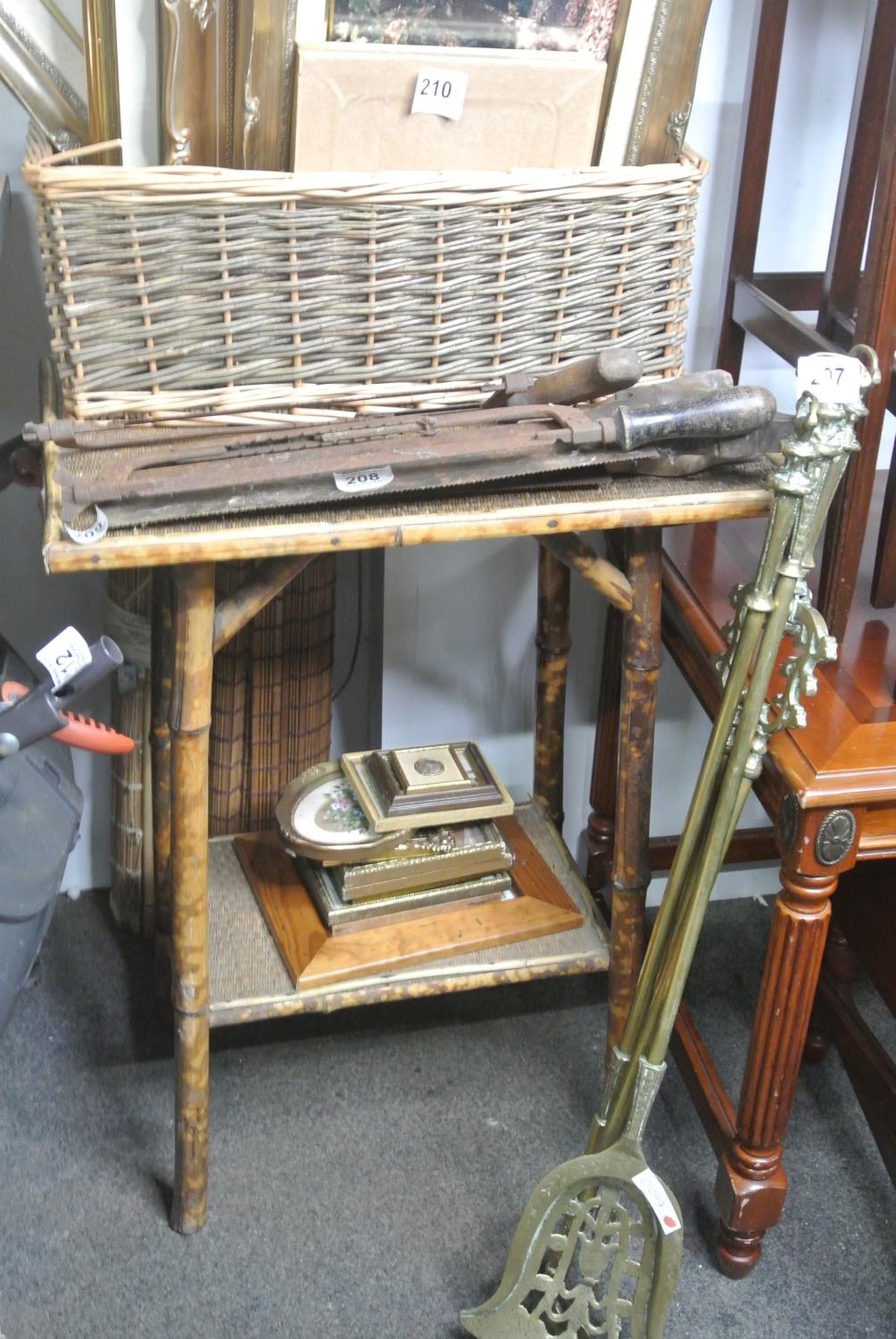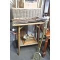 A bamboo and wicker occasional table