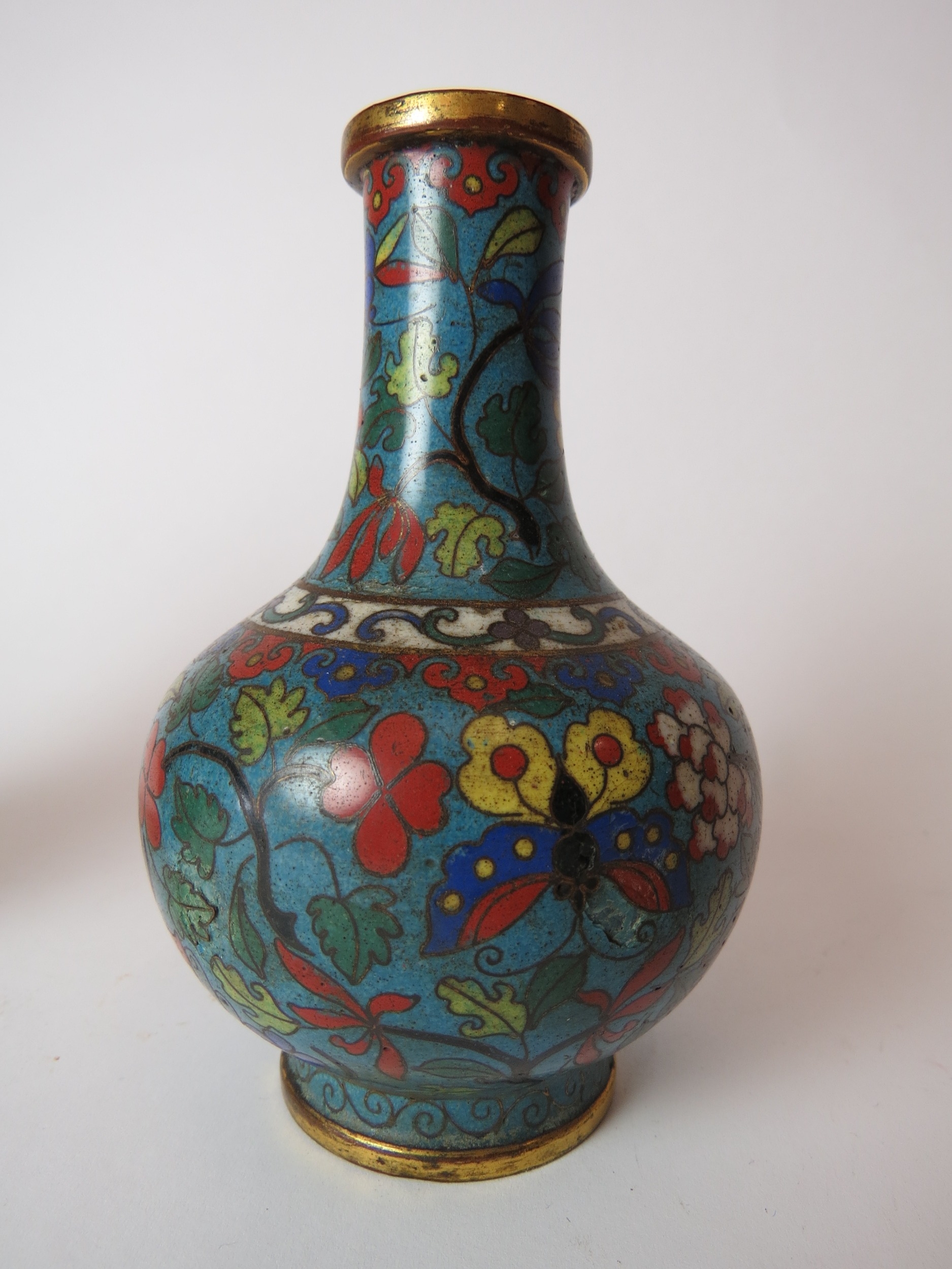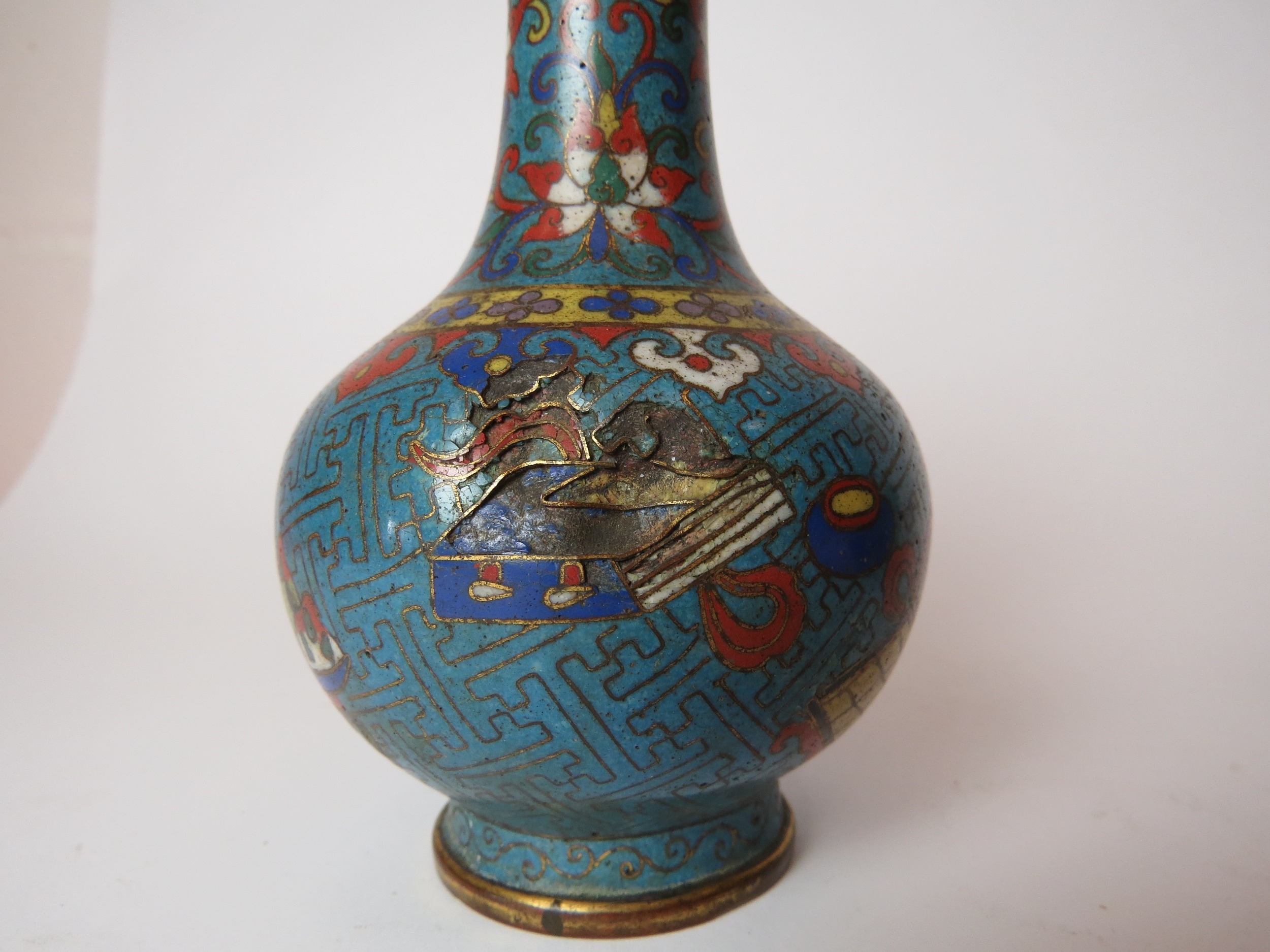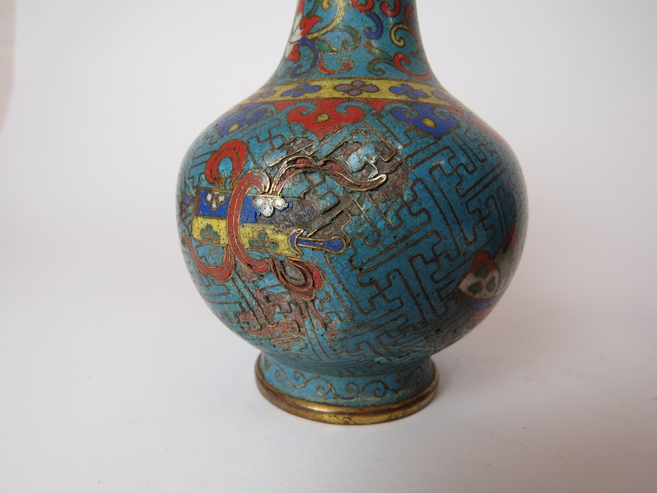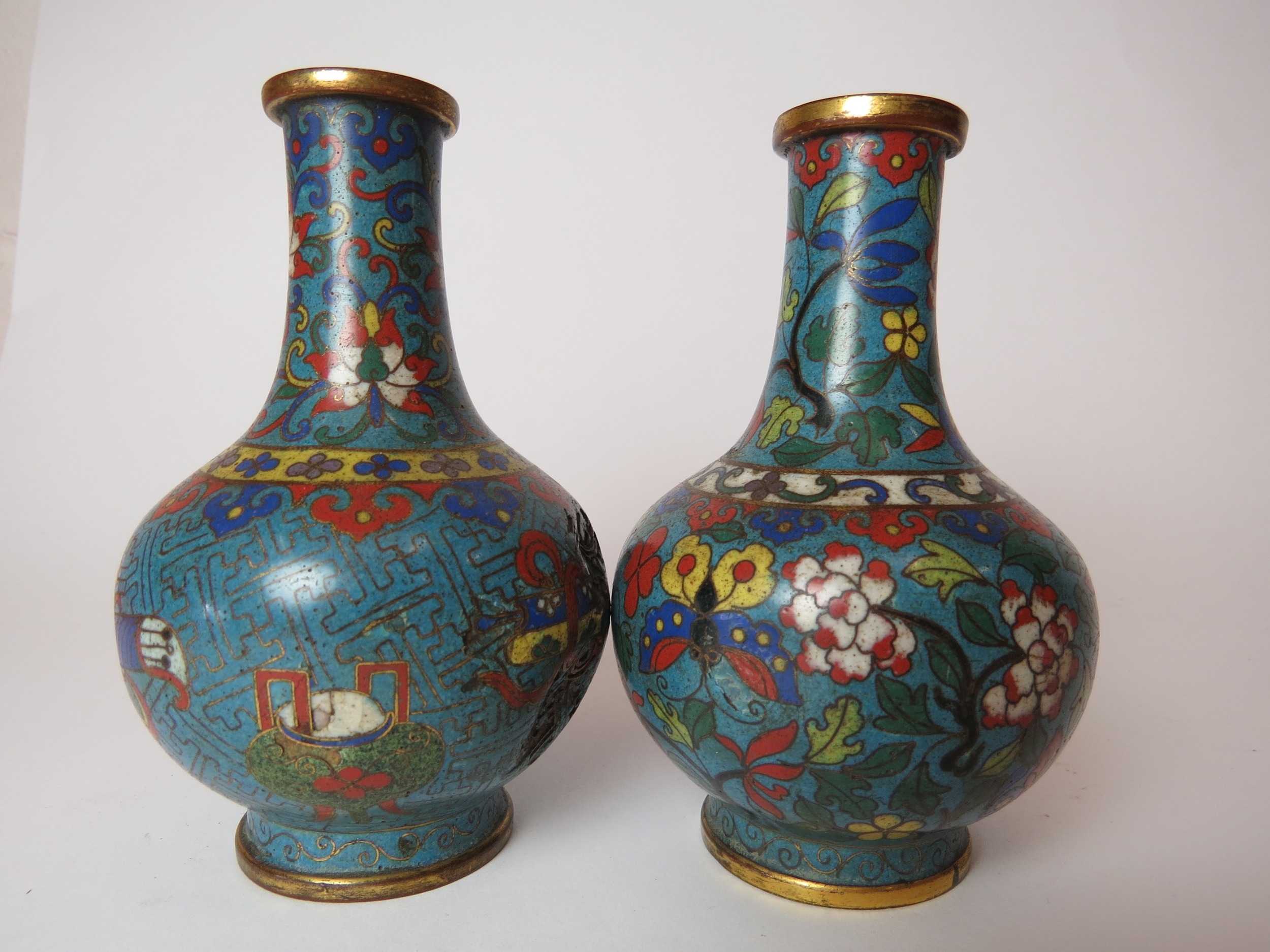 Two Chinese cloisonne bottle vases, both a/f, 12.5cm high