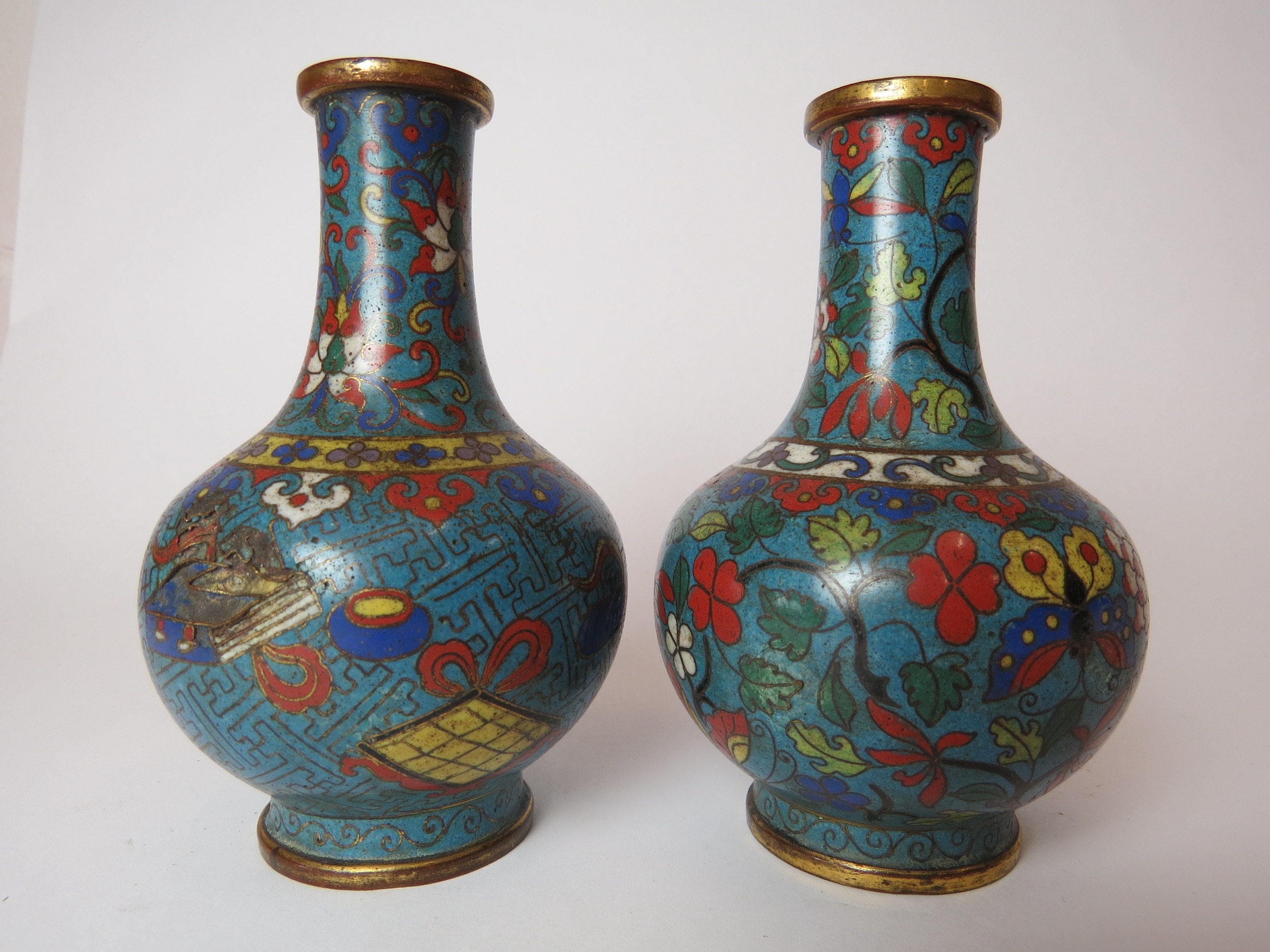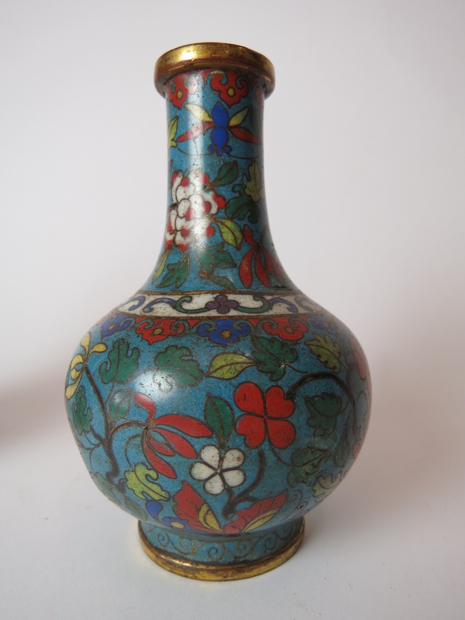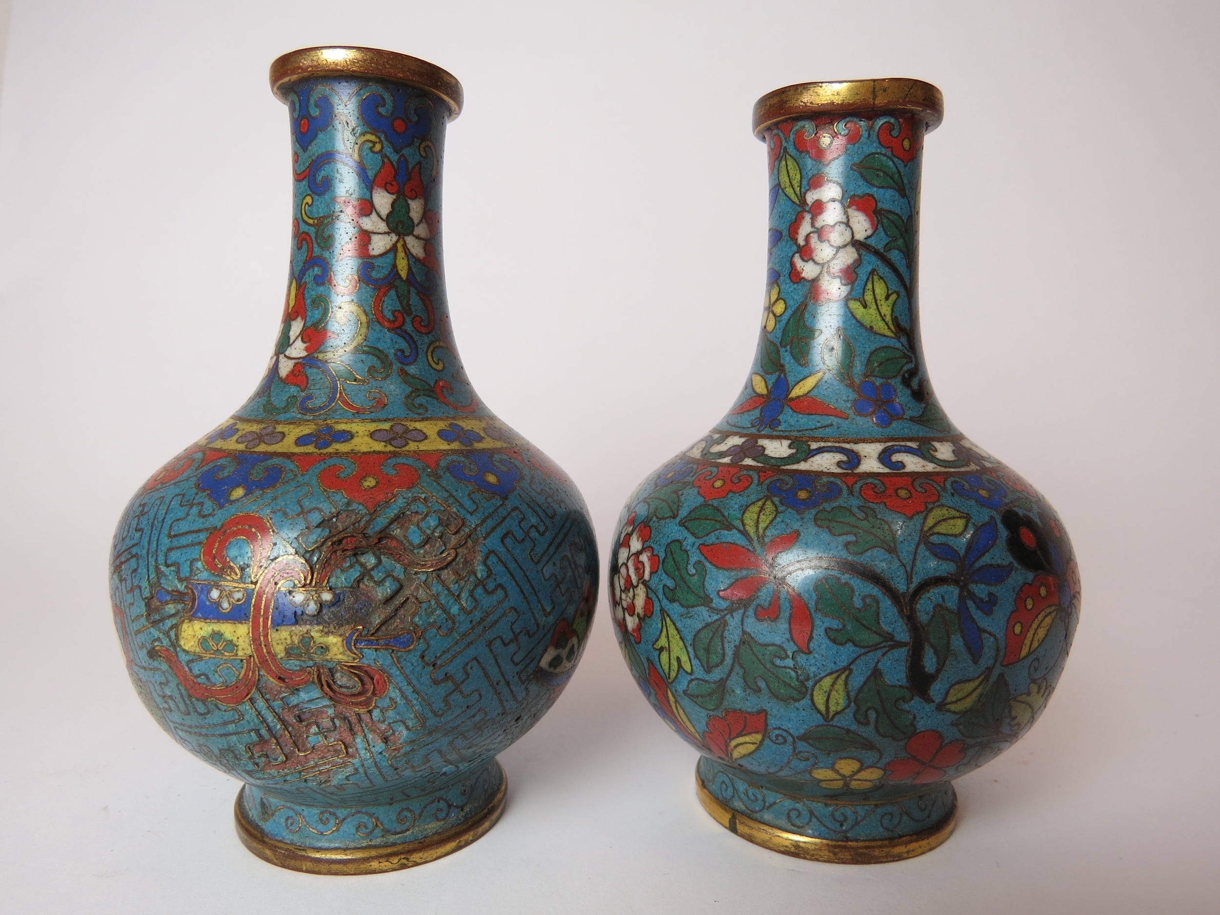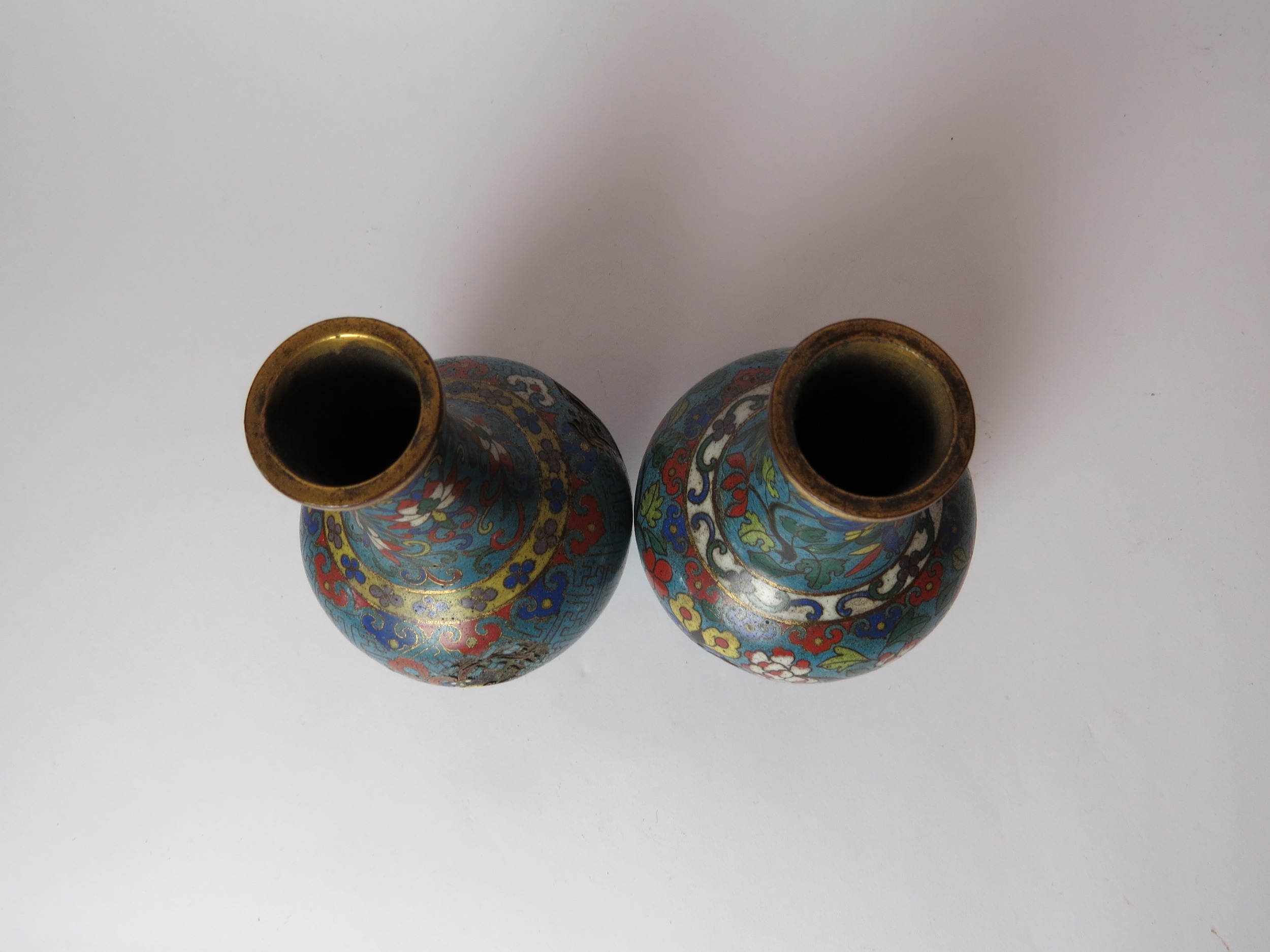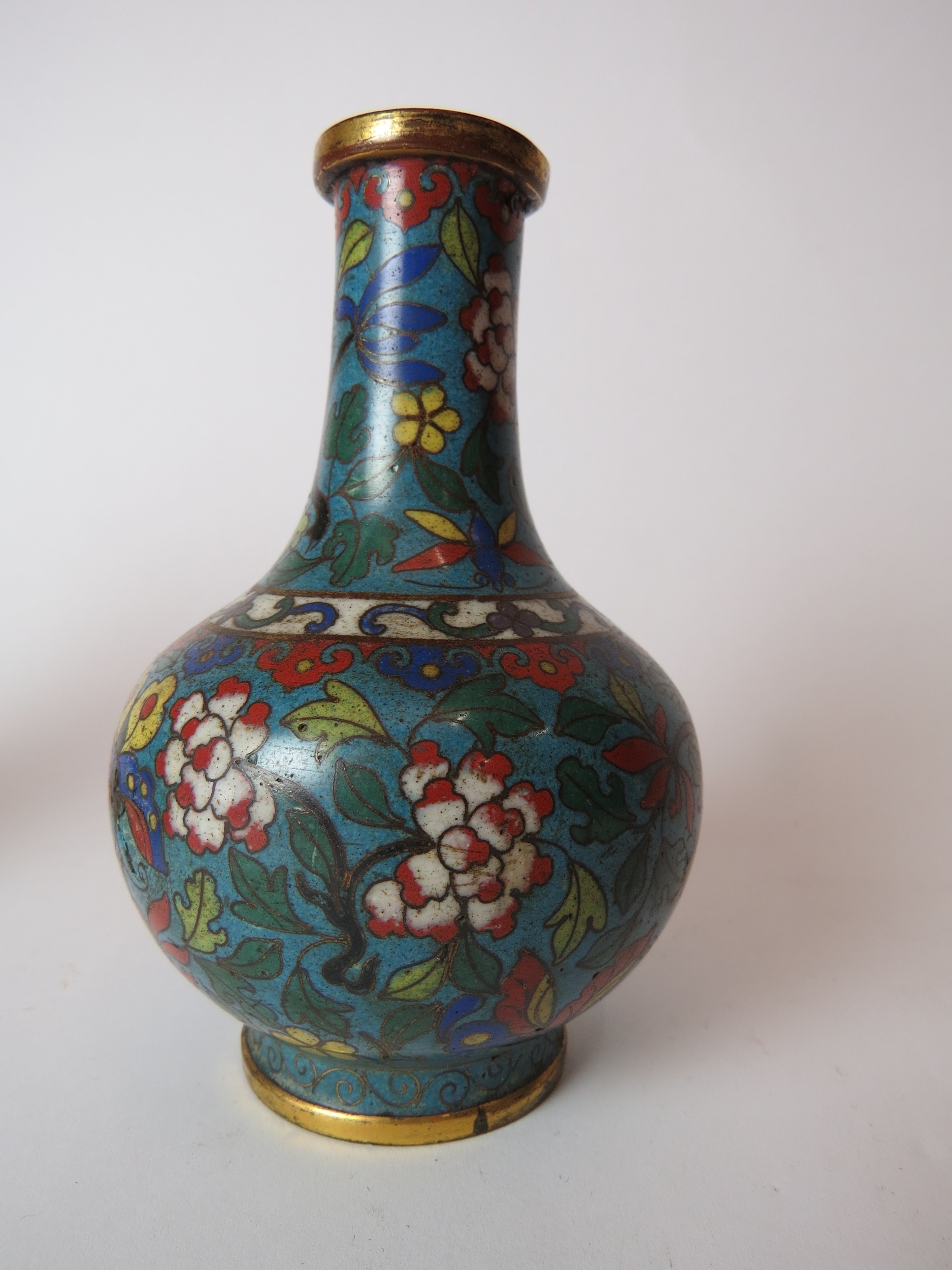 Two Chinese cloisonne bottle vases, both a/f, 12.5cm high