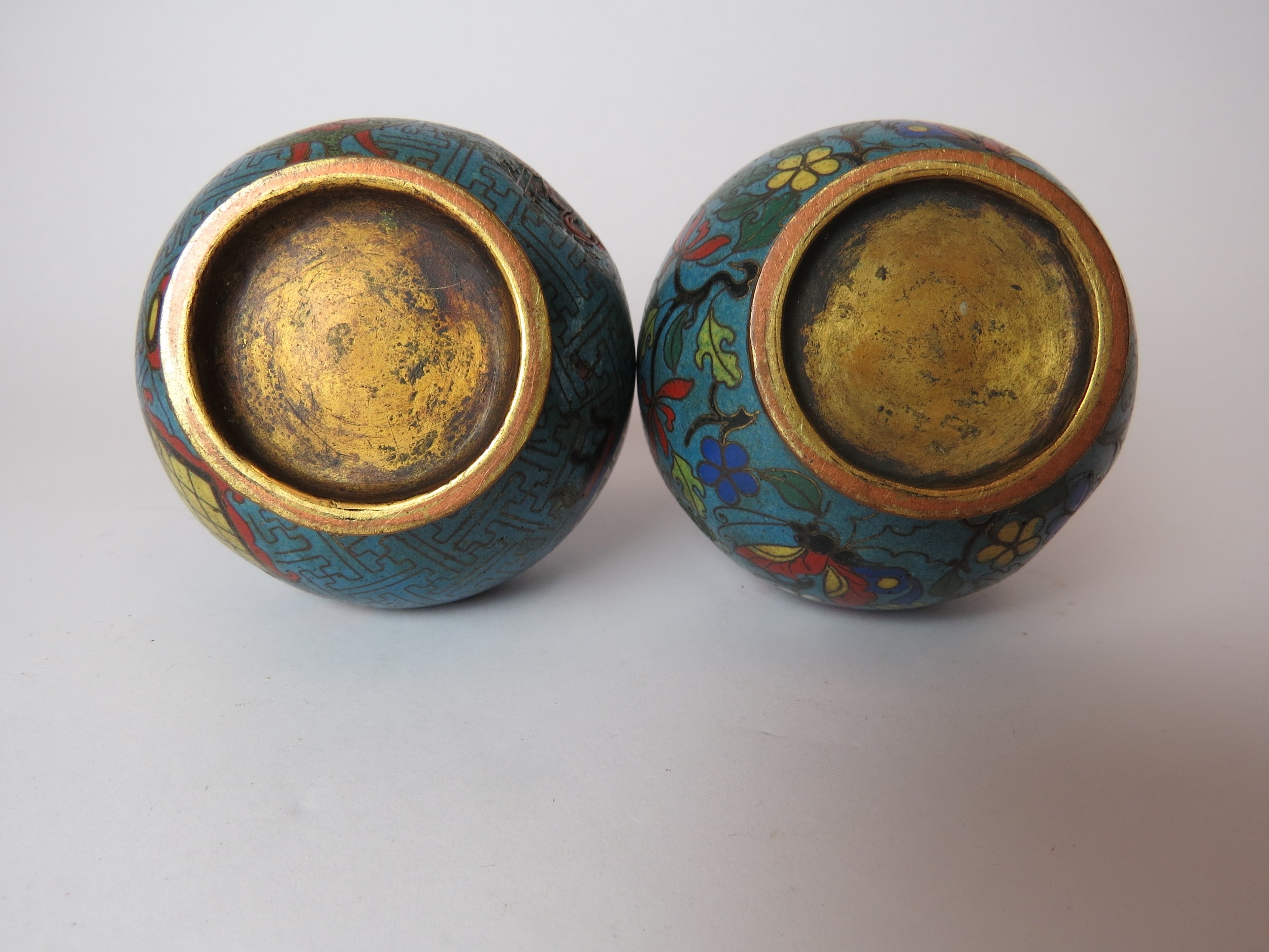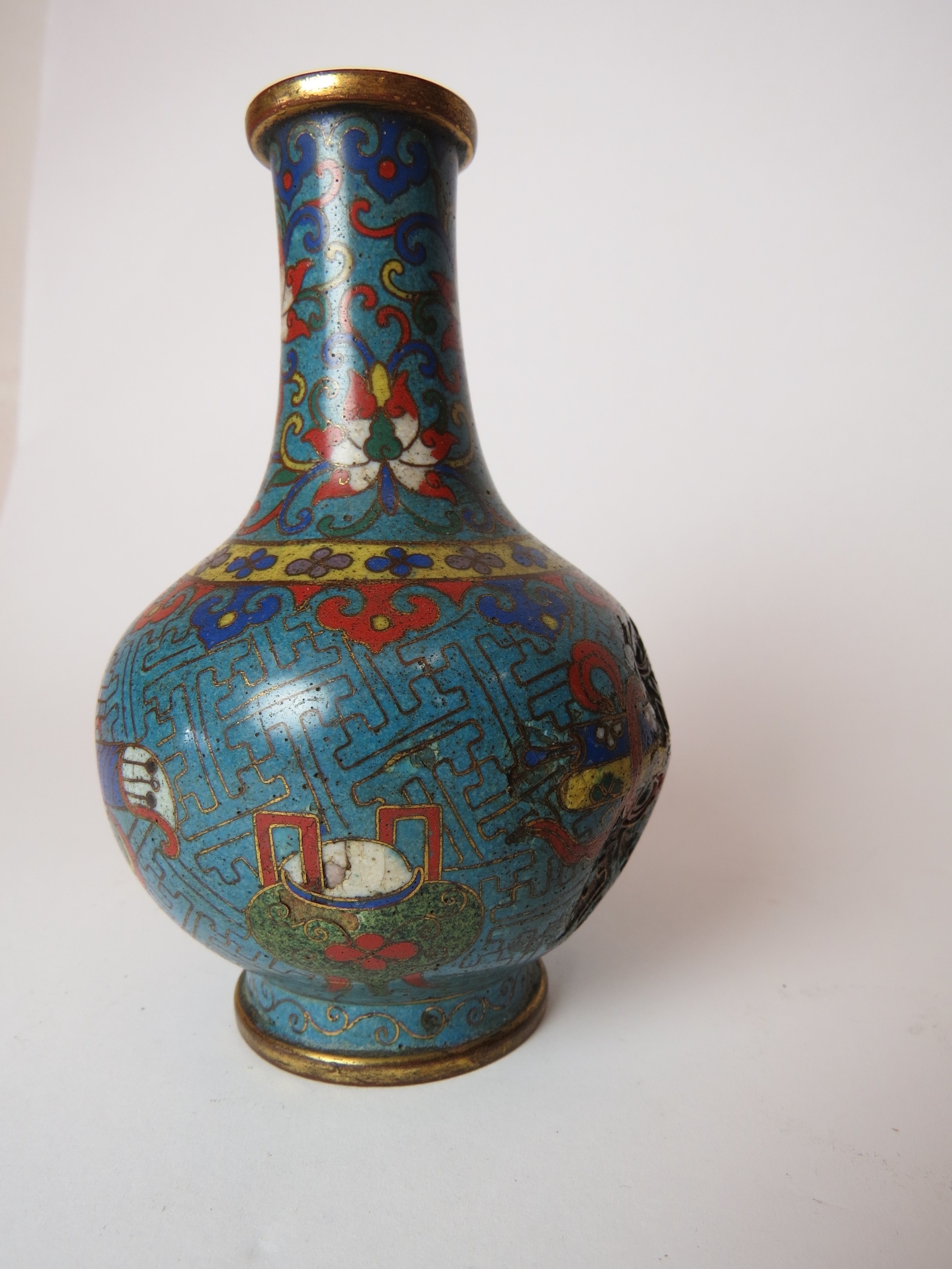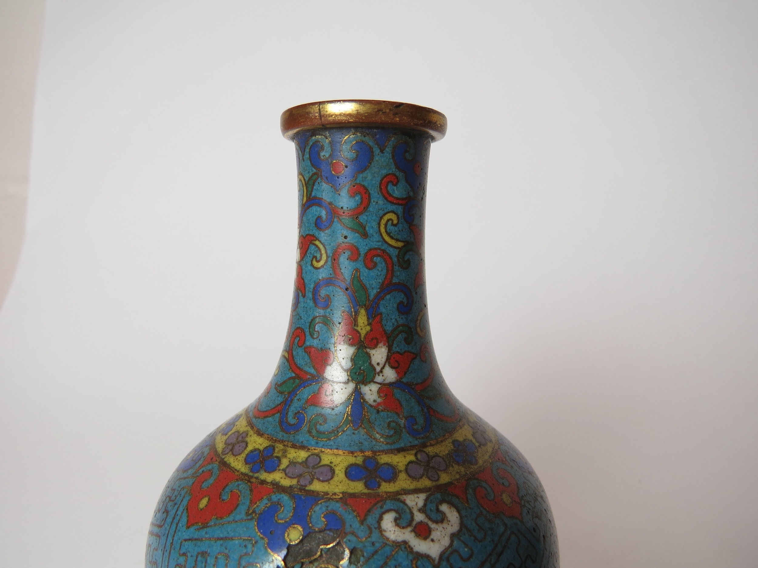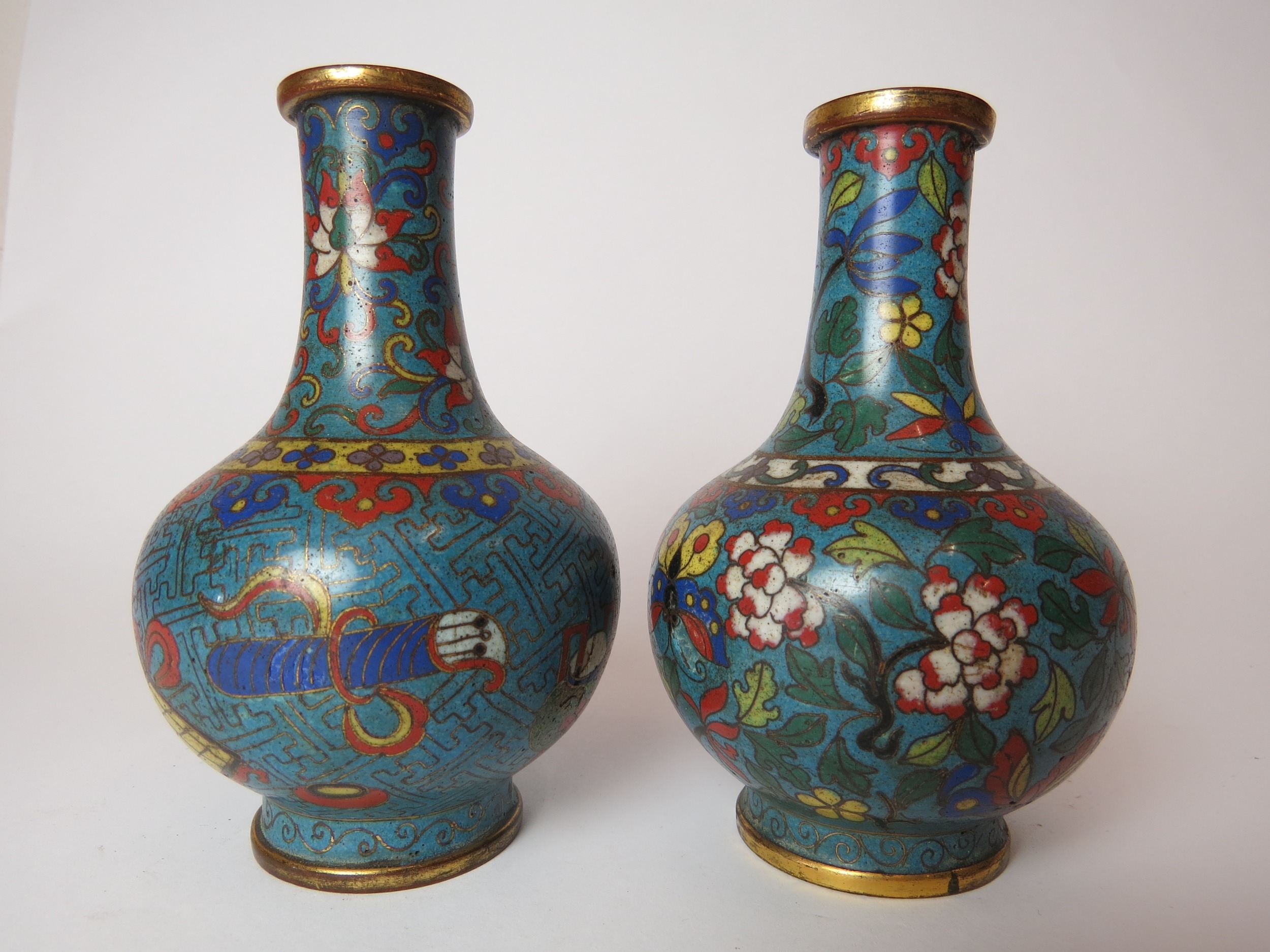 Two Chinese cloisonne bottle vases, both a/f, 12.5cm high