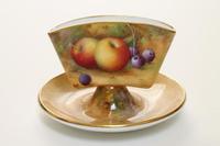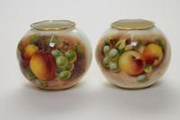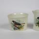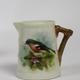 A ROYAL WORCESTER PORCELAIN CREAM JUG AND SUGAR BASIN, 1935, of staved barrel form, each painted in colours with a Chaffinch and Redstart by Roberts, marks in green, signed, jug 2 1/4" high
