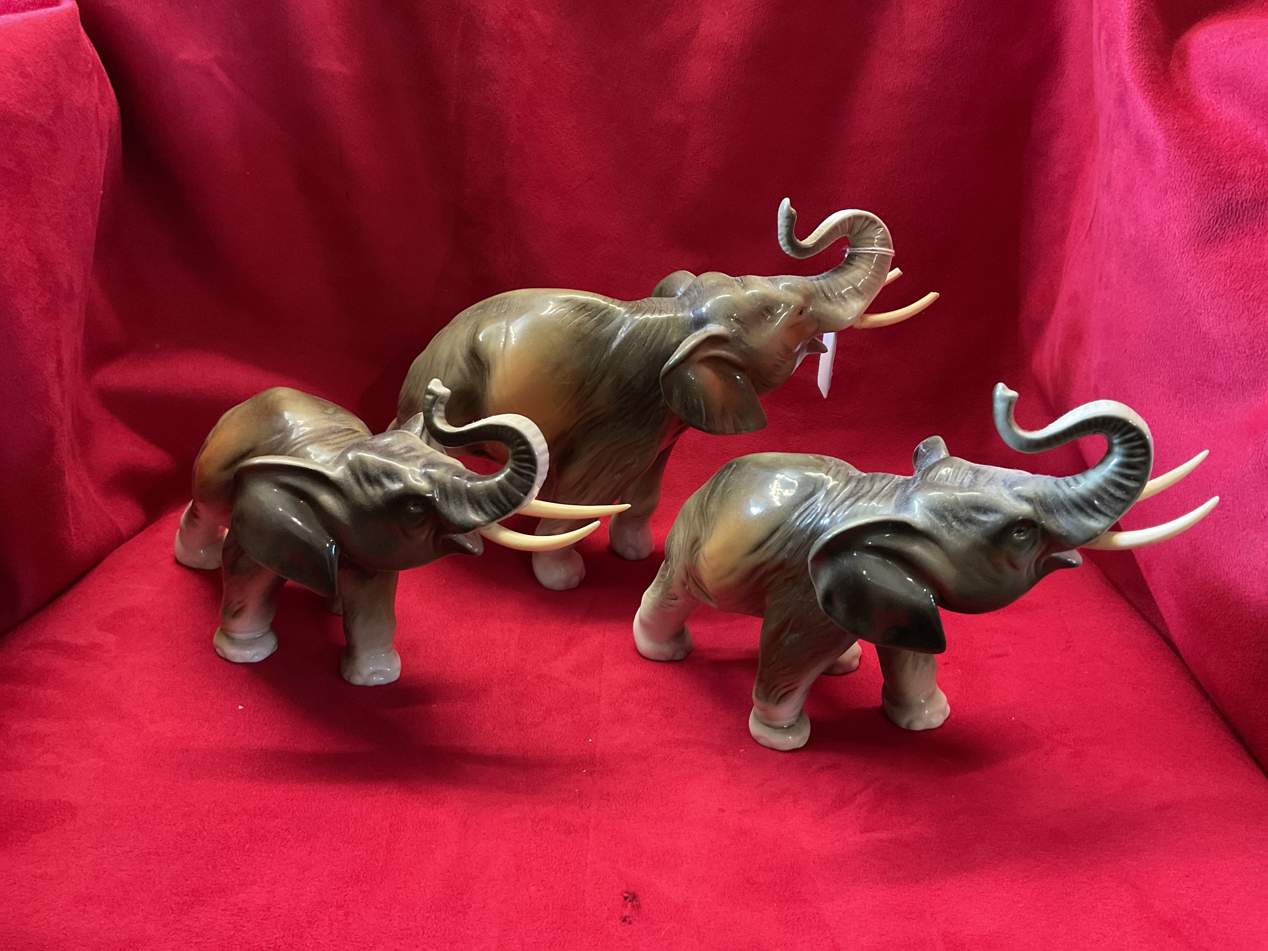 A group of three Royal Dux elephant's A/F