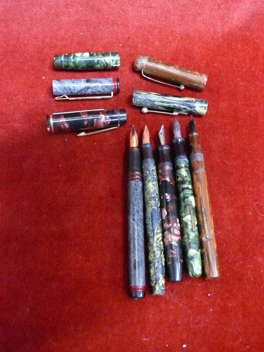 6 FOUNTAIN PENS ALL MOTTLED MIXED PENS, NOVA, VALENTINE, WATERMANS, OTHERS