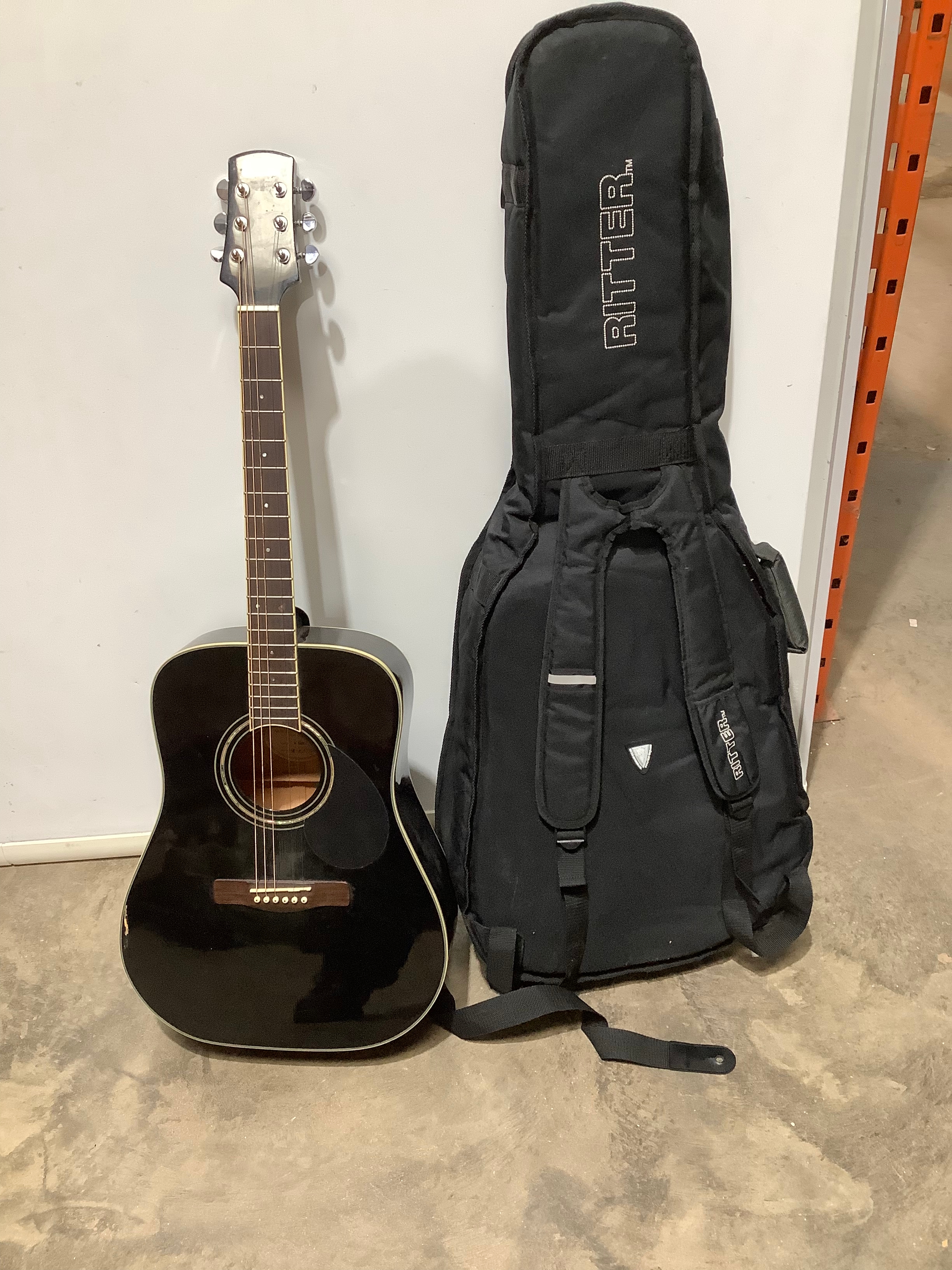 Black acoustic guitar in case