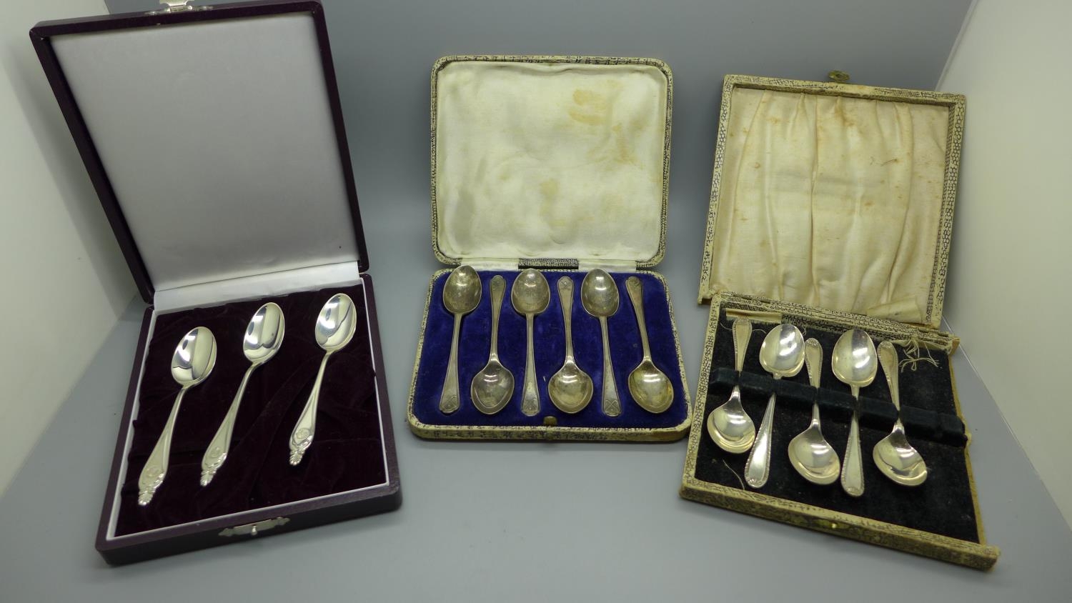 Fourteen silver spoons, (6+5+3), 187g