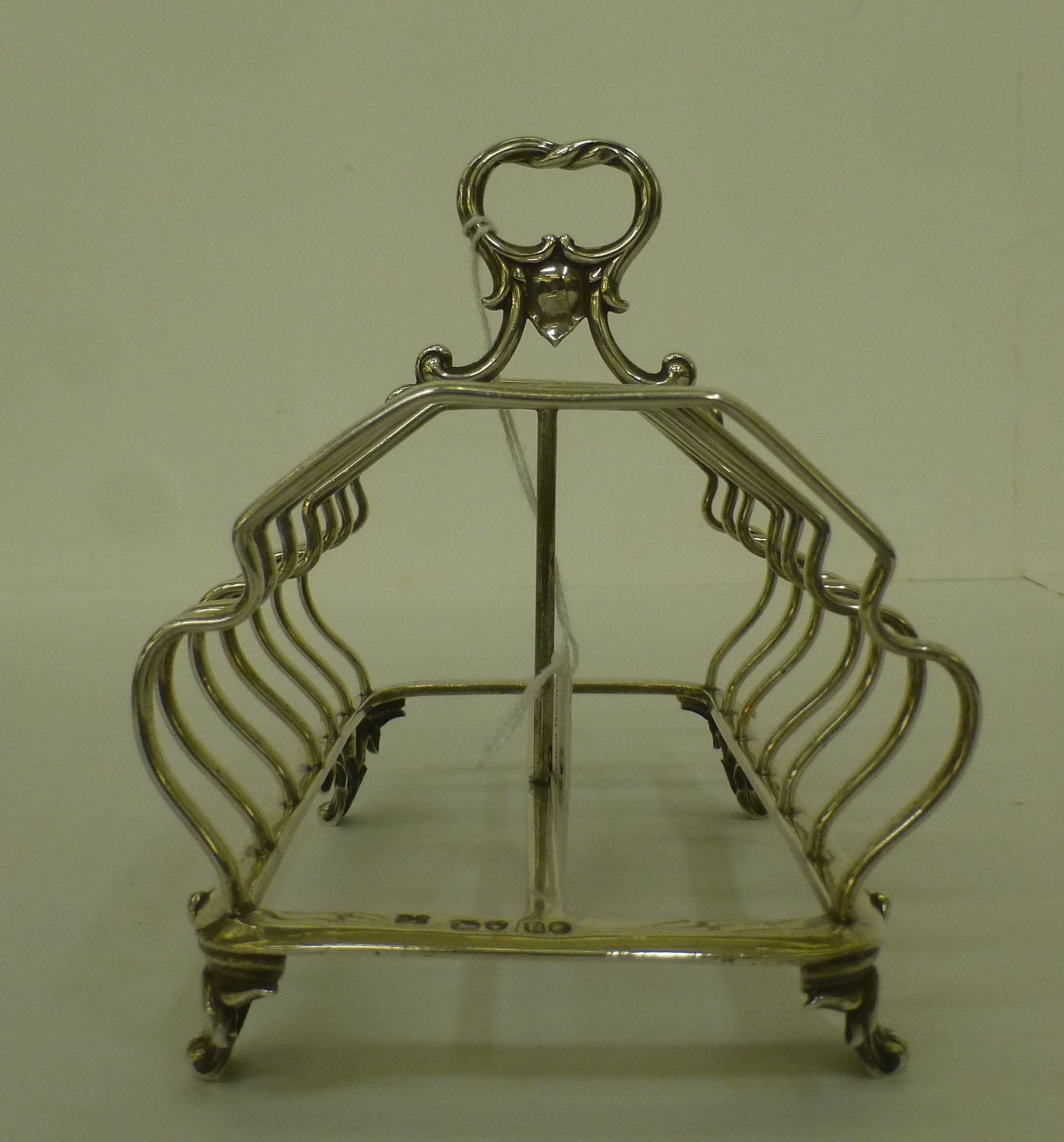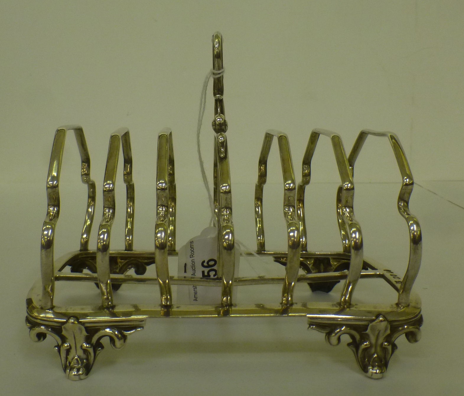 A mid Victorian silver six division toastrack, on scrolled feet London 1852 (approx. 275grms)