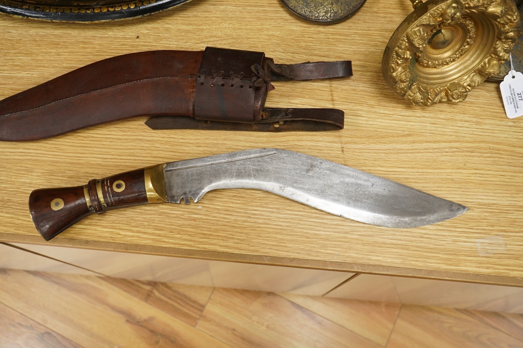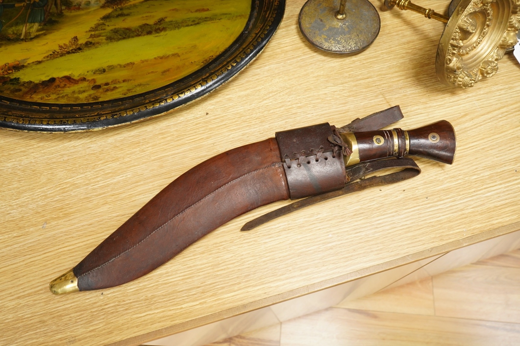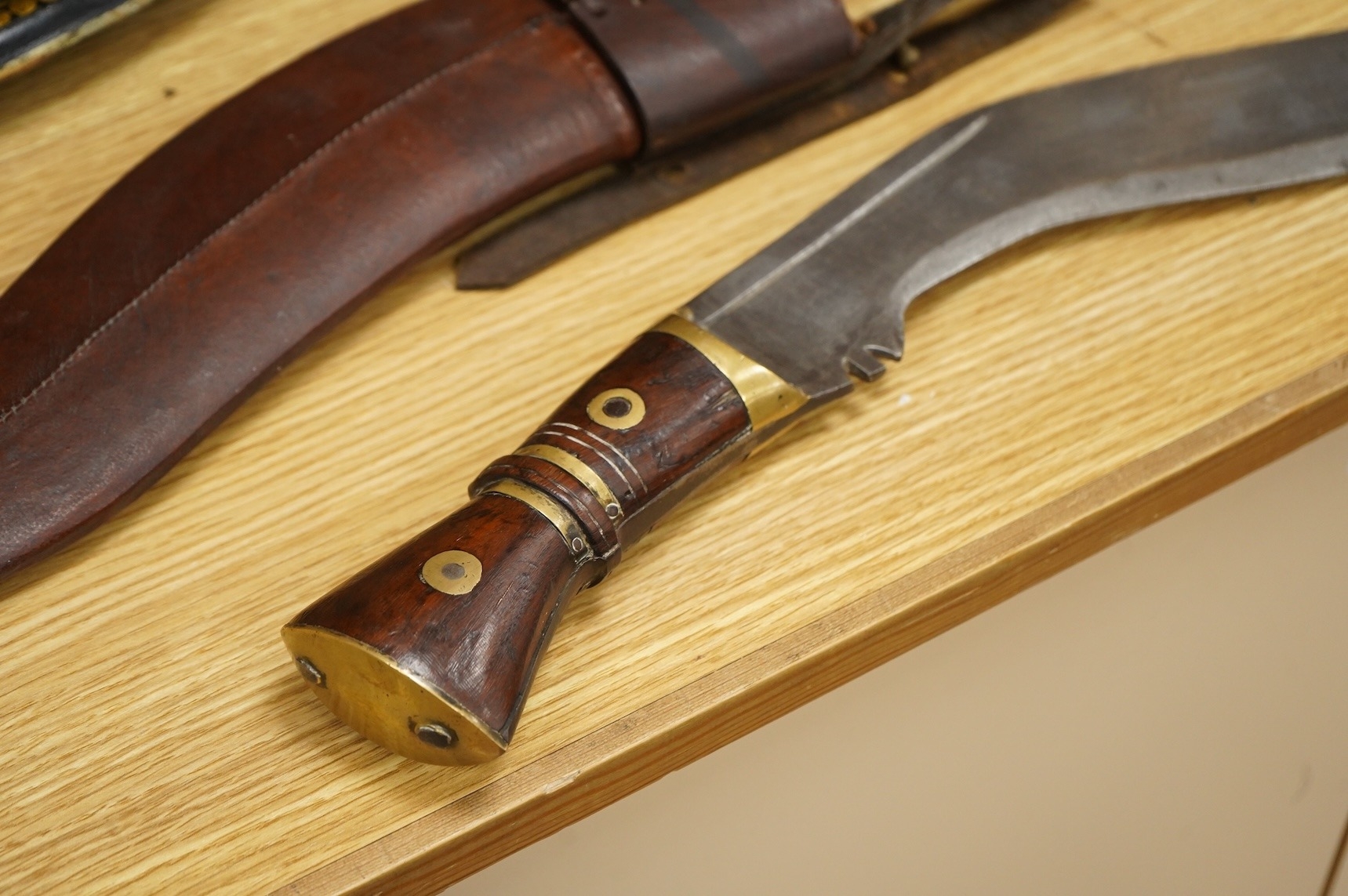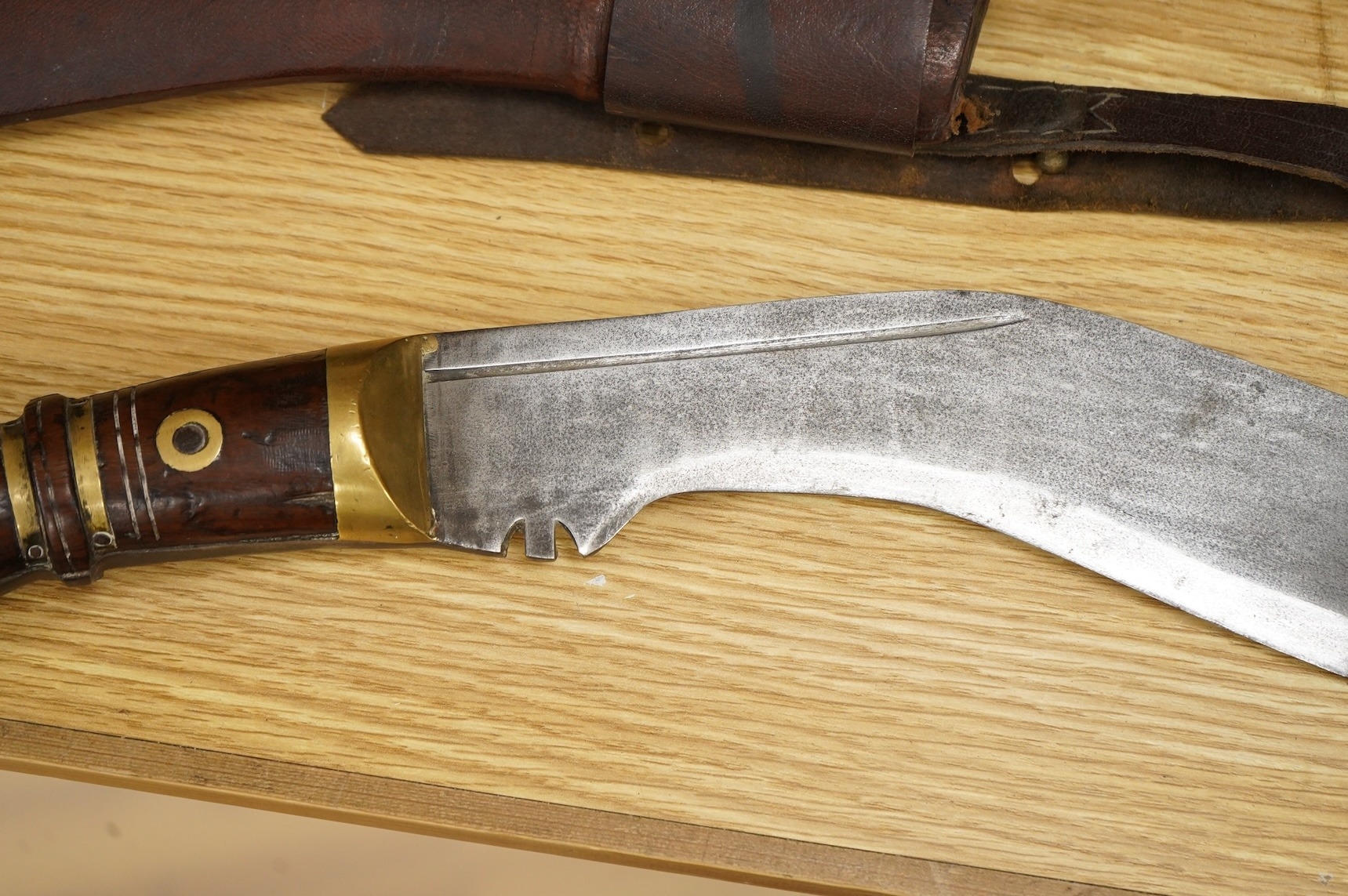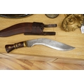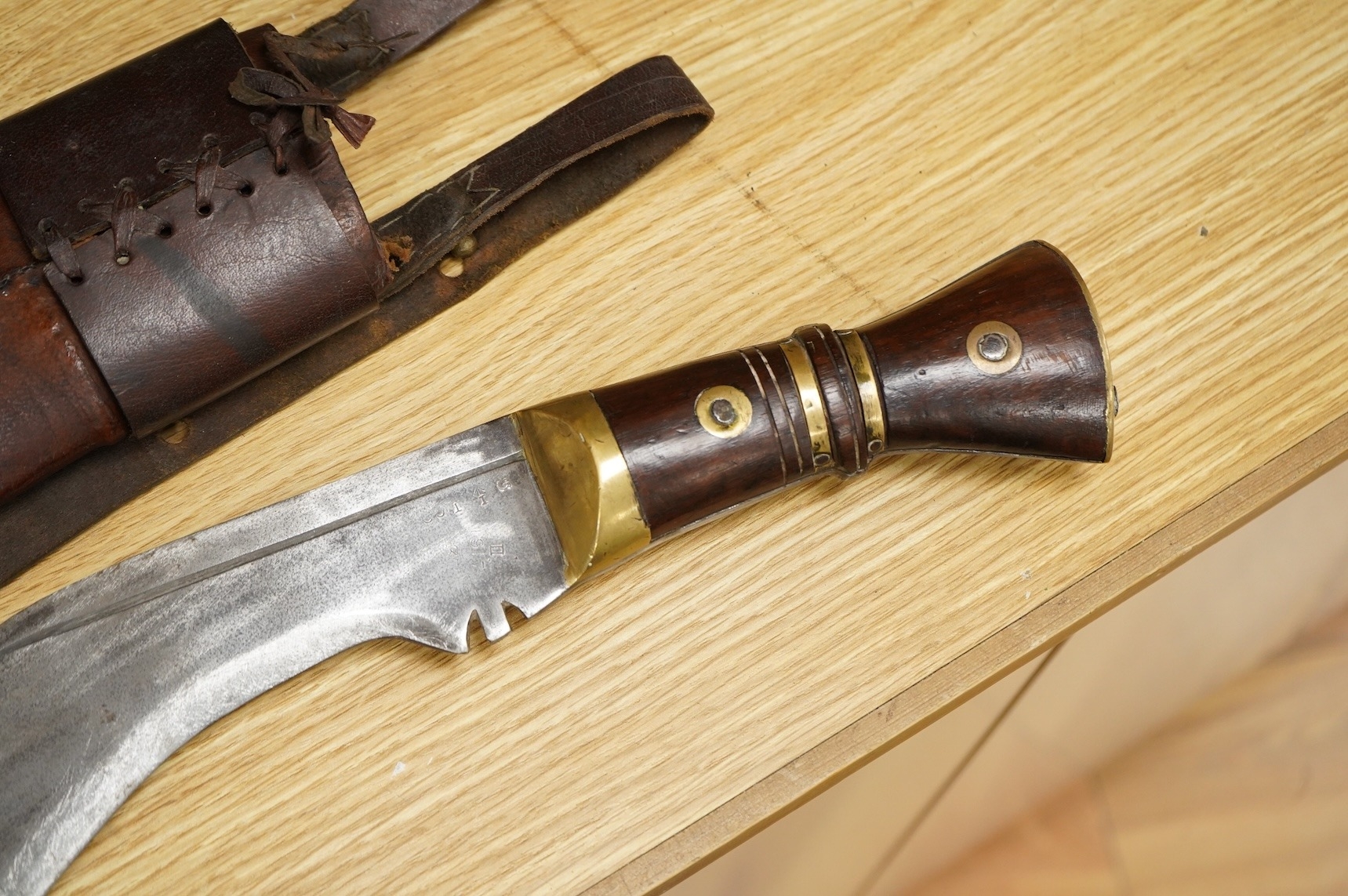 A replica World War One Kukri, Mark 2, in leather sheath, blade 35cm
