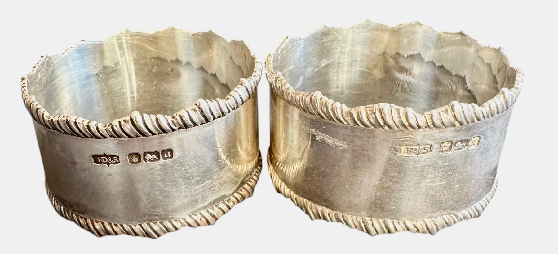 Pair Of Silver Napkin Rings Weight 57g Size 2.5cm x 4.5cm