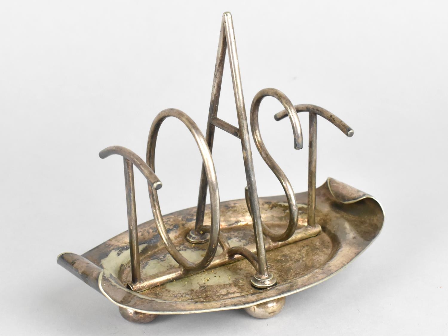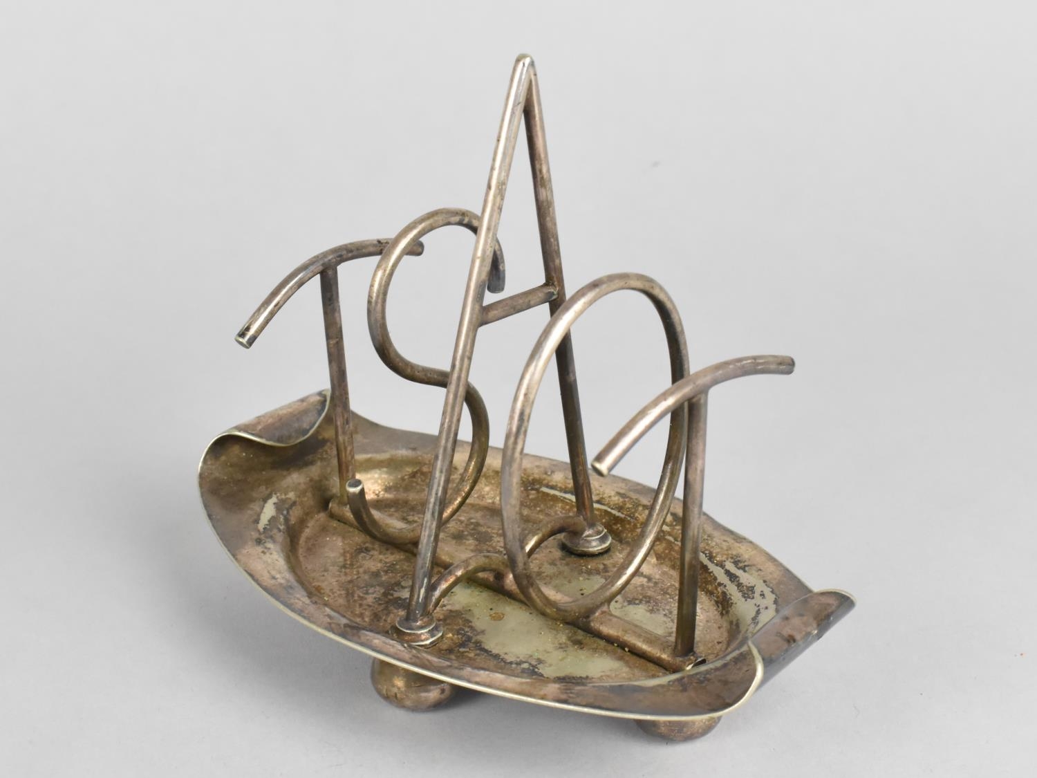 A Walker & Hall Silver Plated Toast Rack to the Christopher Dresser Design Having Alphabetical Dividers Spelling "TOAST", 14cm Long