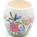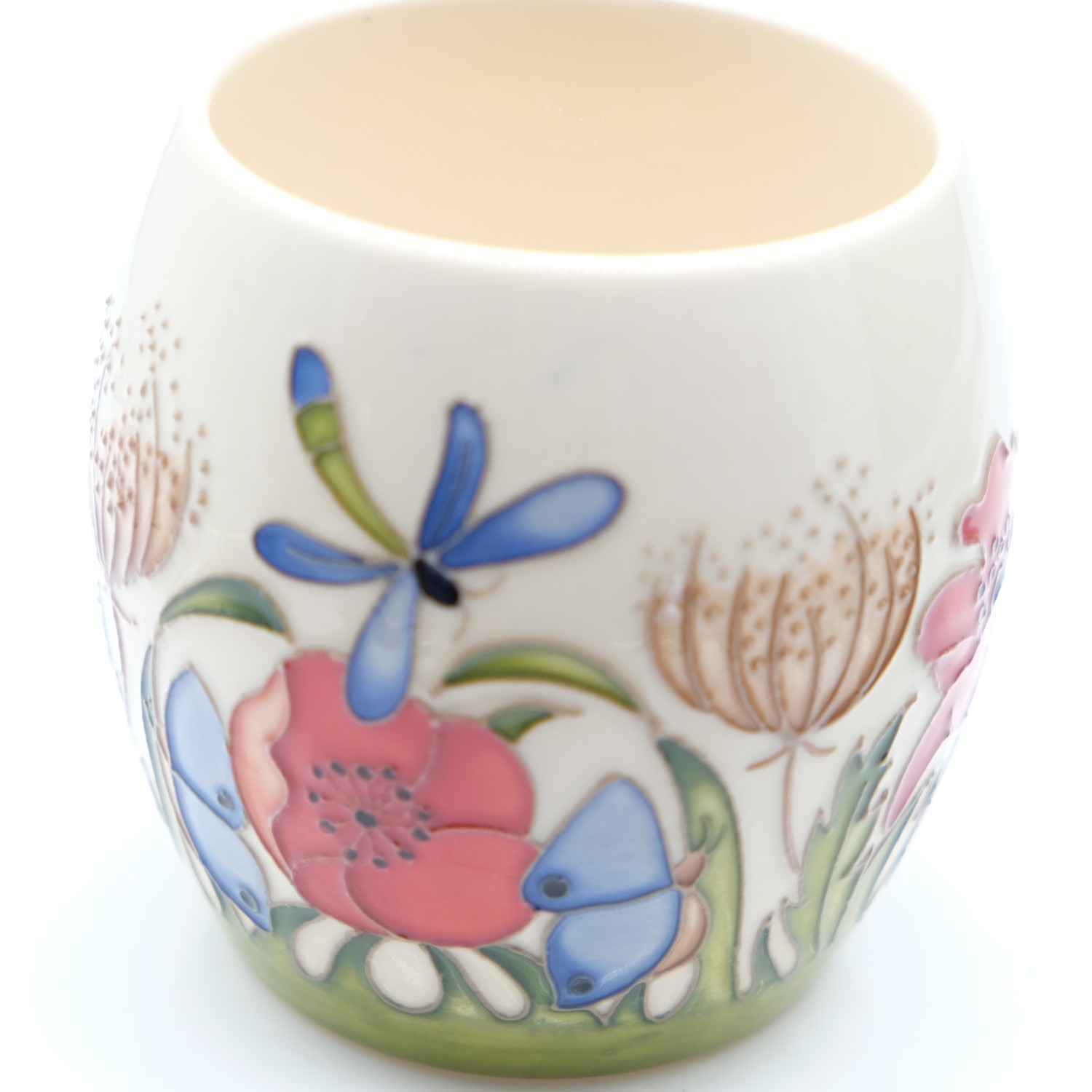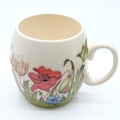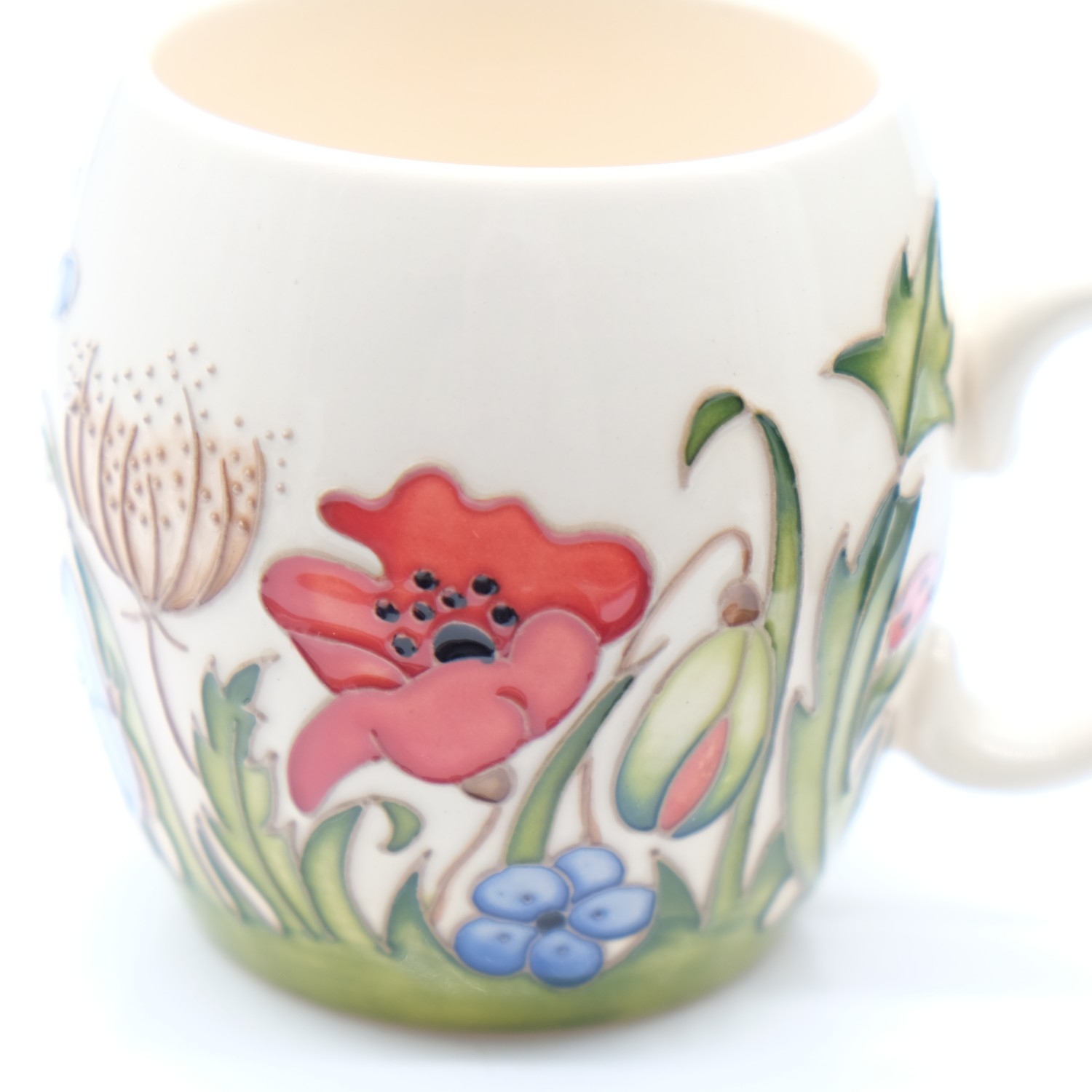 Moorcroft mug in the Meadow Garden pattern, H: 10 cm. UK P&P Group 1 (£18+VAT for the first lot and £2+VAT for subsequent lots)