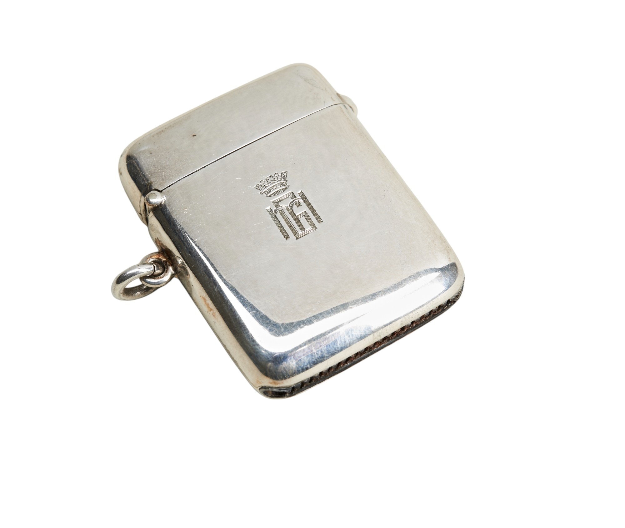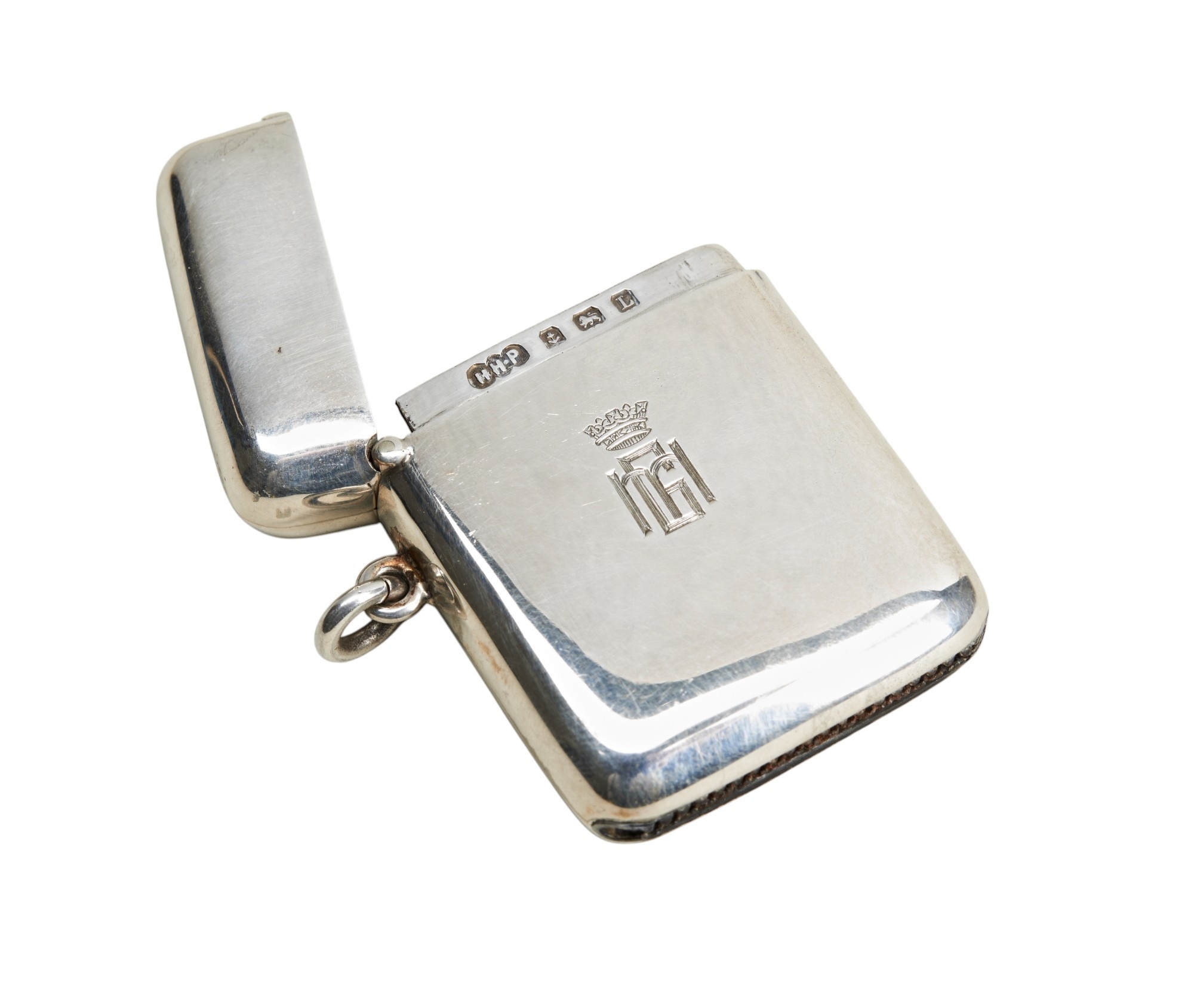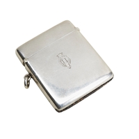 A good vesta case in its original H.H.Plante morocco fitted presentation case. The monogram engraved to the front is that of Prince Henry, Duke of Gloucester (1900-1974) the third son of George V. The steel striker showing some signs of use.