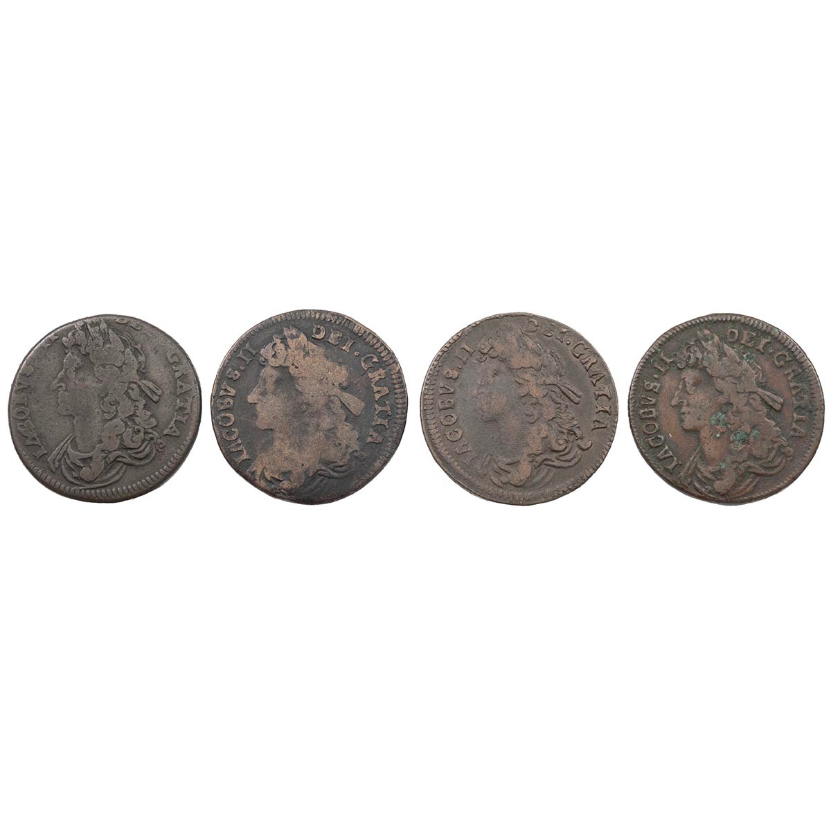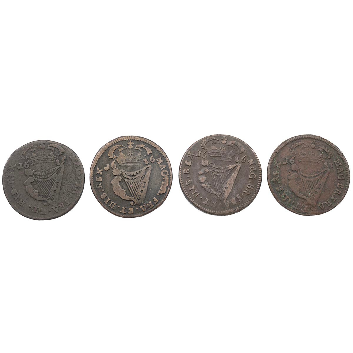 Ireland, James II Halfpennies (4) - 1685 (S 6576); 1686 (2); and 1688, all About Fine.