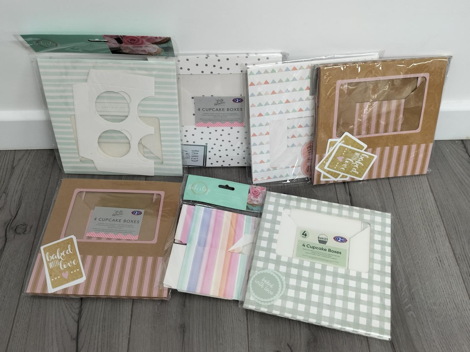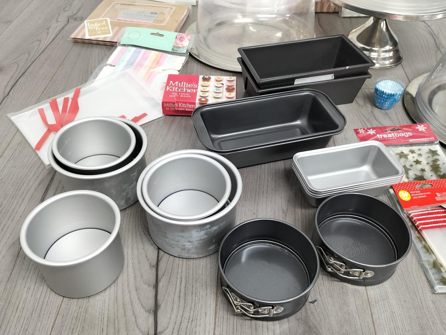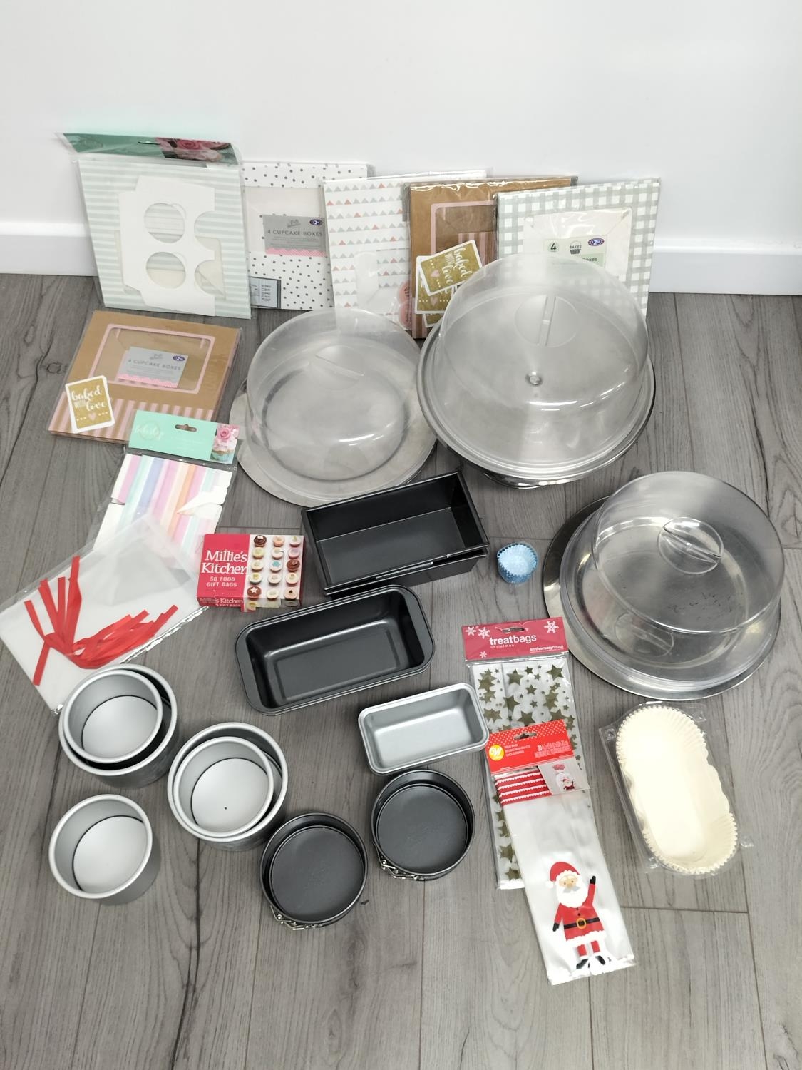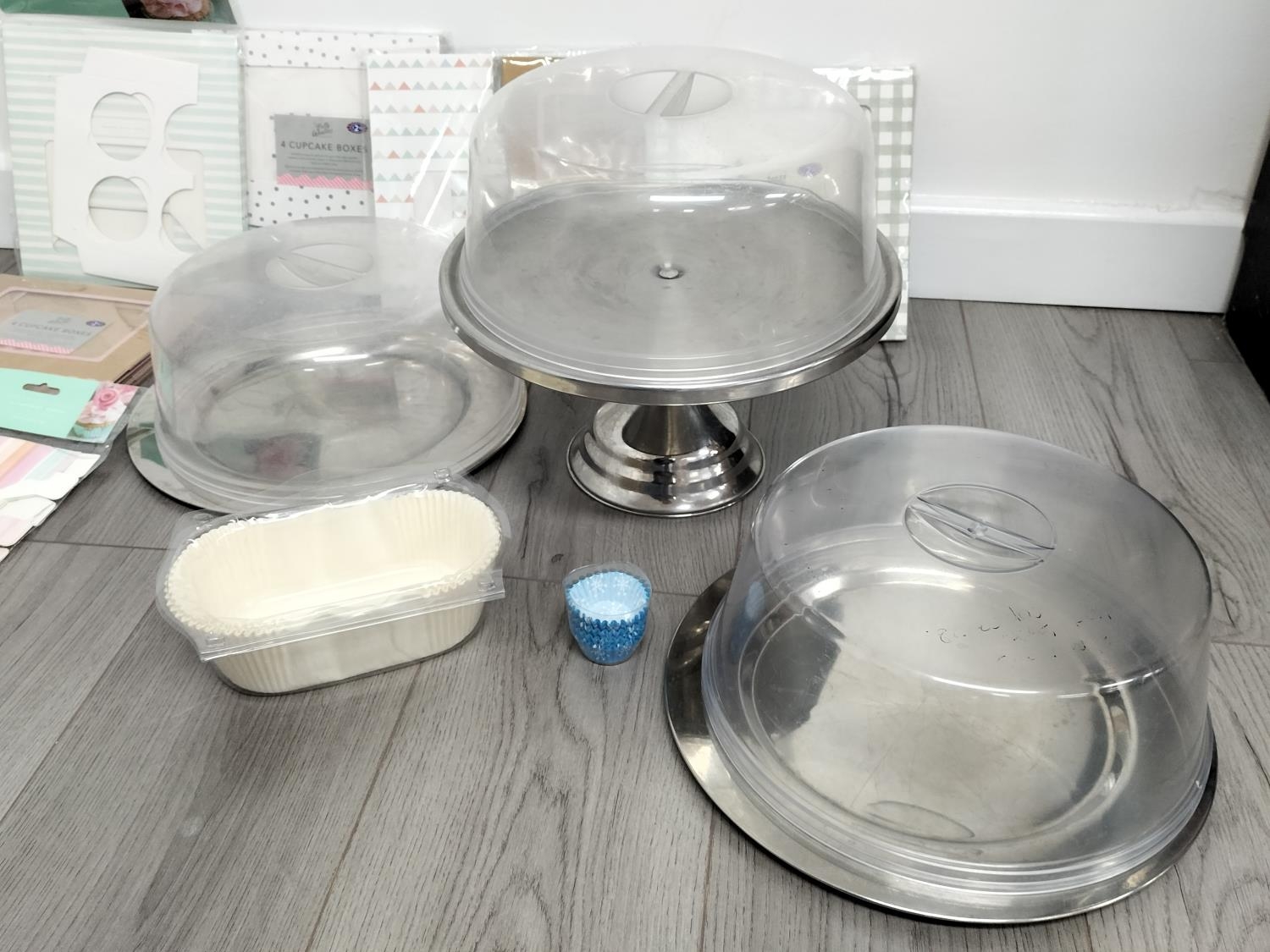 Collection of Baking/Cake Items to include Baking Tins, Display Stands with Covers, Gift Boxes and Bags.