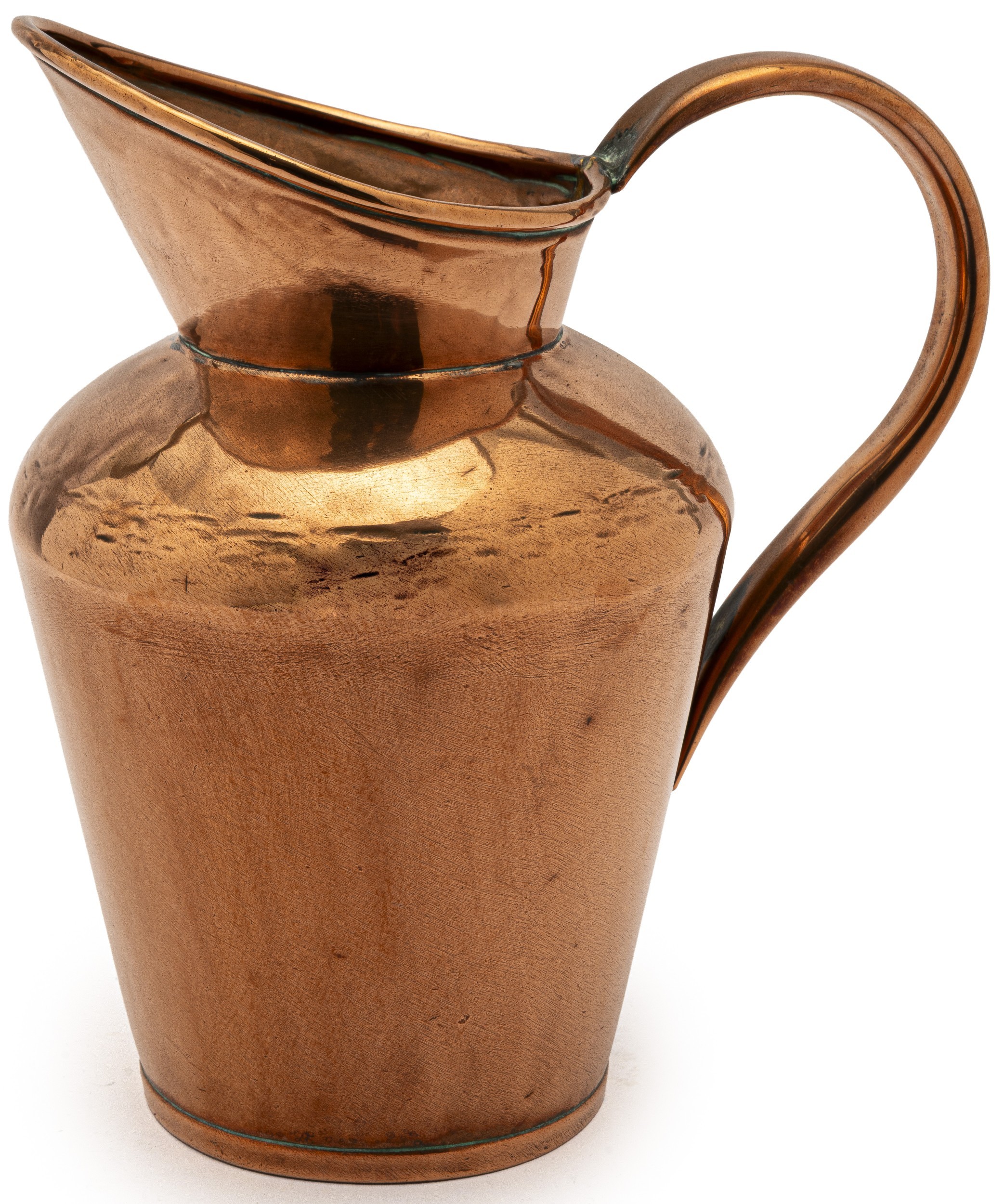 Moulded rim, tapering body, applied C-shaped handle, on a circular base