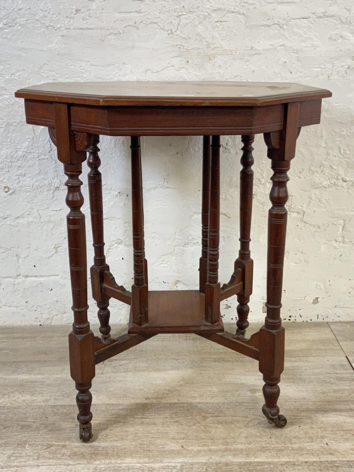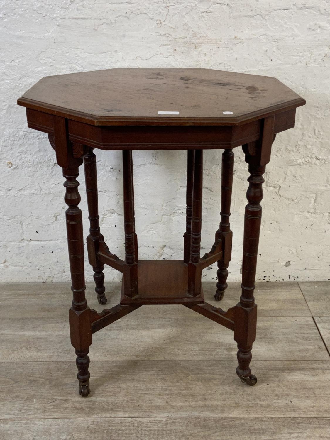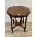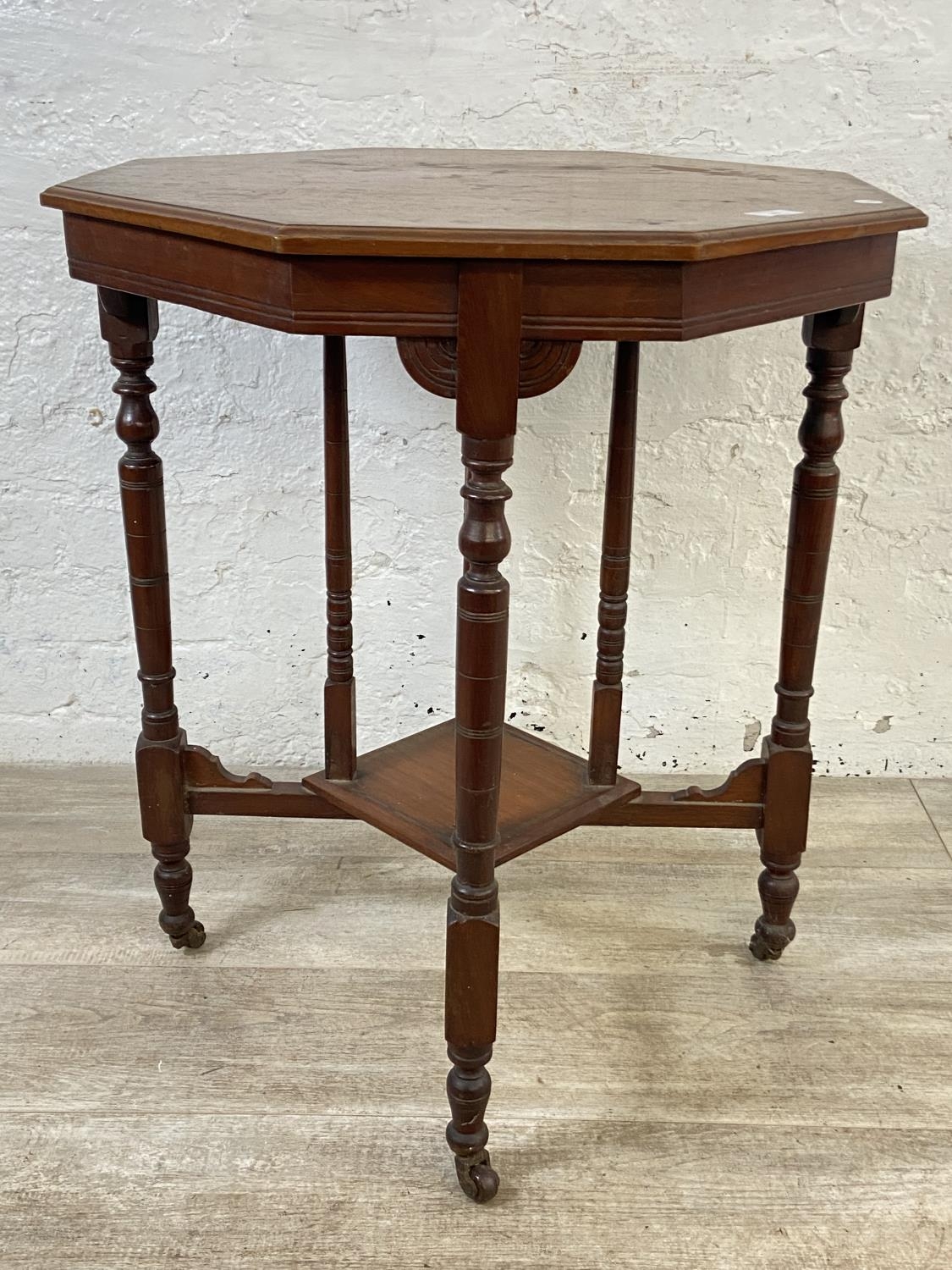 A Victorian walnut octagonal two tier side table - approx. 70cm high x 59cm wide x 59cm deep