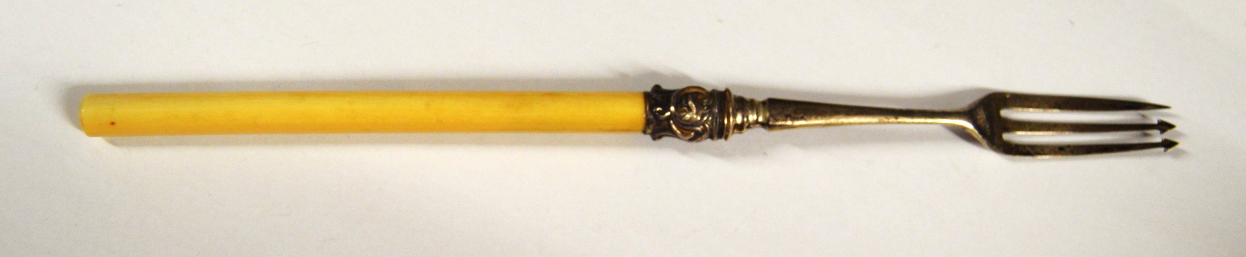 Silver Pickle Fork with a Bone Handle. approx 10" Long